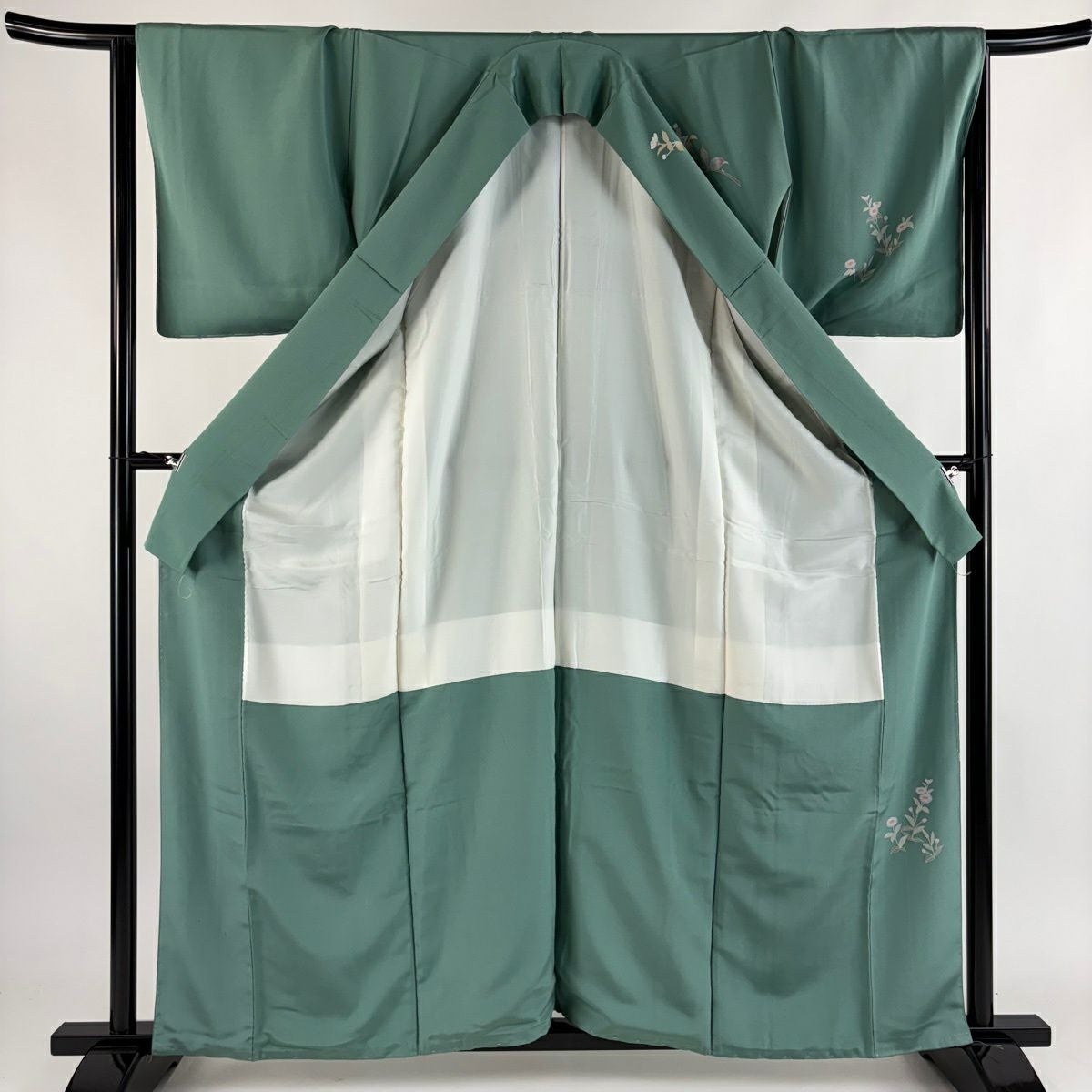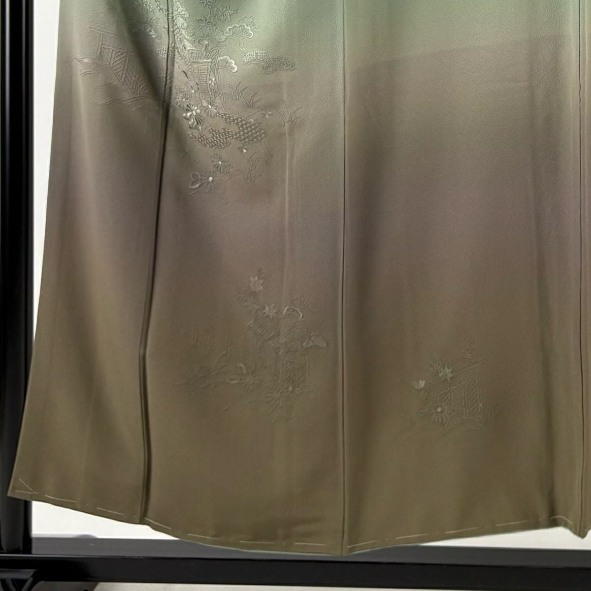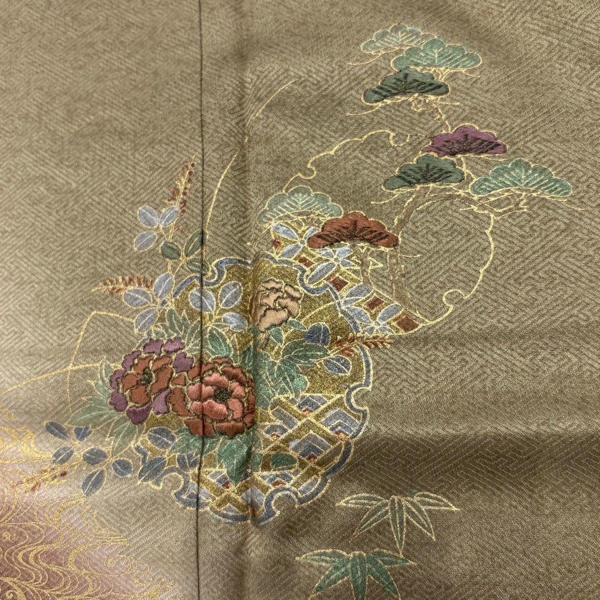 30%OFF 付下げ 身丈159cm 裄丈63.5cm S 袷 人物 松竹梅 刺繍 金糸 薄緑 正絹 秀品 K30
