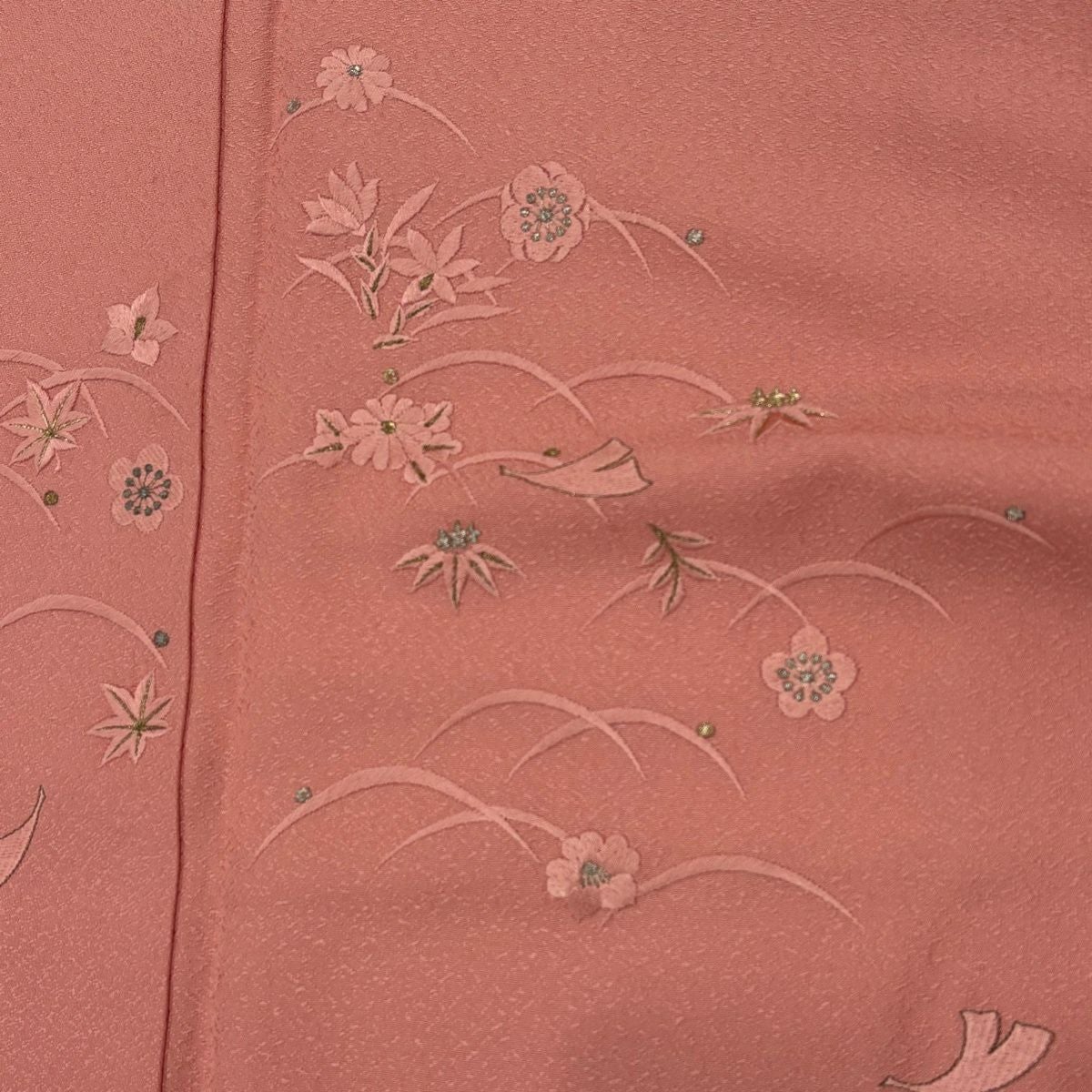 30%OFF 付下げ 身丈164cm 裄丈65.5cm M 袷 梅 芝 金銀糸 刺繍 ピンク 正絹 秀品 K30