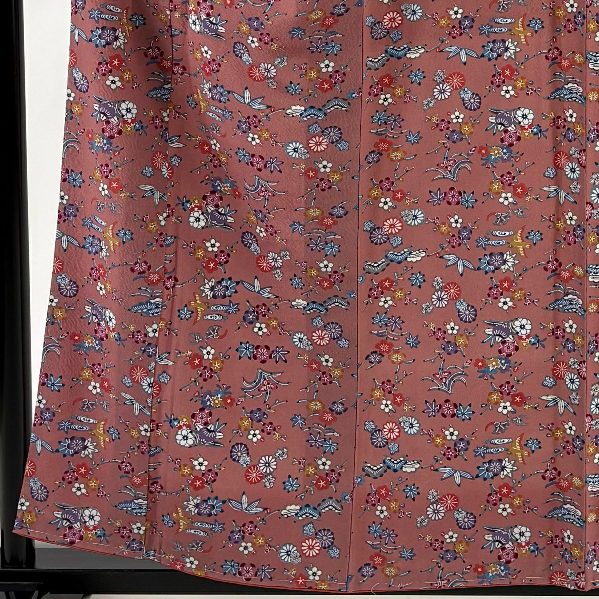 30%OFF 訪問着 身丈163.5cm 裄丈67cm M 袷 落款あり 枝花 芝 濃ピンク 正絹 秀品 K30