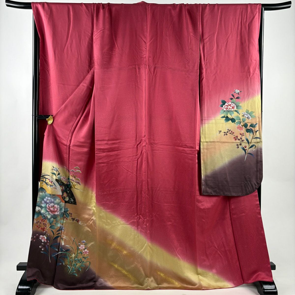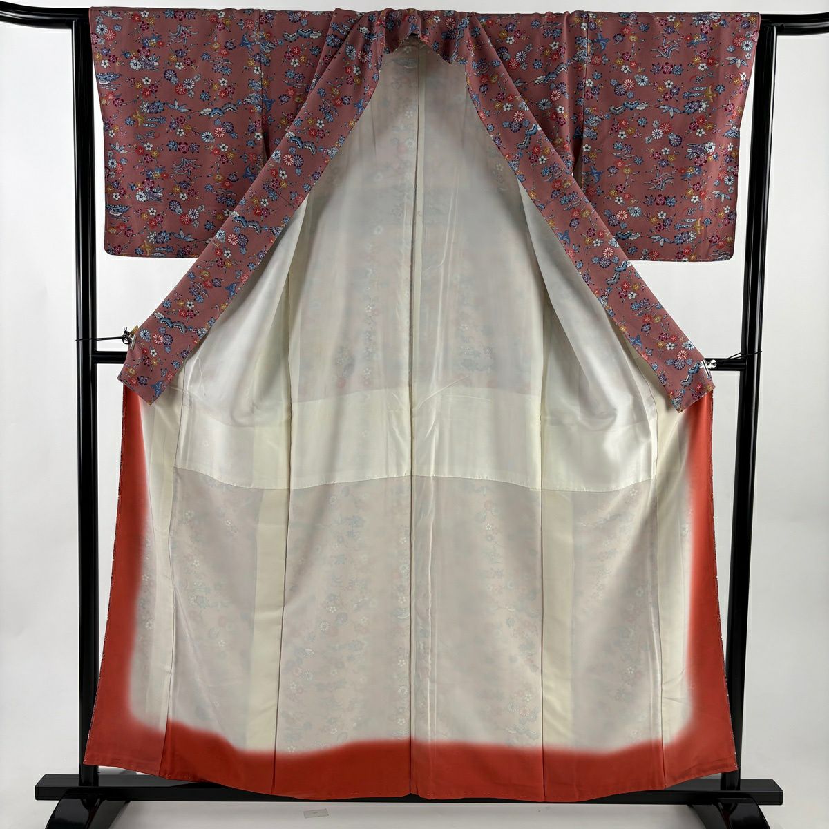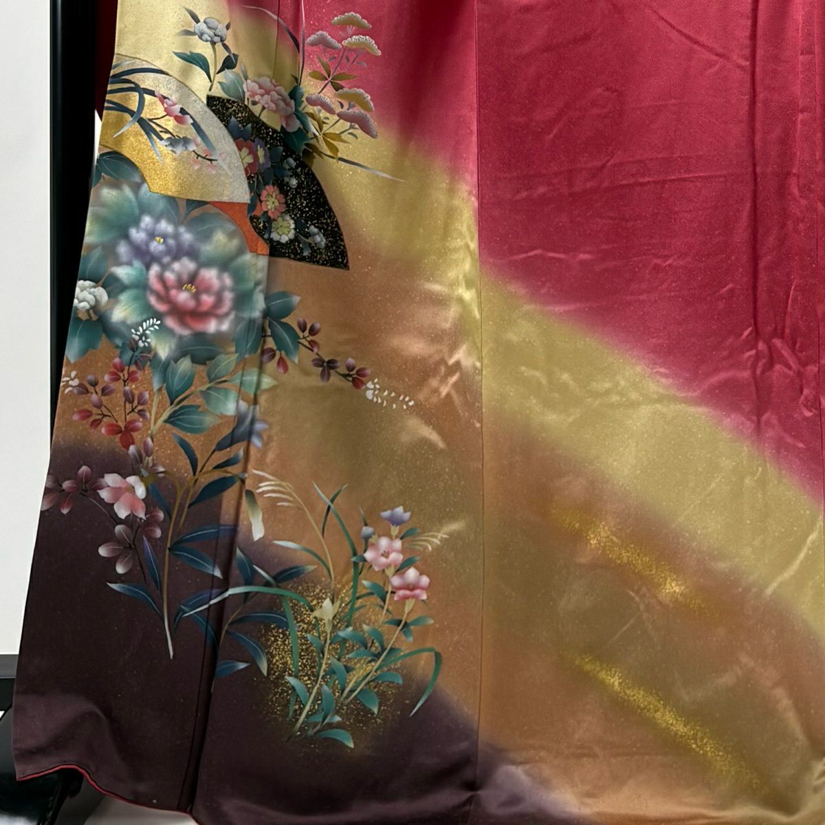 30%OFF 振袖 身丈168cm 裄丈68cm L 袷 落款あり 草花 紐 金彩 染め分け 赤紫 正絹 秀品 K30