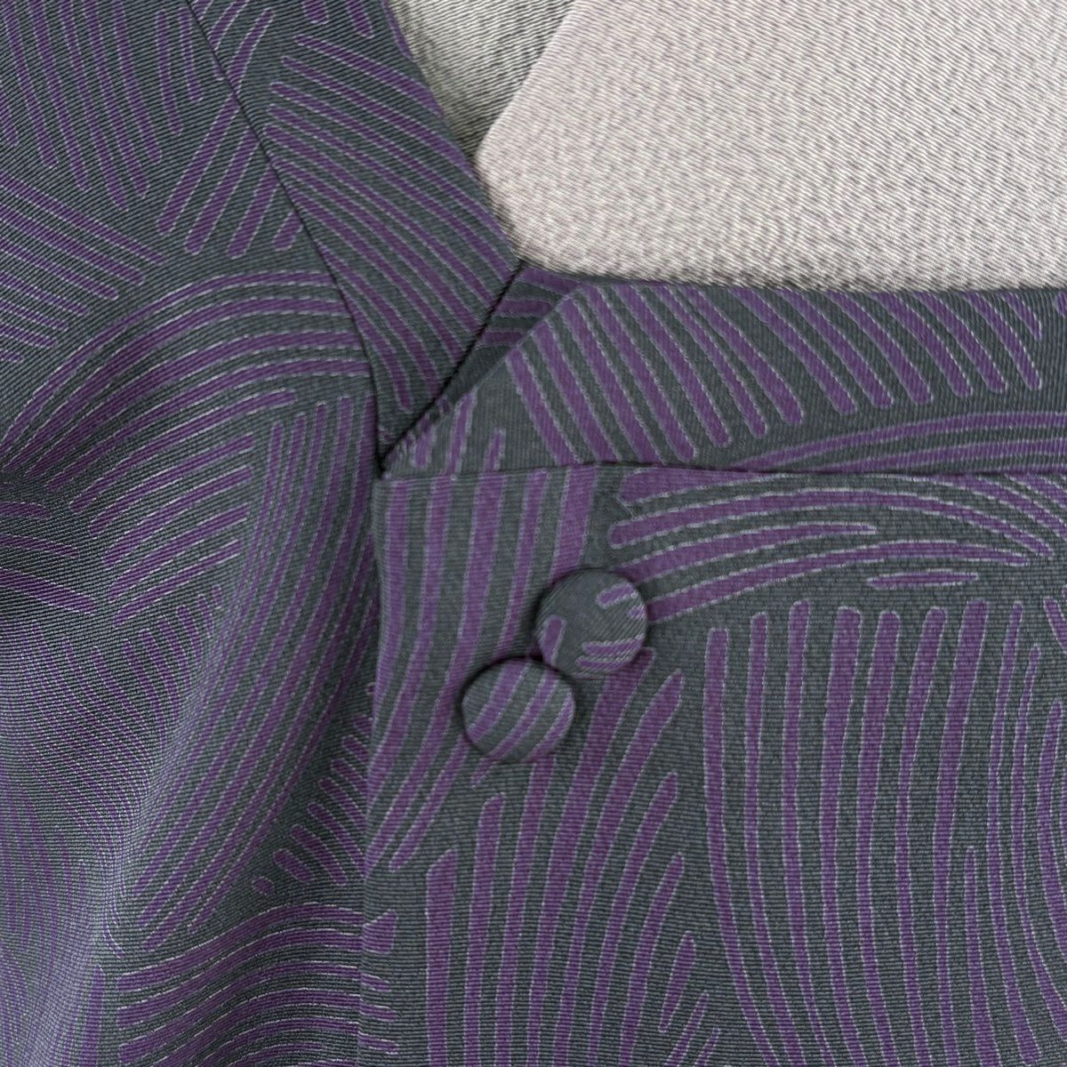 30%OFF 訪問着 身丈169.5cm 裄丈67cm M 袷 紬地 波 青海波 金銀彩 灰紫 正絹 秀品 K30