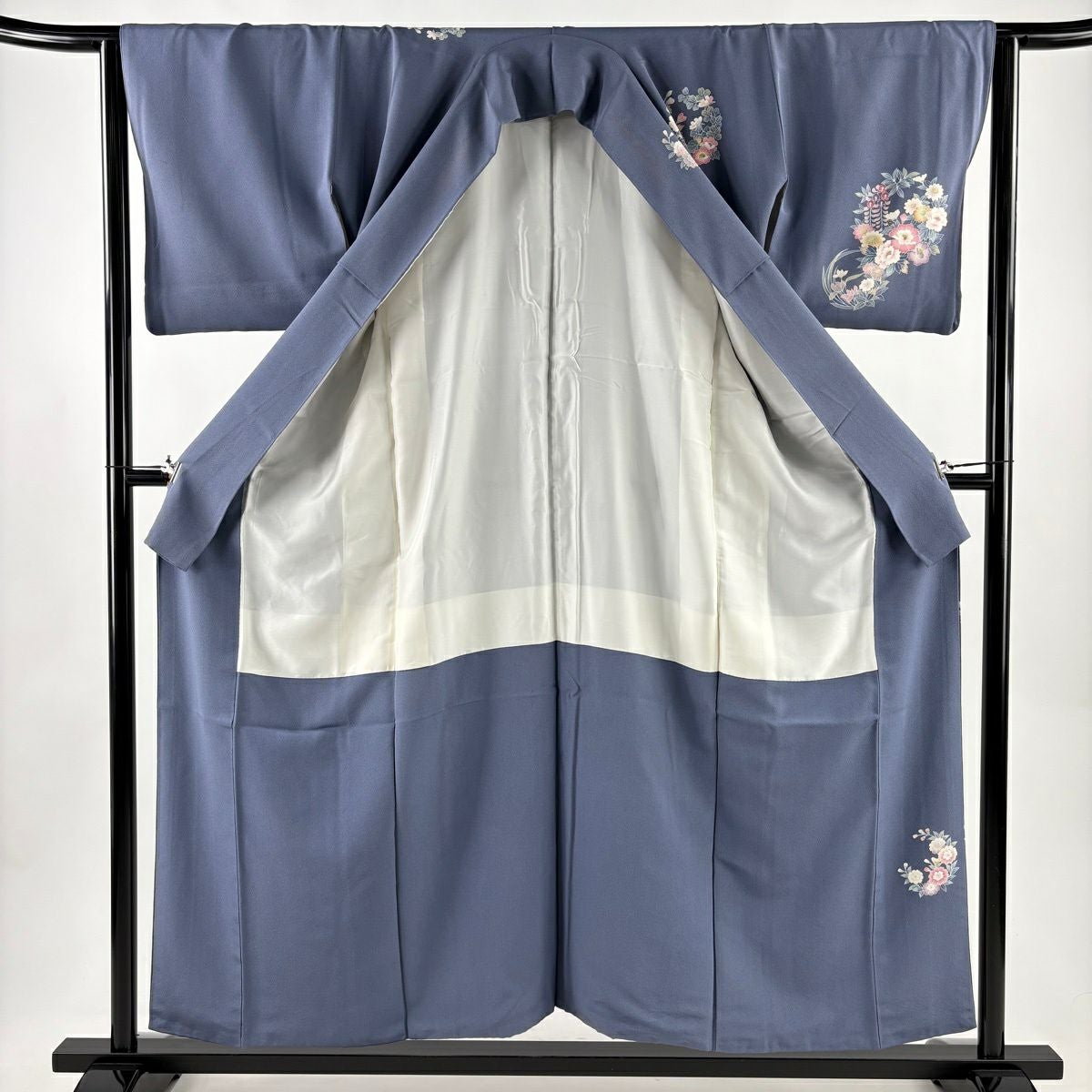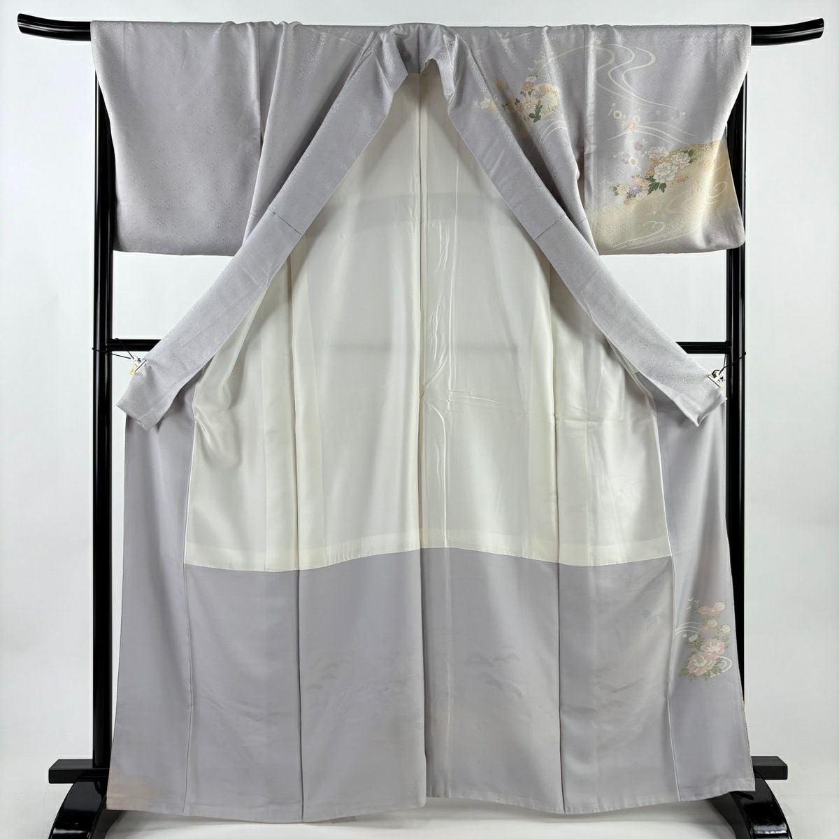 30%OFF 訪問着 身丈156cm 裄丈62cm S 袷 枝花 流水 金銀彩 ぼかし 青灰色 正絹 秀品 K30