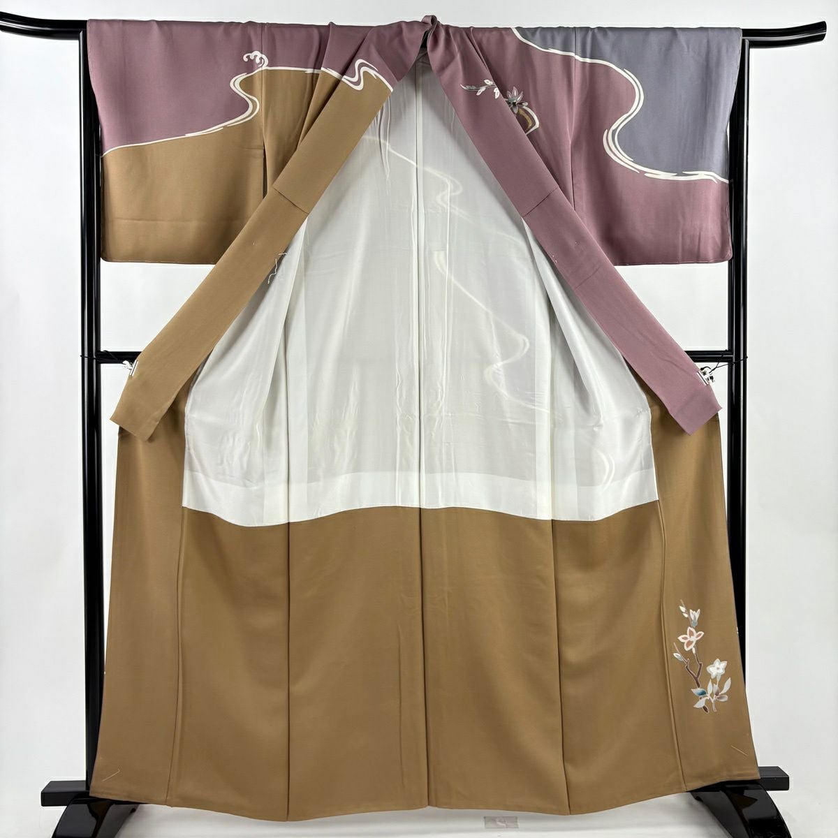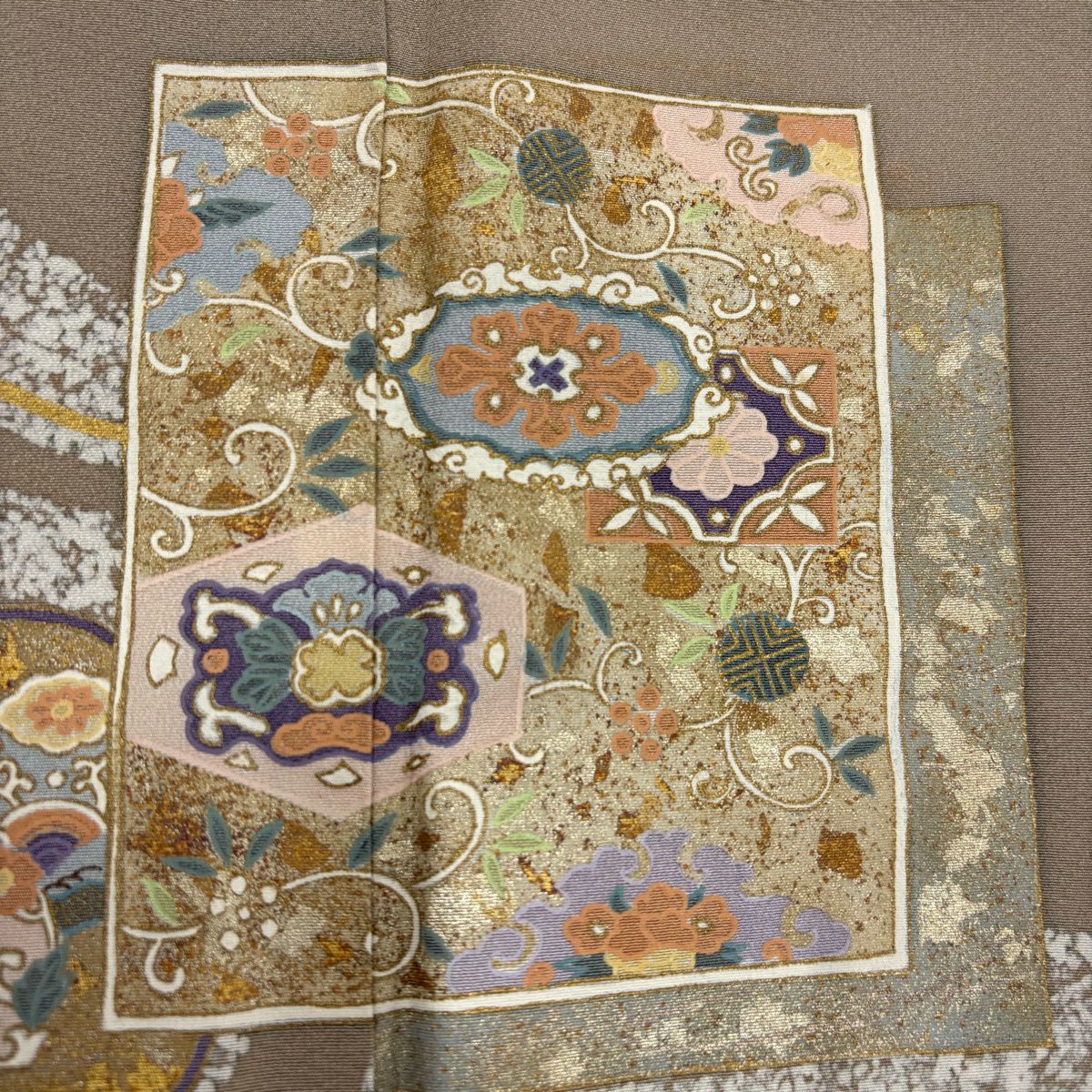 30%OFF 訪問着 身丈152cm 裄丈63.5cm S 袷 菊 桔梗 金彩 ぼかし 薄茶色 正絹 秀品 K30