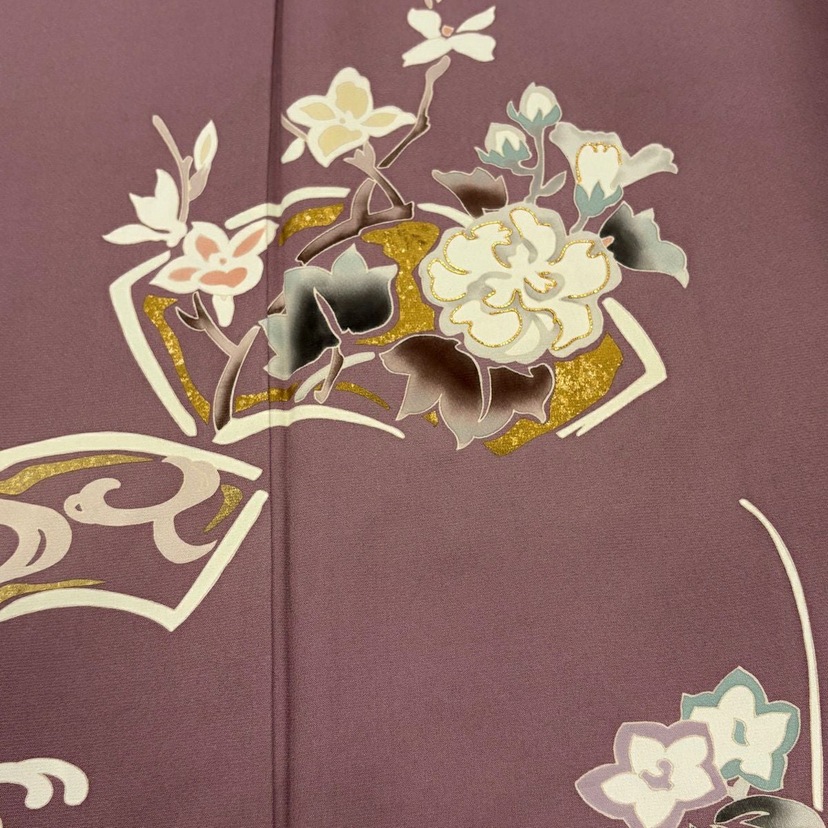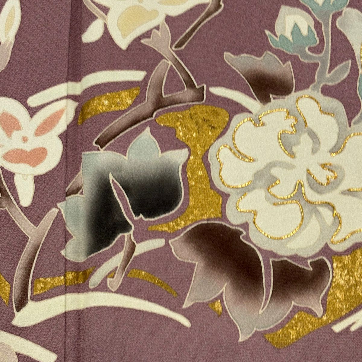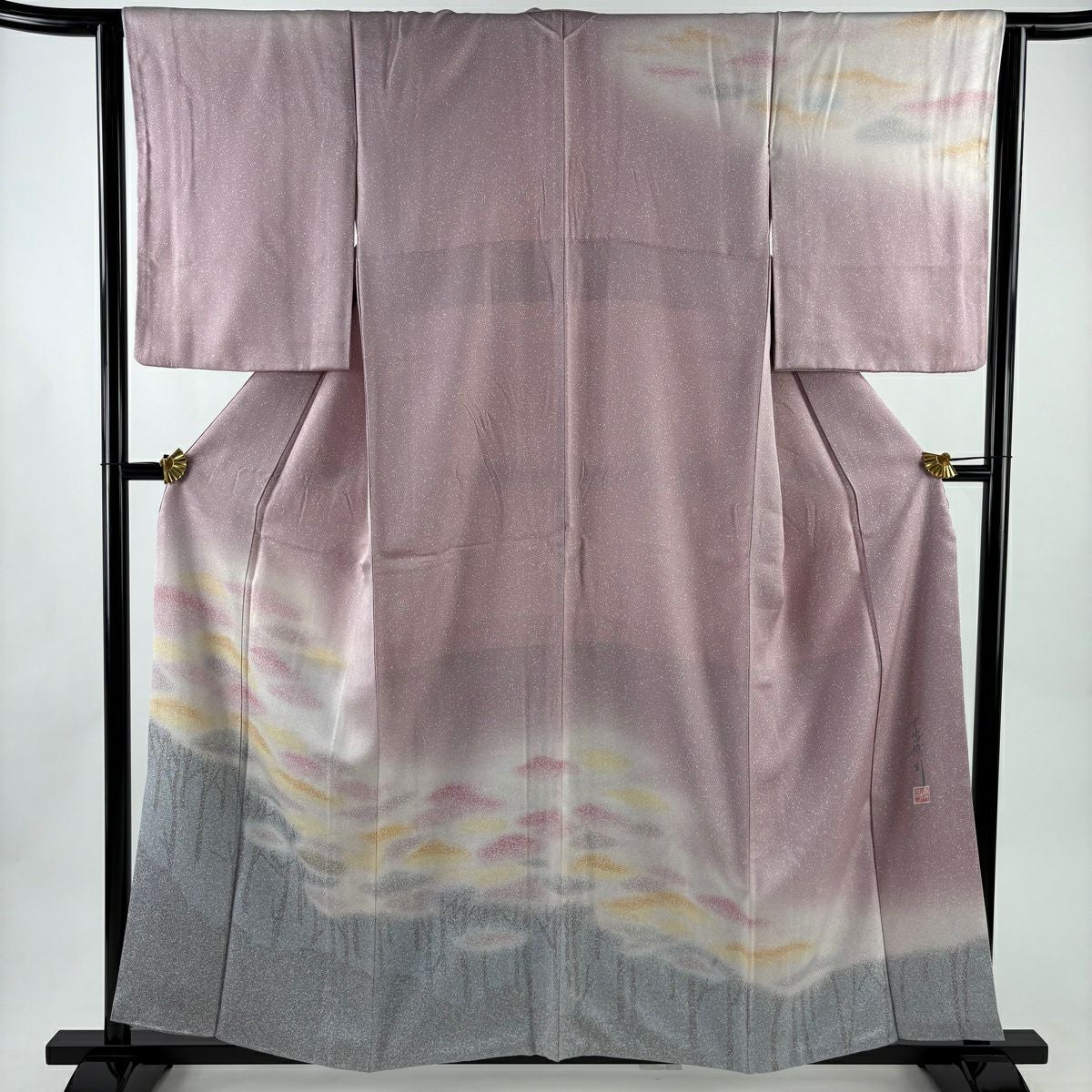 30%OFF 付下げ 身丈157.5cm 裄丈66cm M 袷 童 枝花 金銀彩 ぼかし 灰紫 正絹 秀品 K30