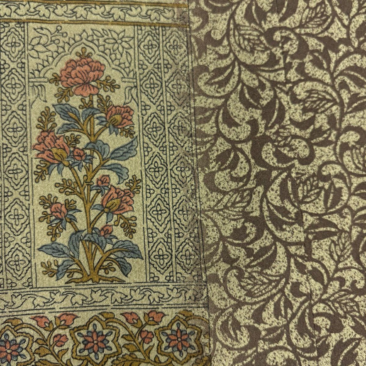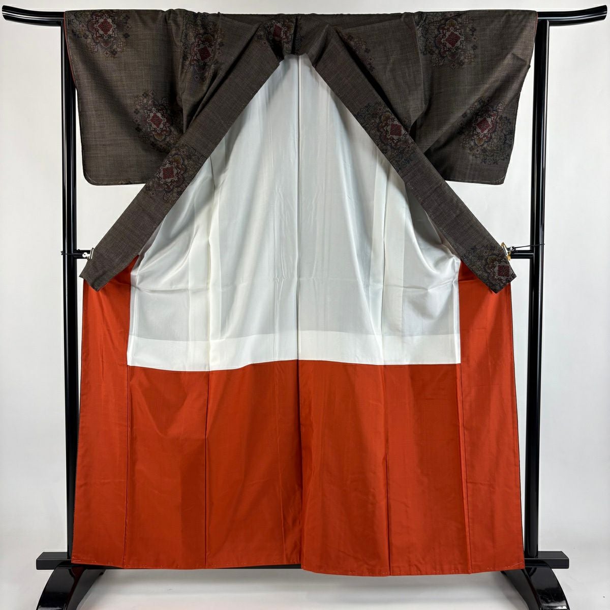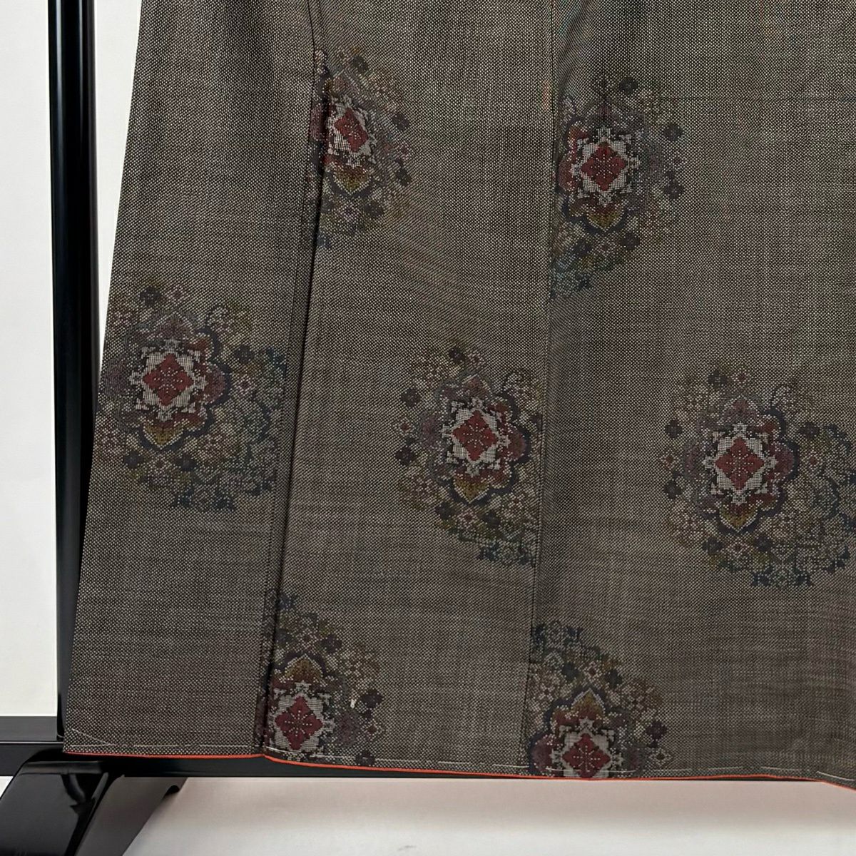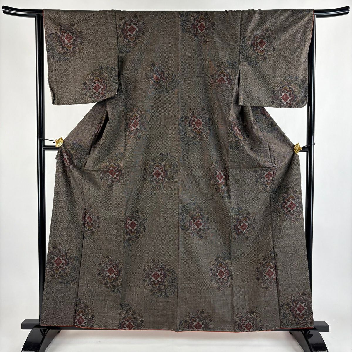 30%OFF 【美品】 小紋 身丈160cm 裄丈64.5cm M 袷 地紋 幾何学模様 灰茶 正絹 秀品 K30