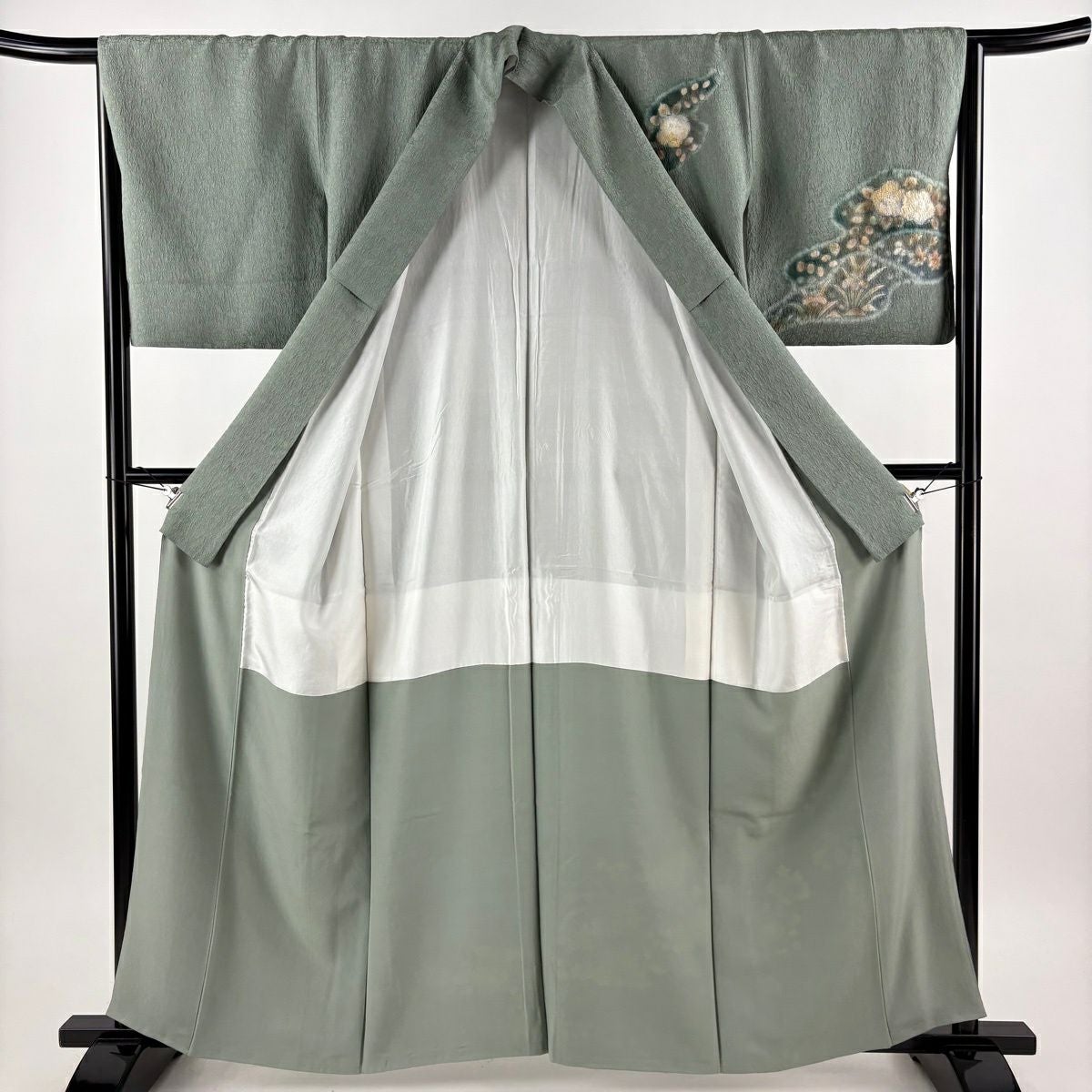 30%OFF 付下げ 身丈166cm 裄丈63.5cm S 袷 菊 光悦垣 金彩 ぼかし 薄緑 正絹 秀品 K30