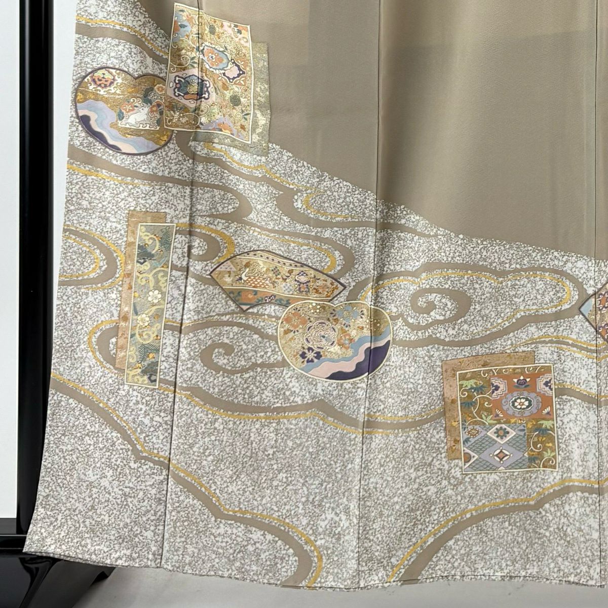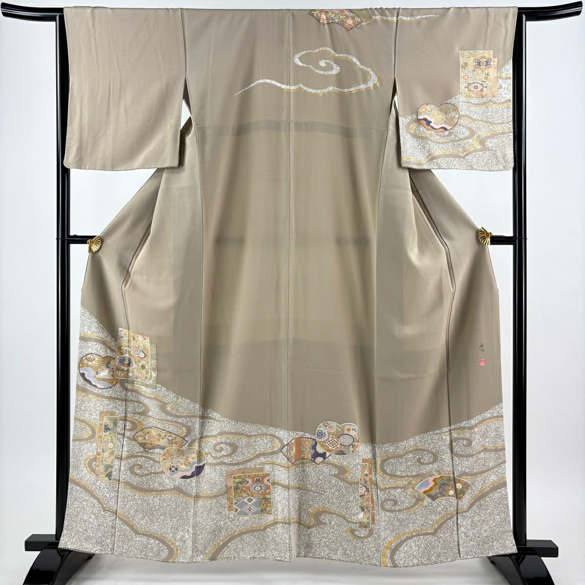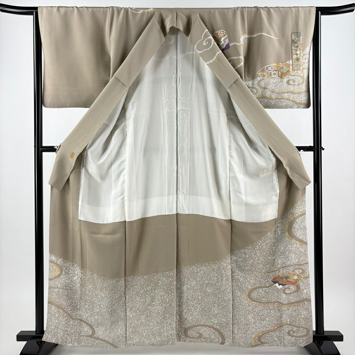 30%OFF 付下げ 身丈166cm 裄丈65.5cm M 袷 雪輪 観世水 刺繍 金彩 灰茶 正絹 秀品 K30