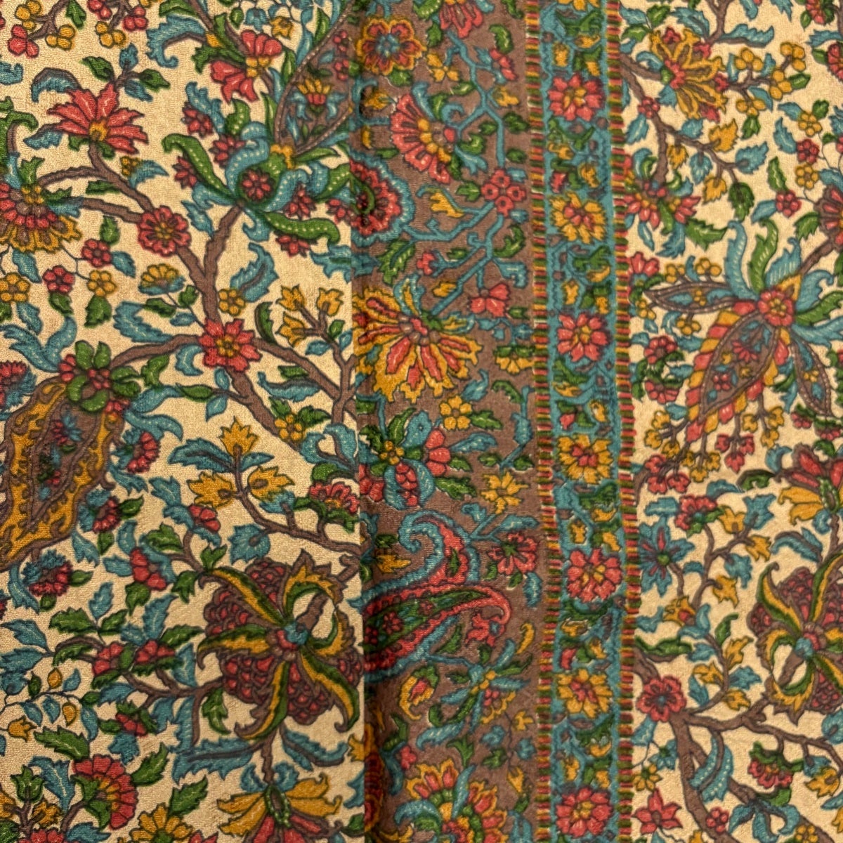 【美品】 小紋 身丈151.5cm 裄丈64.5cm M 袷 草花 ベージュ 正絹 秀品