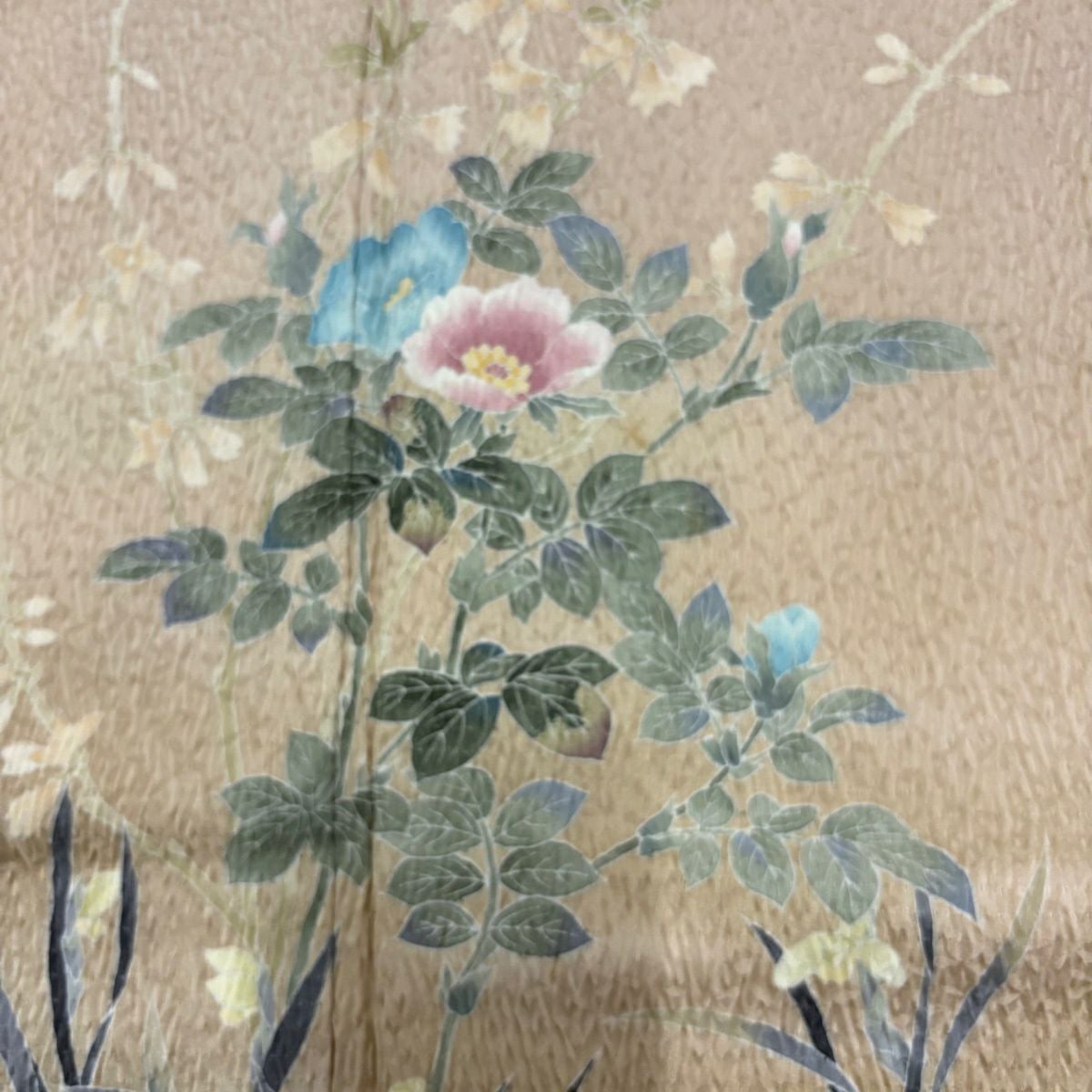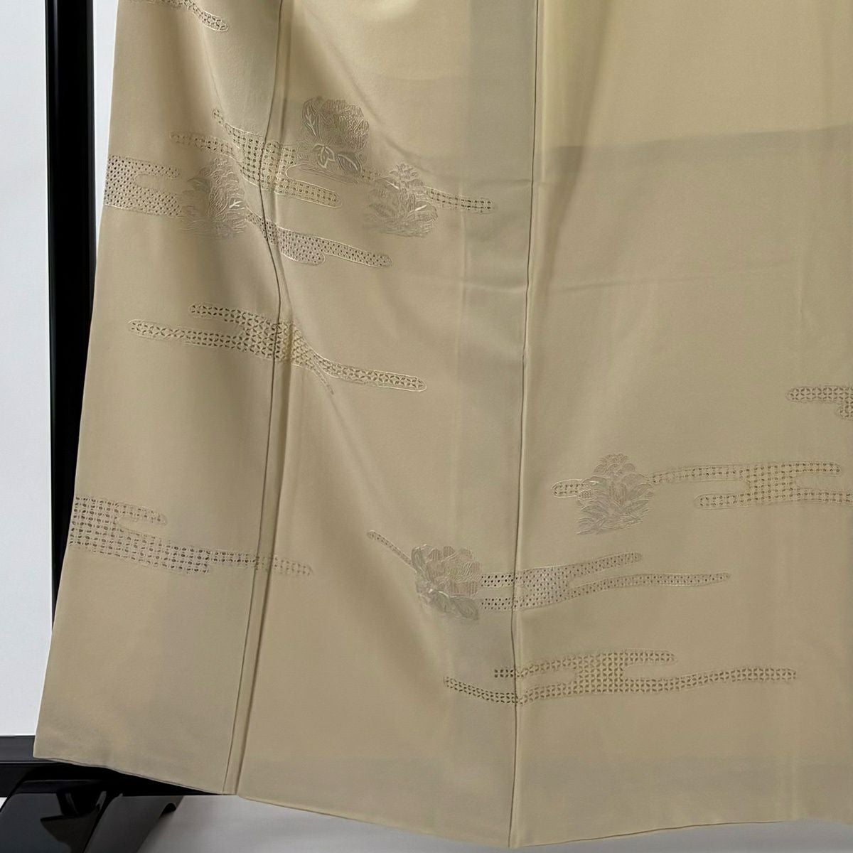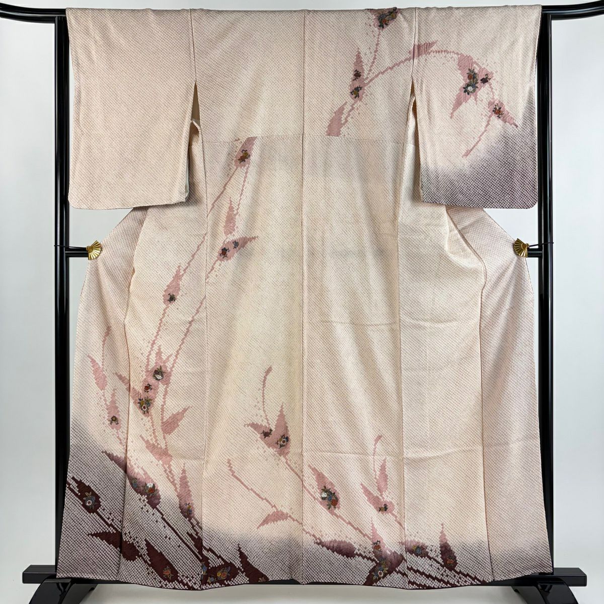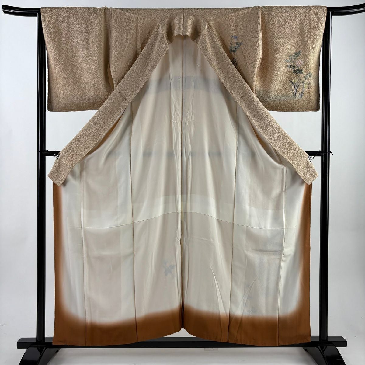 50%OFF 付下げ 身丈161.5cm 裄丈64cm M 袷 草花 ヱ霞 刺繍 ベージュ 正絹 秀品 K50