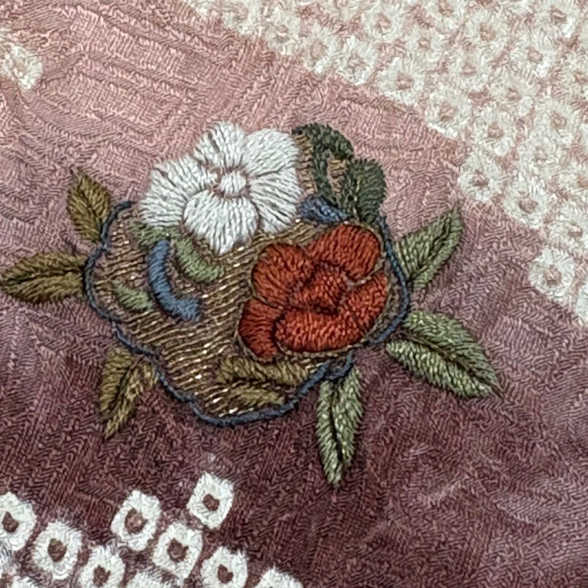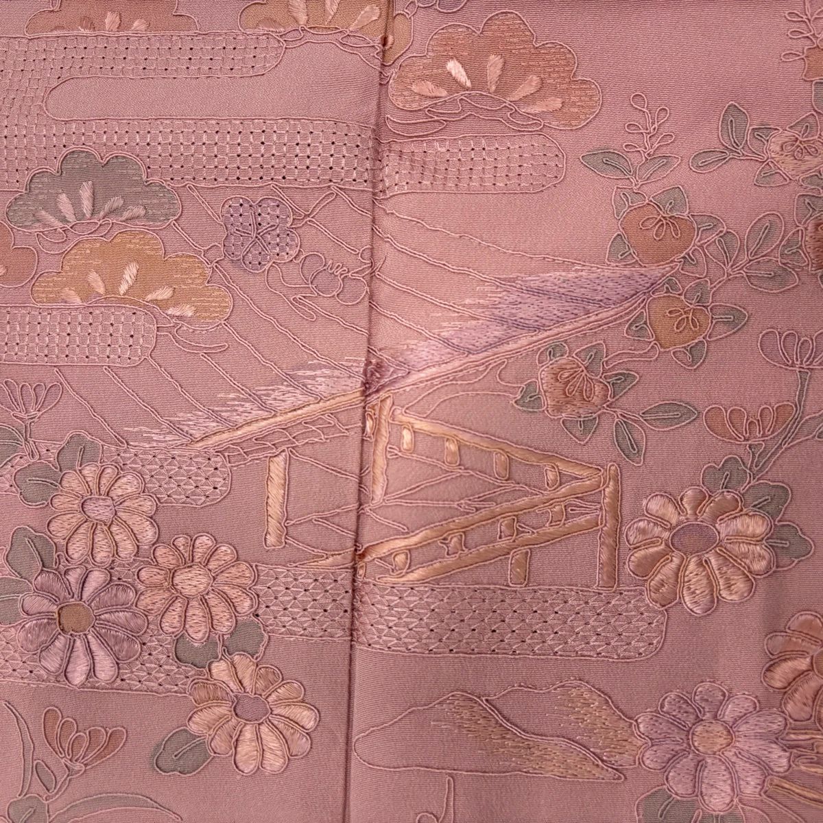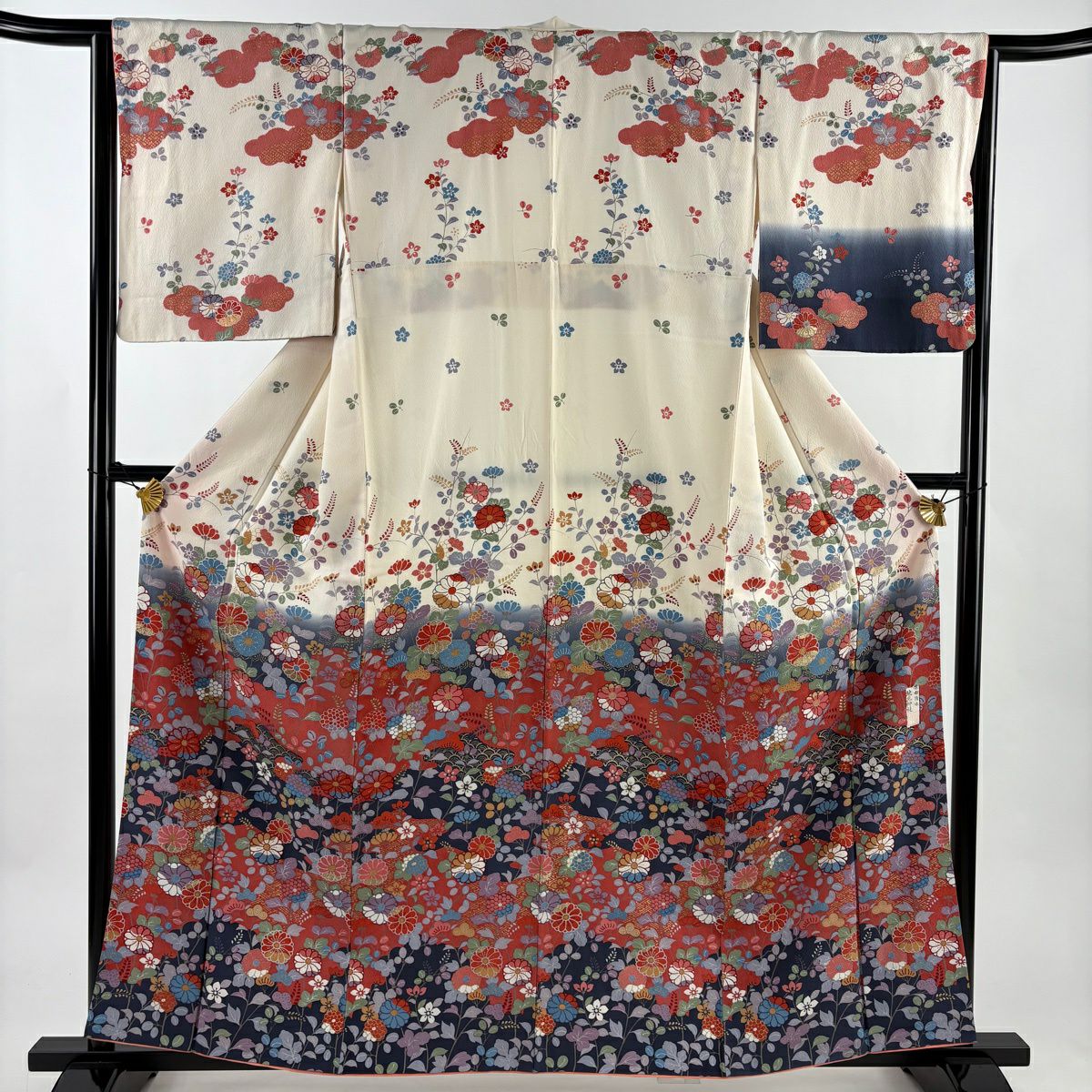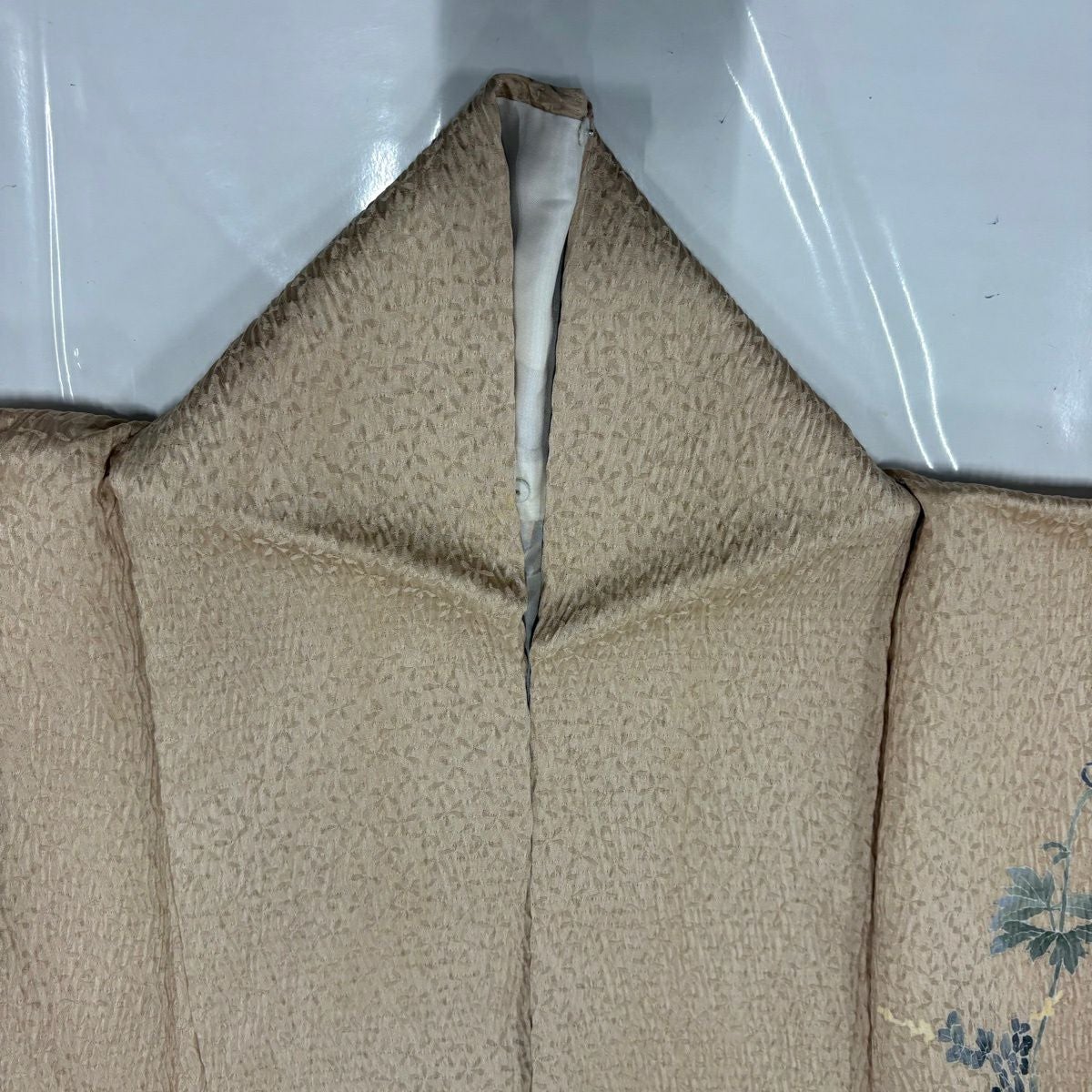 50%OFF 付下げ 身丈161.5cm 裄丈64cm M 袷 草花 ヱ霞 刺繍 ベージュ 正絹 秀品 K50