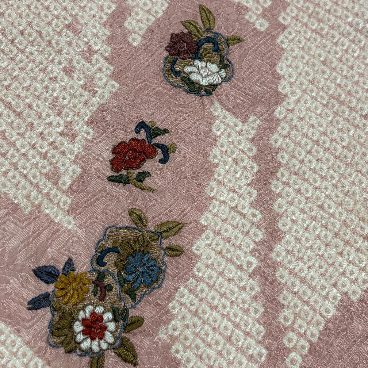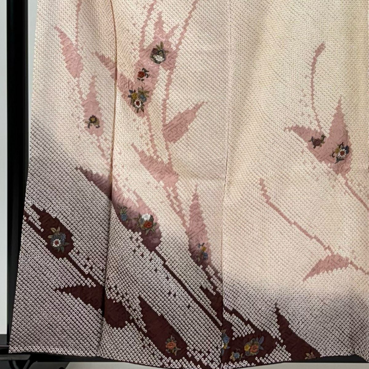50%OFF 訪問着 身丈160cm 裄丈65cm M 袷 草花 葉柄 刺繍 絞り 薄ピンク 正絹 秀品 K50