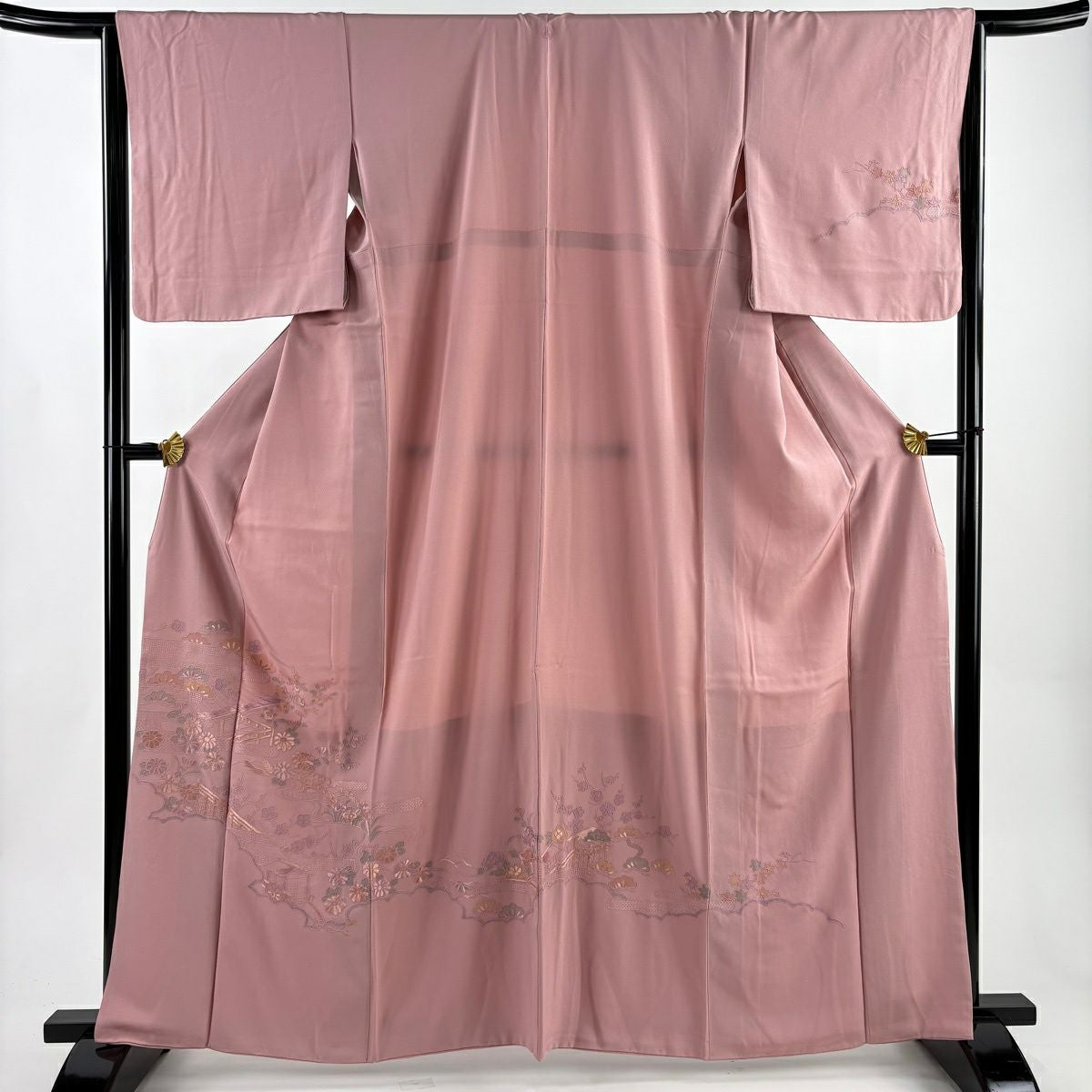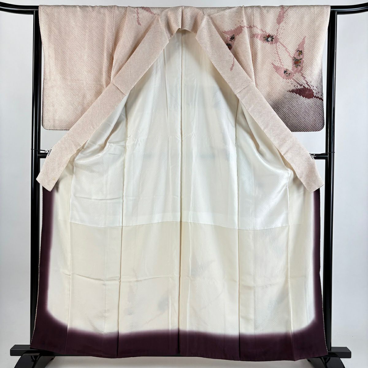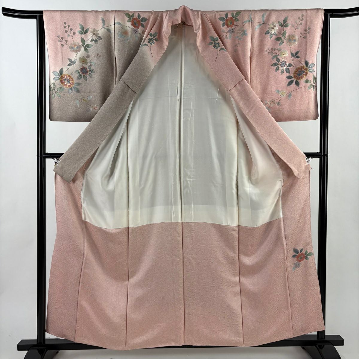 50%OFF 訪問着 身丈162.5cm 裄丈70cm L 袷 落款あり 草花 枝花 ピンク 正絹 秀品 K50