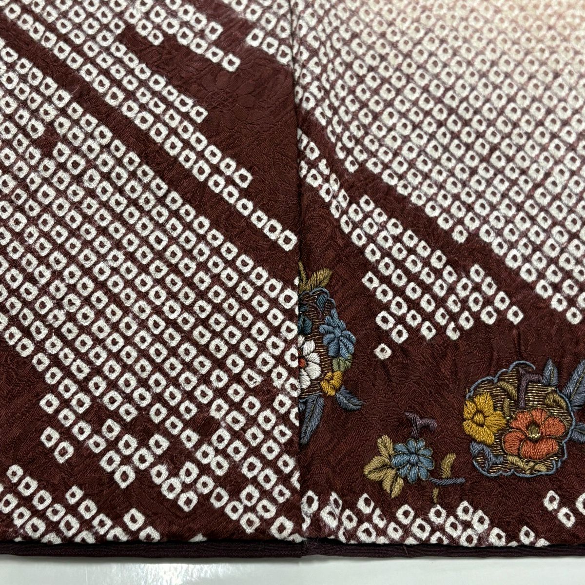 50%OFF 【美品】 紬 身丈155cm 裄丈63cm S 袷 ますいわ屋 華文 菱 焦茶色 正絹 秀品 K50