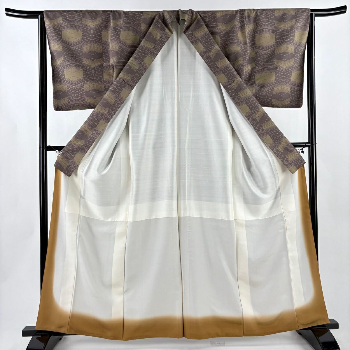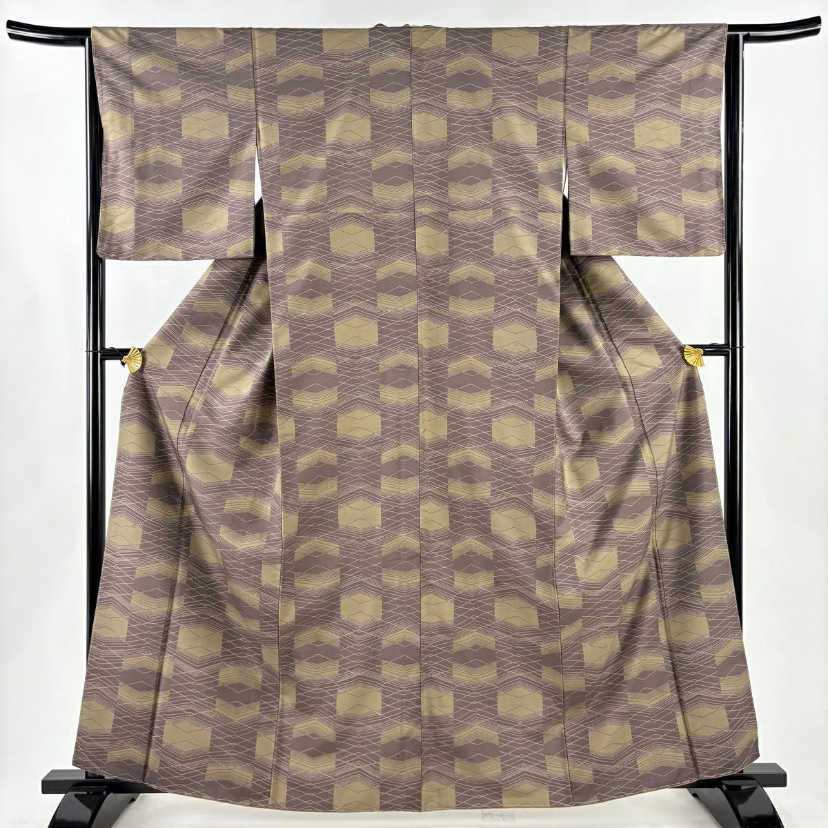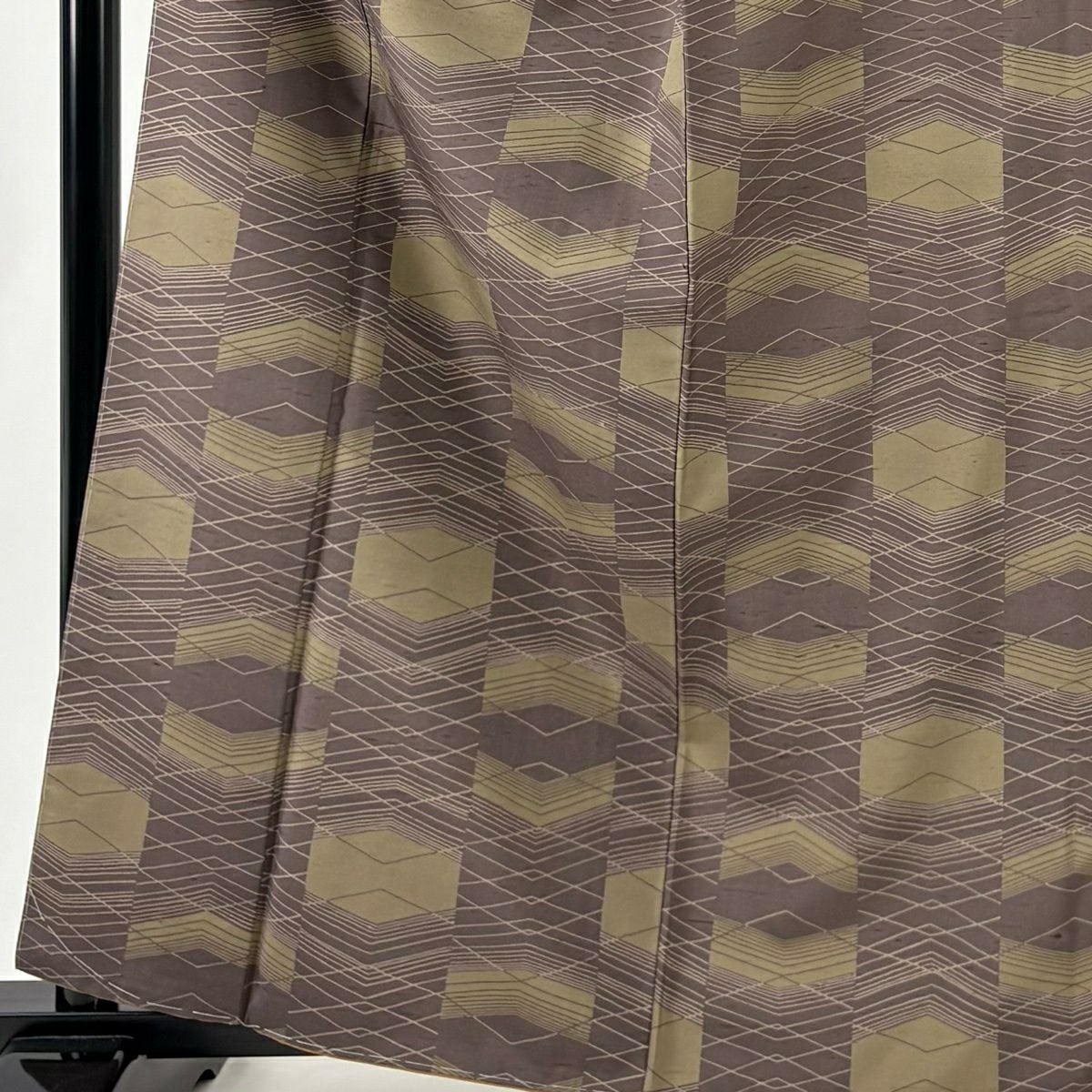 50%OFF 【美品】 紬 身丈165cm 裄丈67cm M 袷 縞 幾何学模様 ベージュ 正絹 秀品 K50