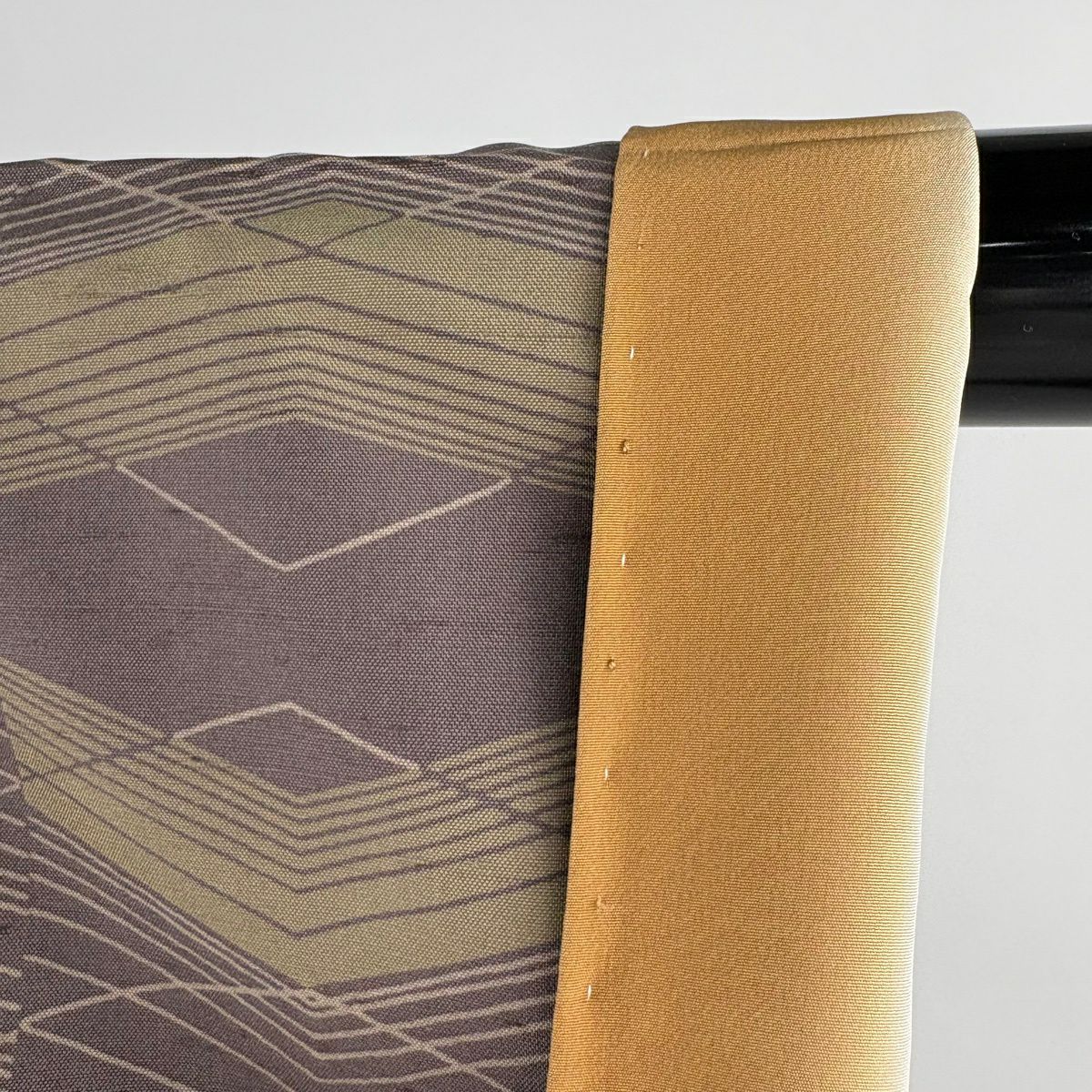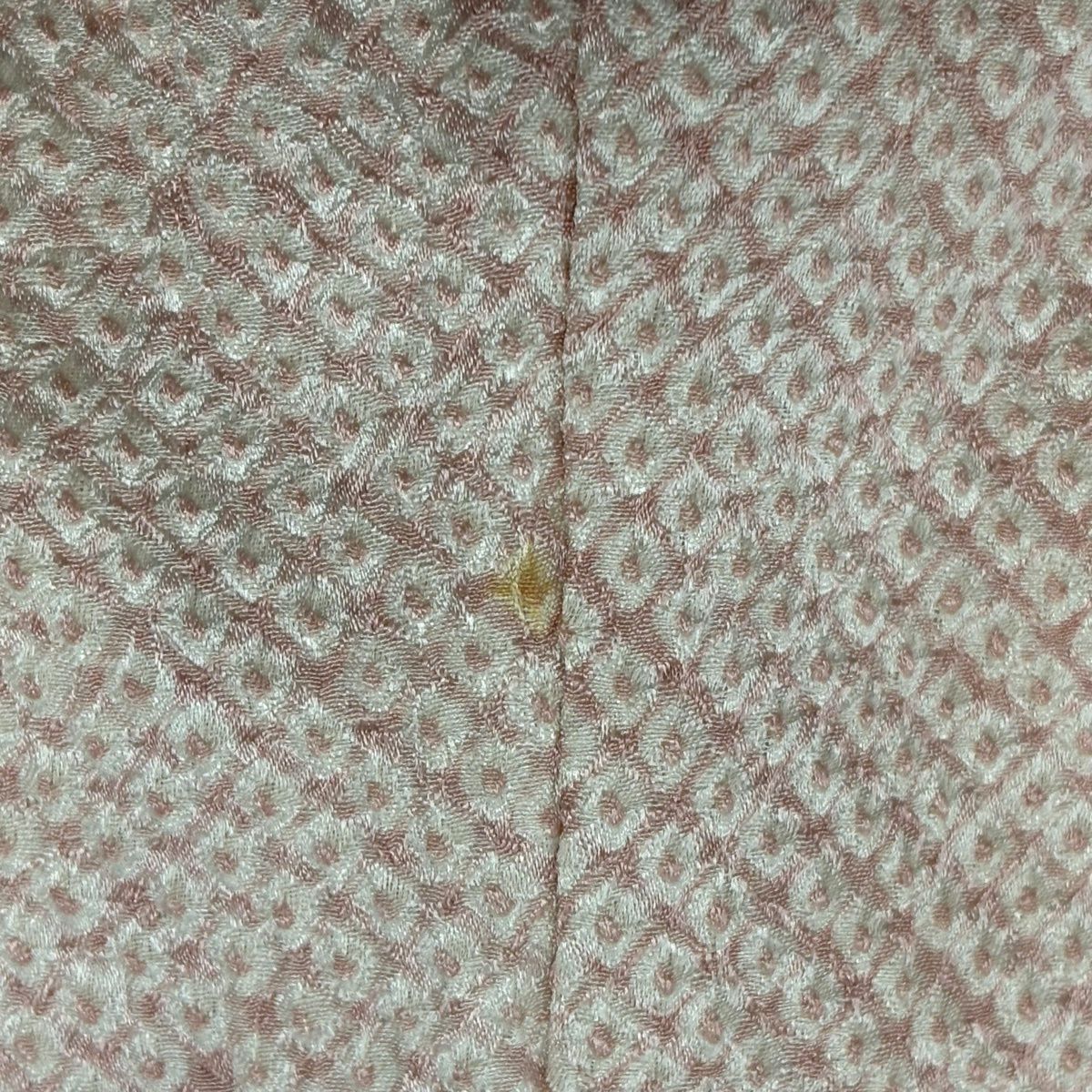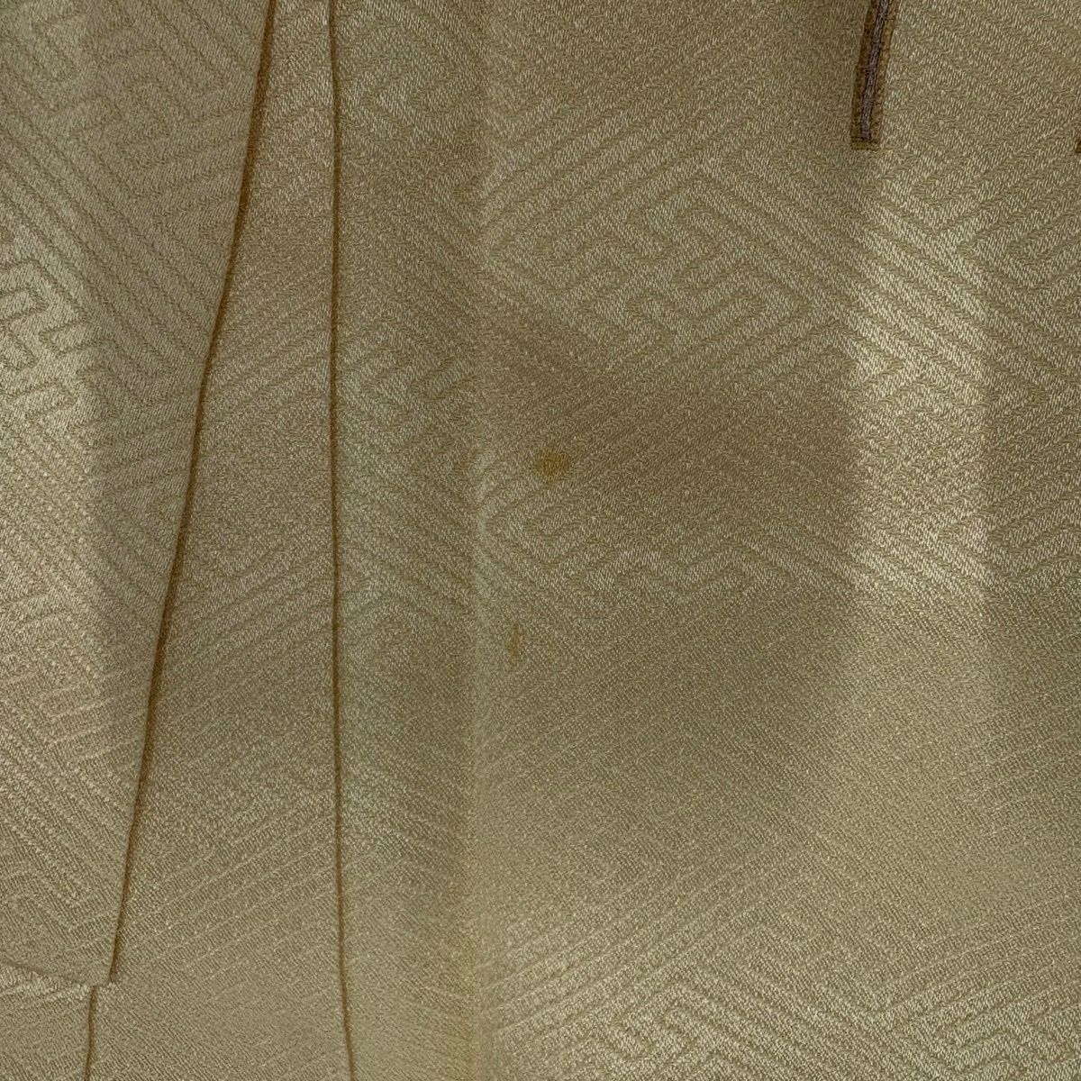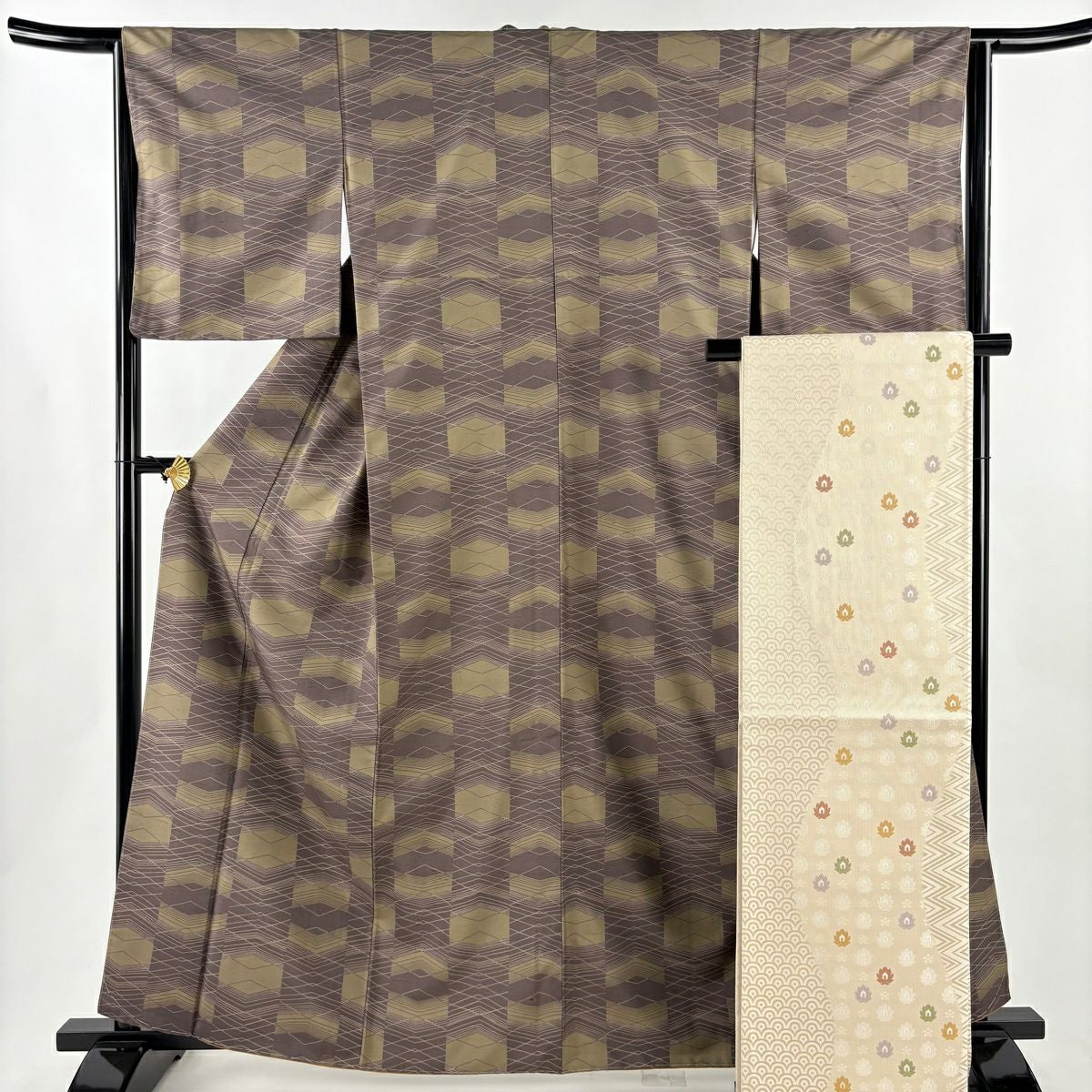 50%OFF 【美品】 紬 身丈165cm 裄丈67cm M 袷 縞 幾何学模様 ベージュ 正絹 秀品 K50