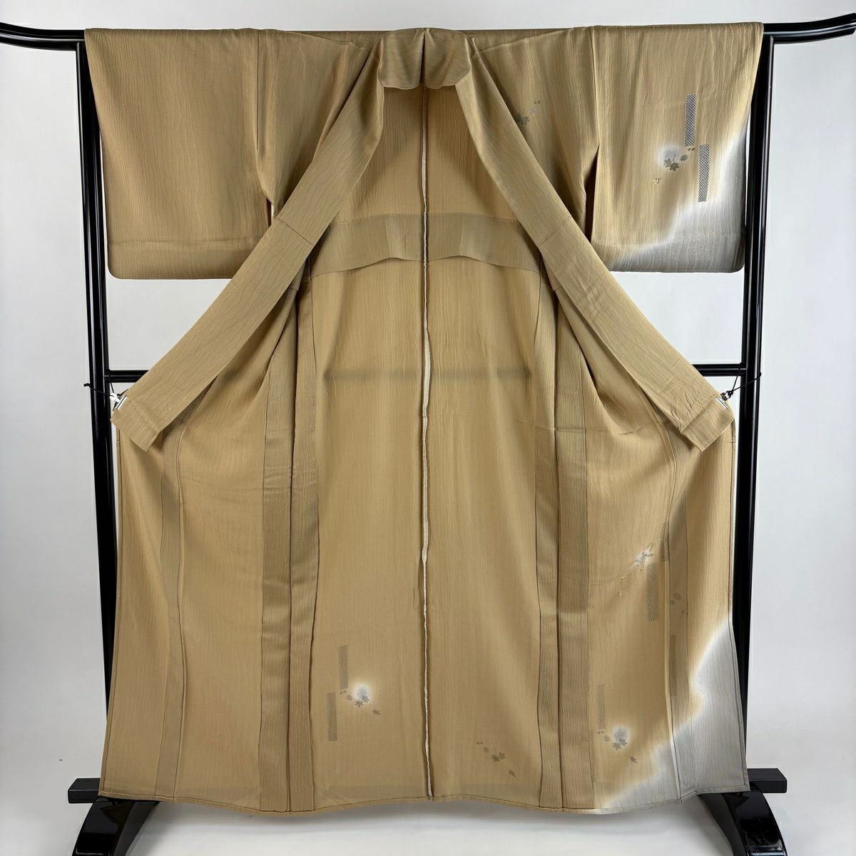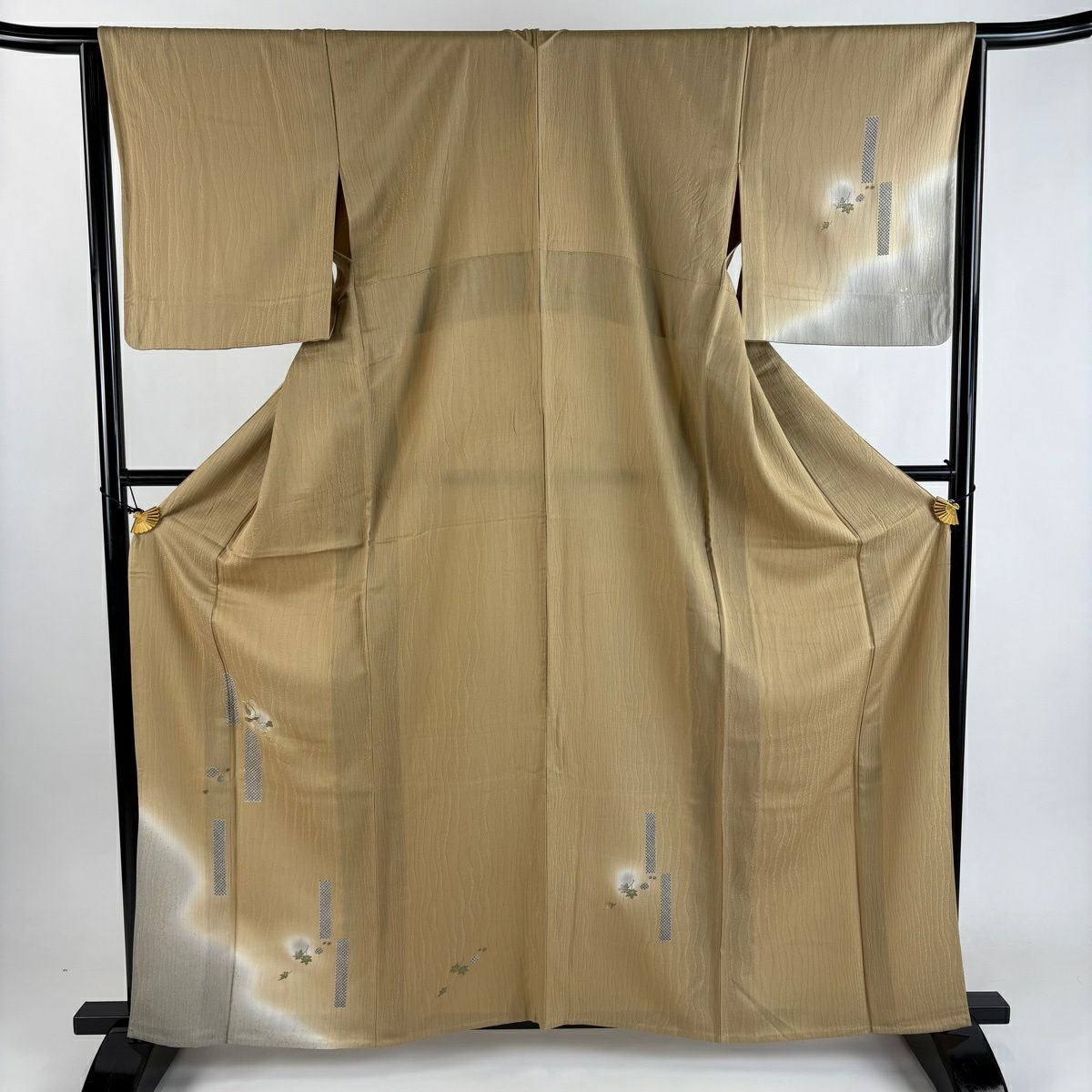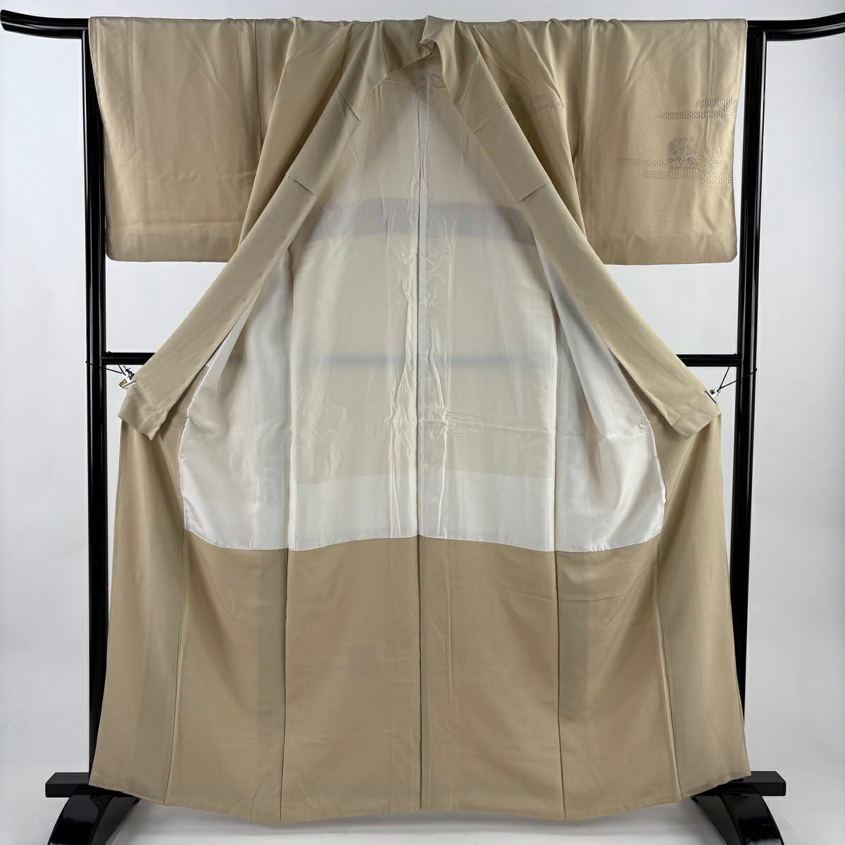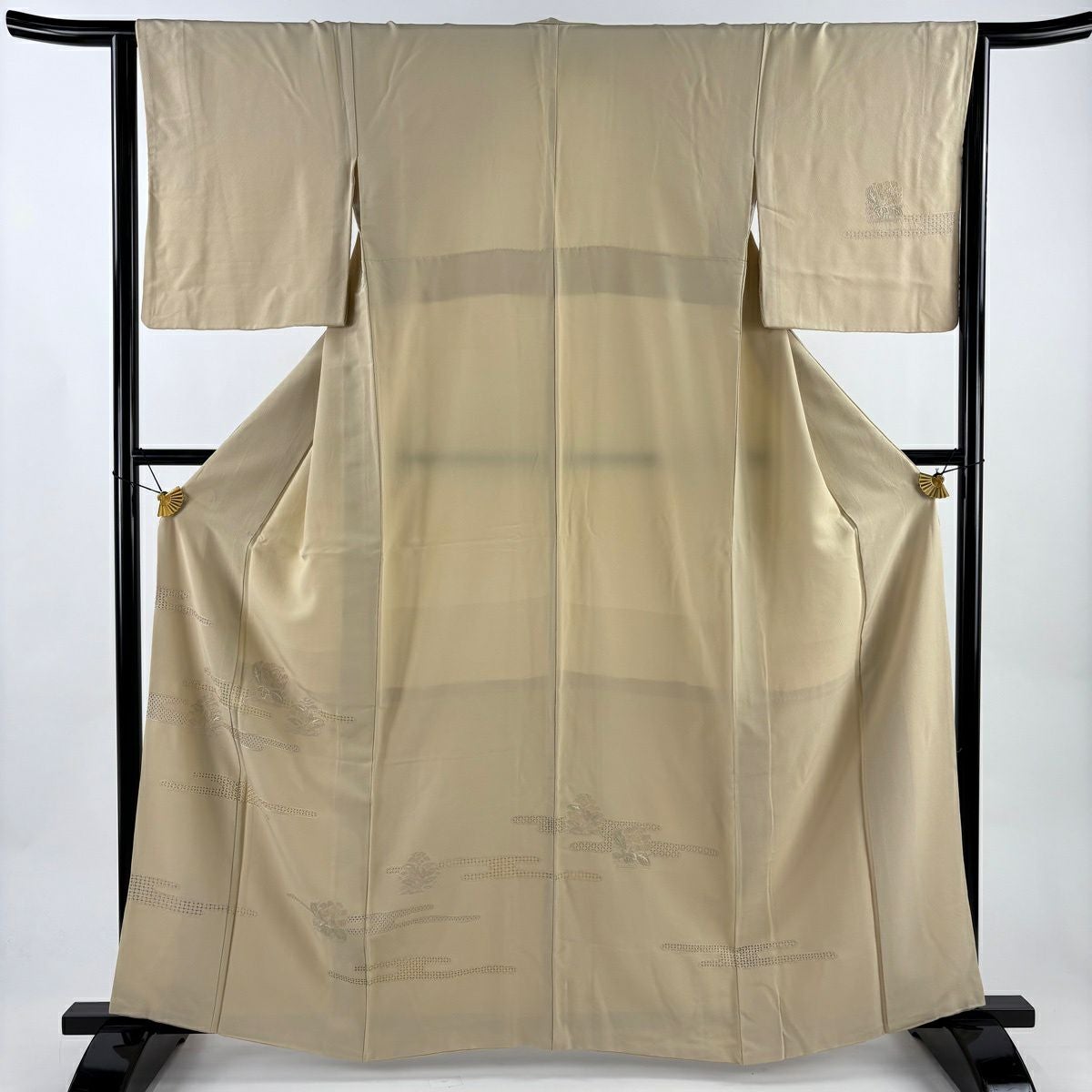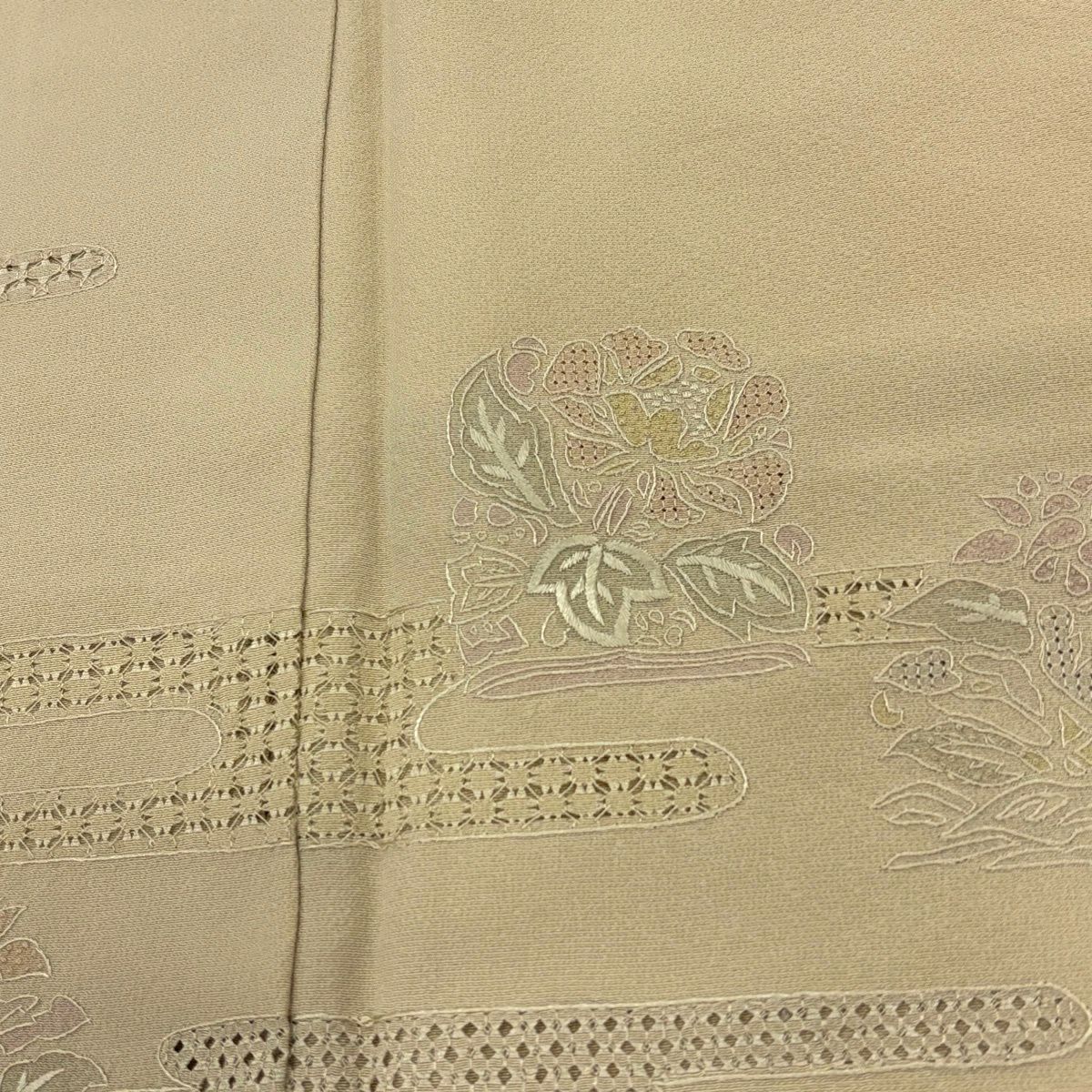 50%OFF 付下げ 身丈158cm 裄丈62.5cm S 袷 亀甲 草花 刺繍 ベージュ 正絹 秀品 K50