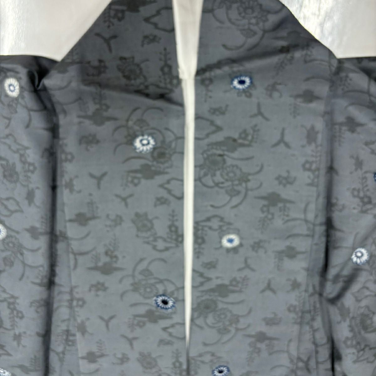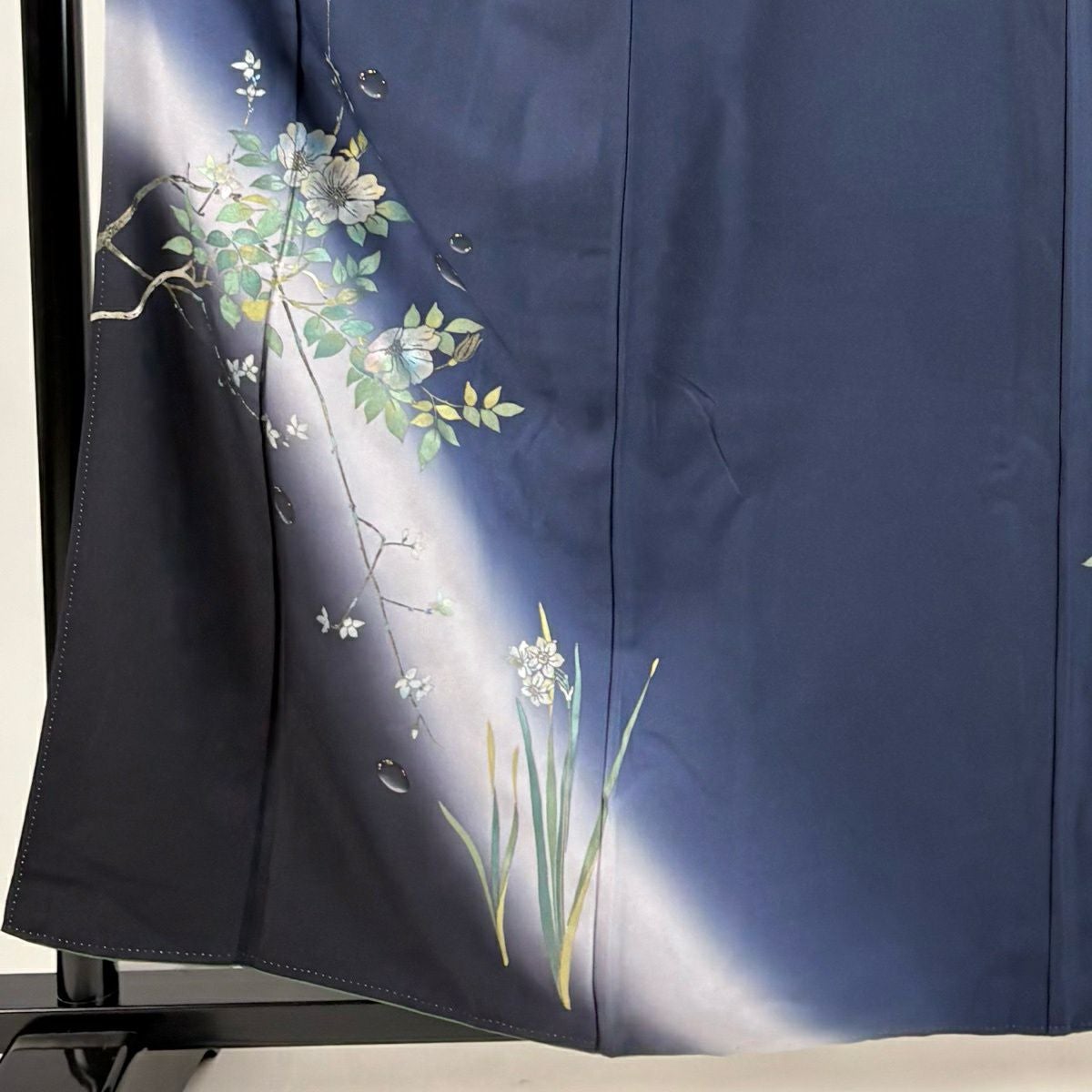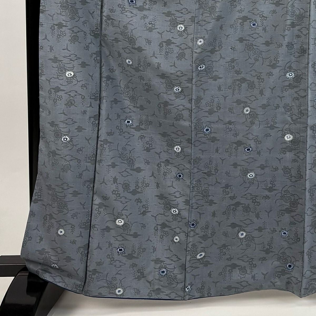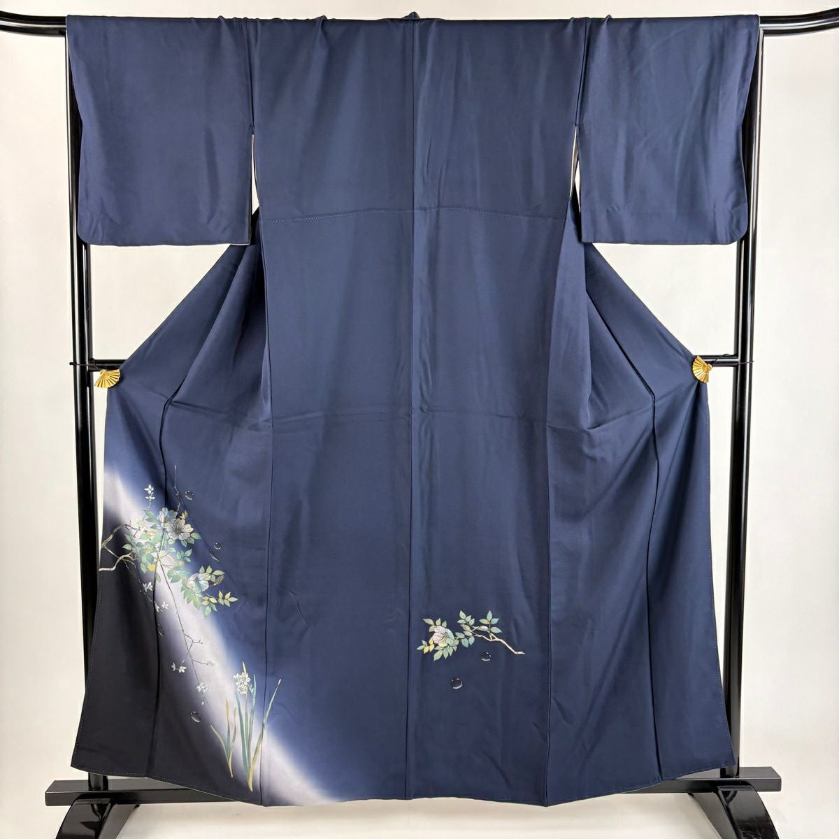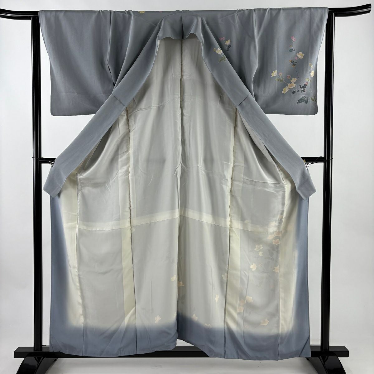 50%OFF 付下げ 身丈158.5cm 裄丈65cm M 袷 枝梅 萩 金彩 染め分け 青灰色 正絹 秀品 K50