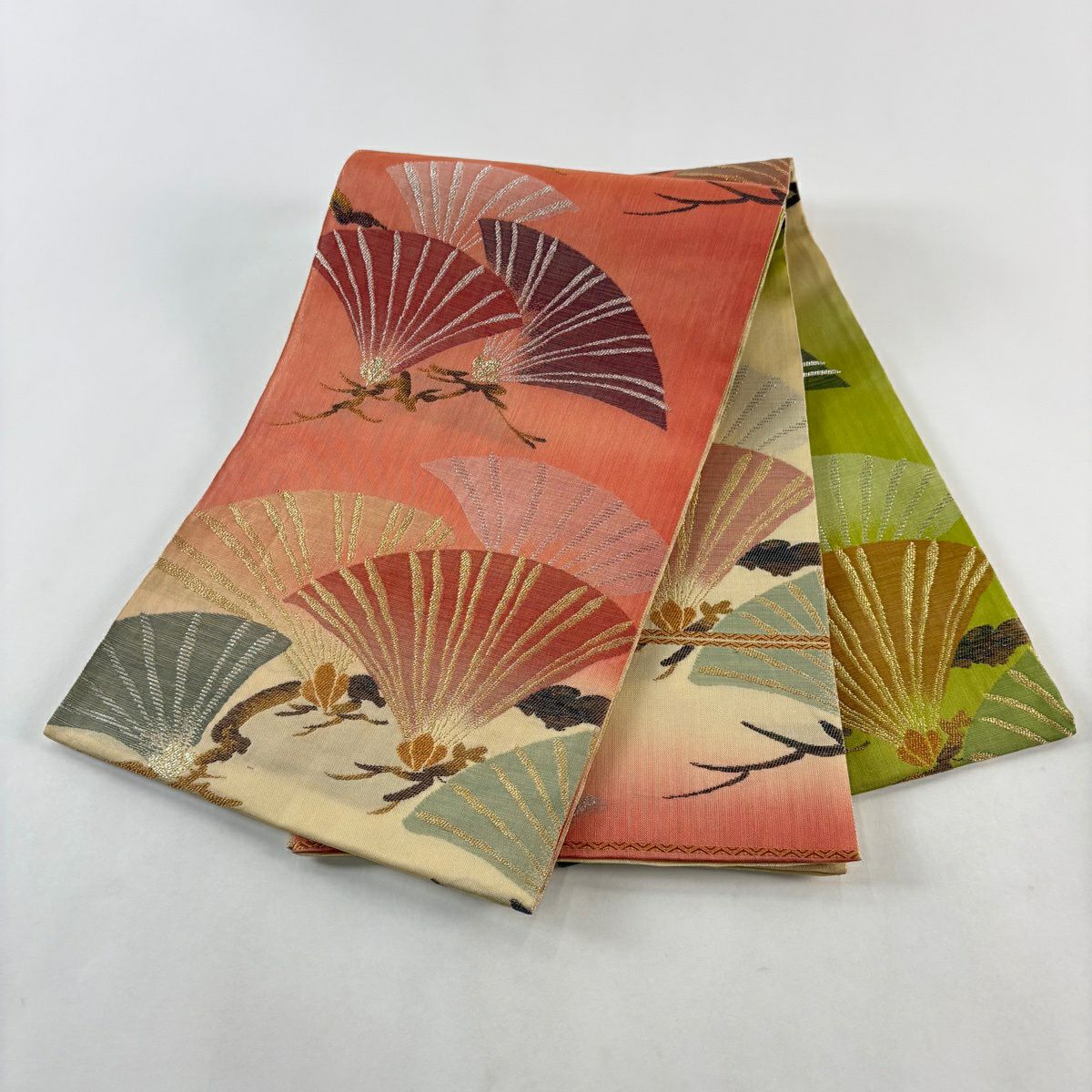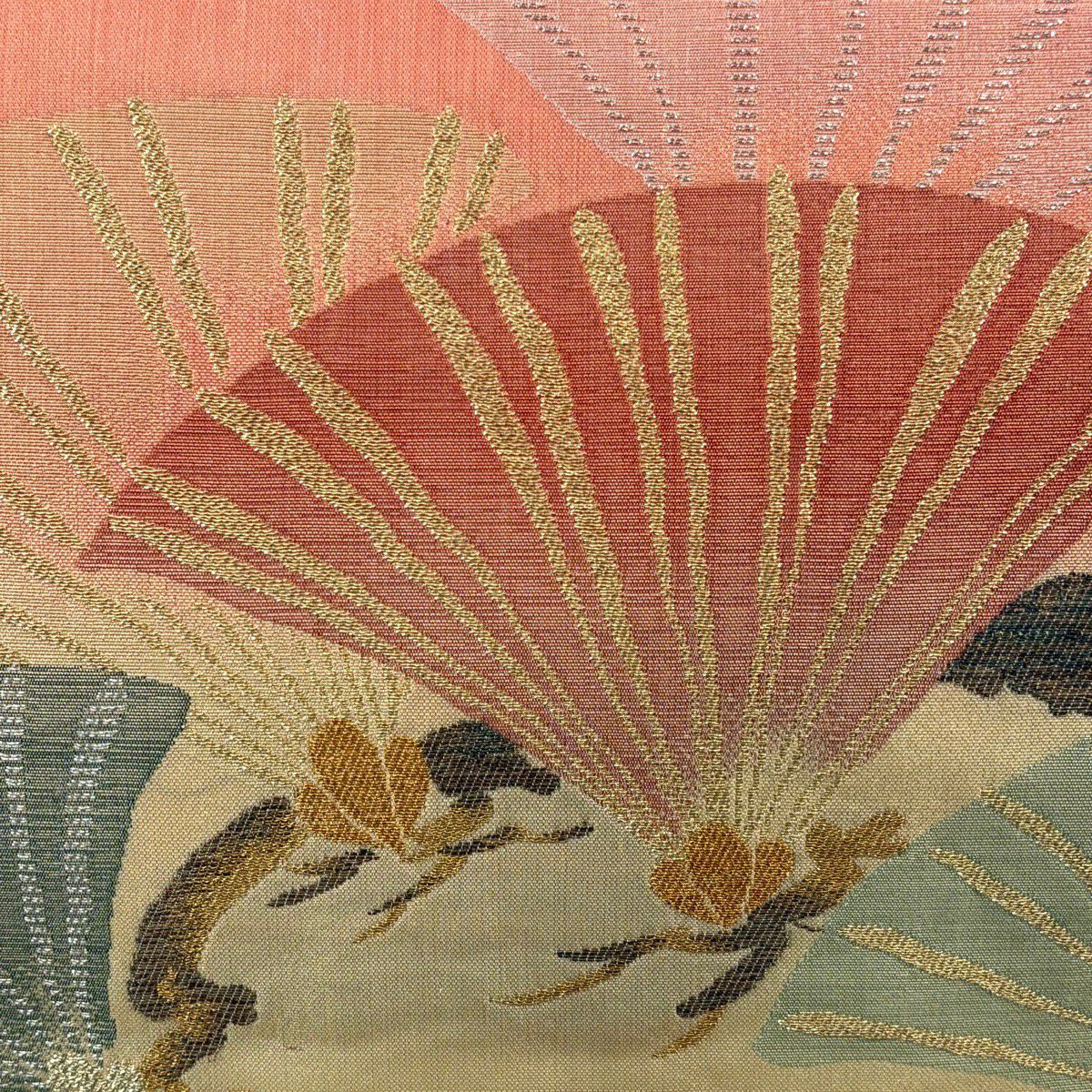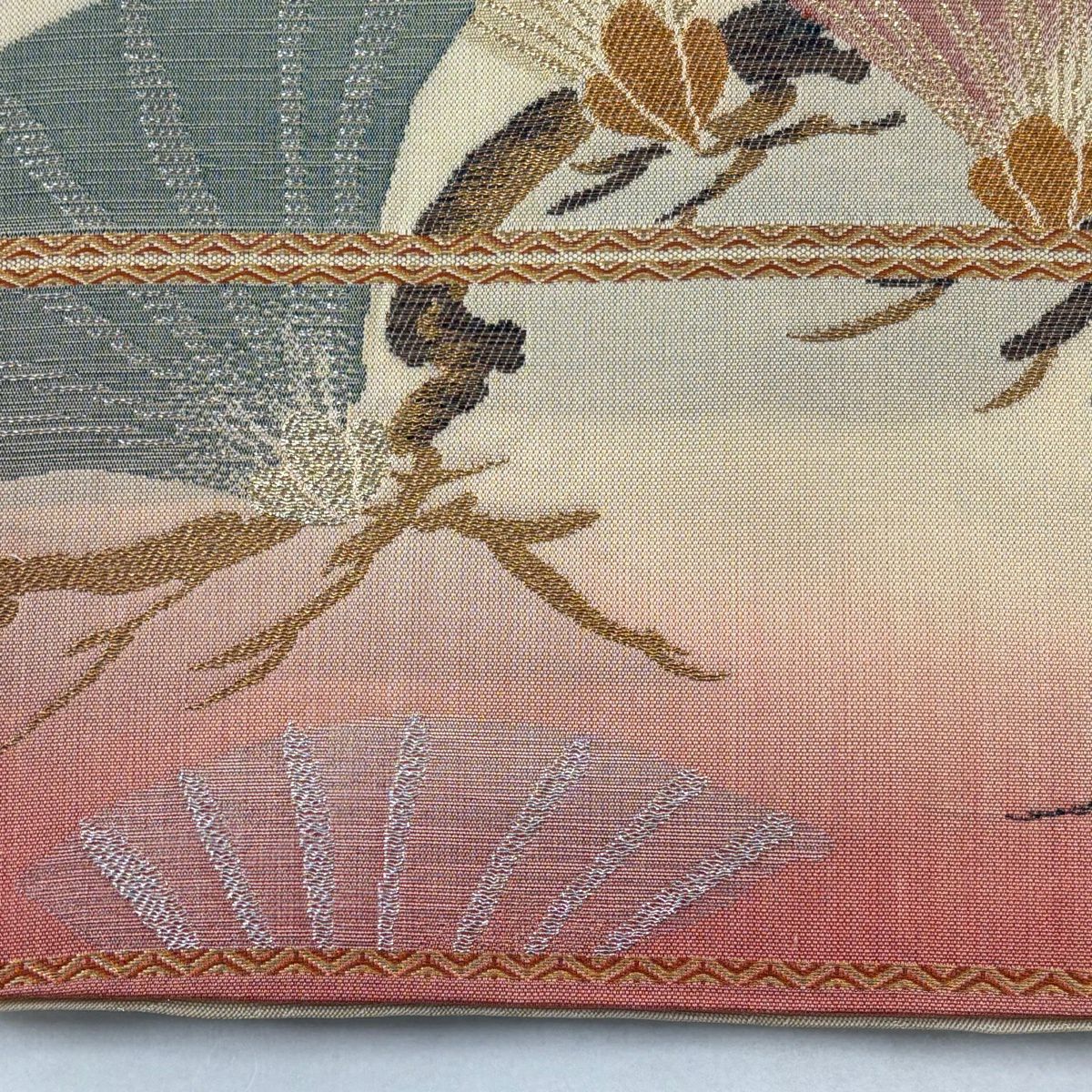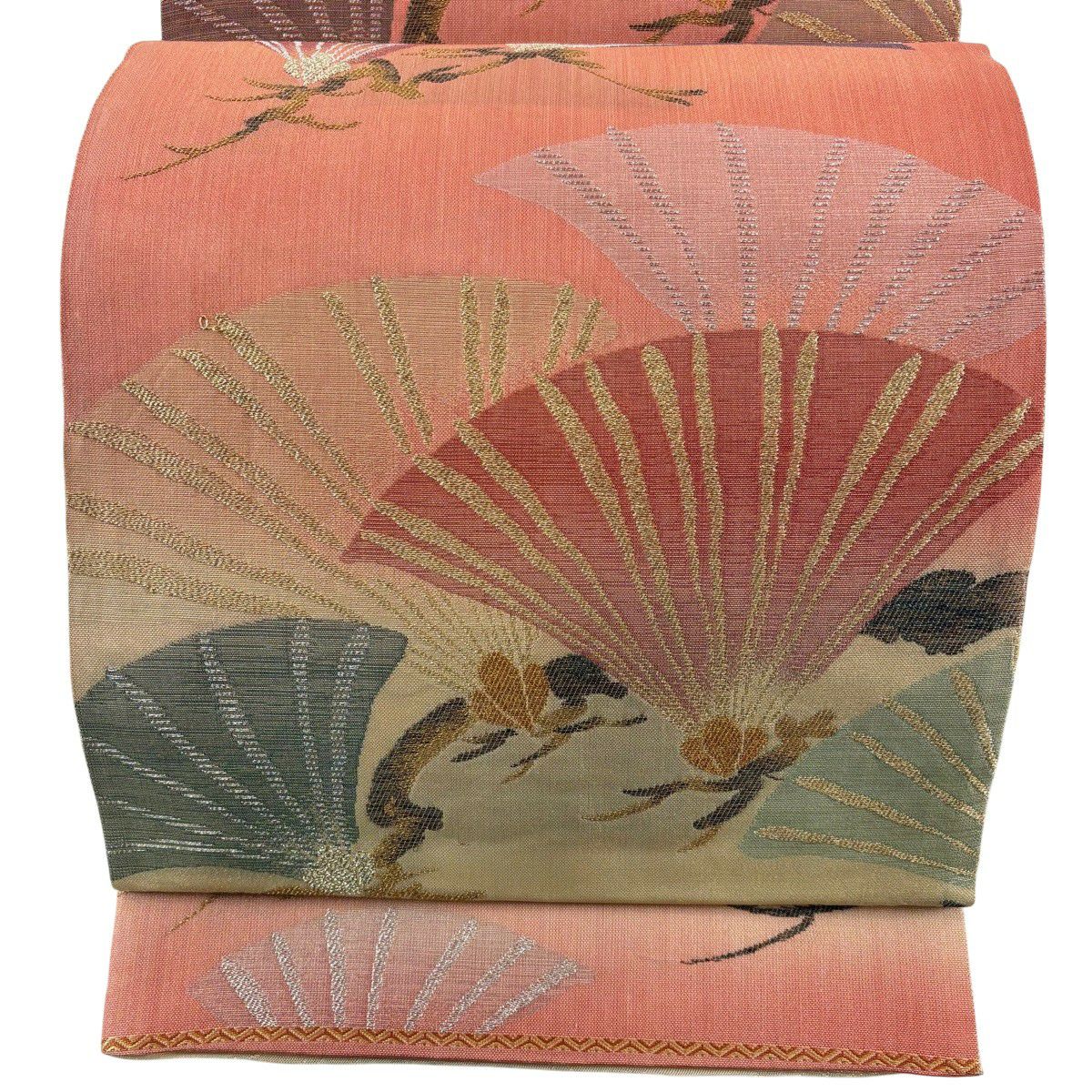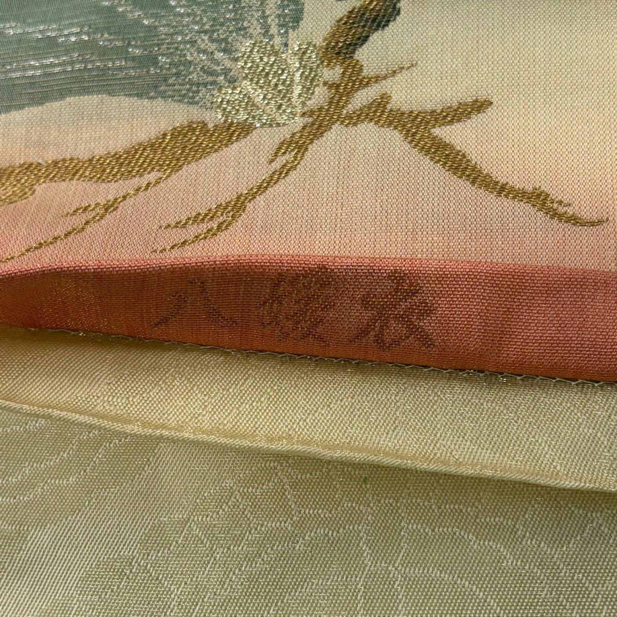 50%OFF 袋帯 秀品 落款あり 室町源 八媛衣 関西仕立て 松 金銀糸 サーモンピンク 六通 正絹 K50
