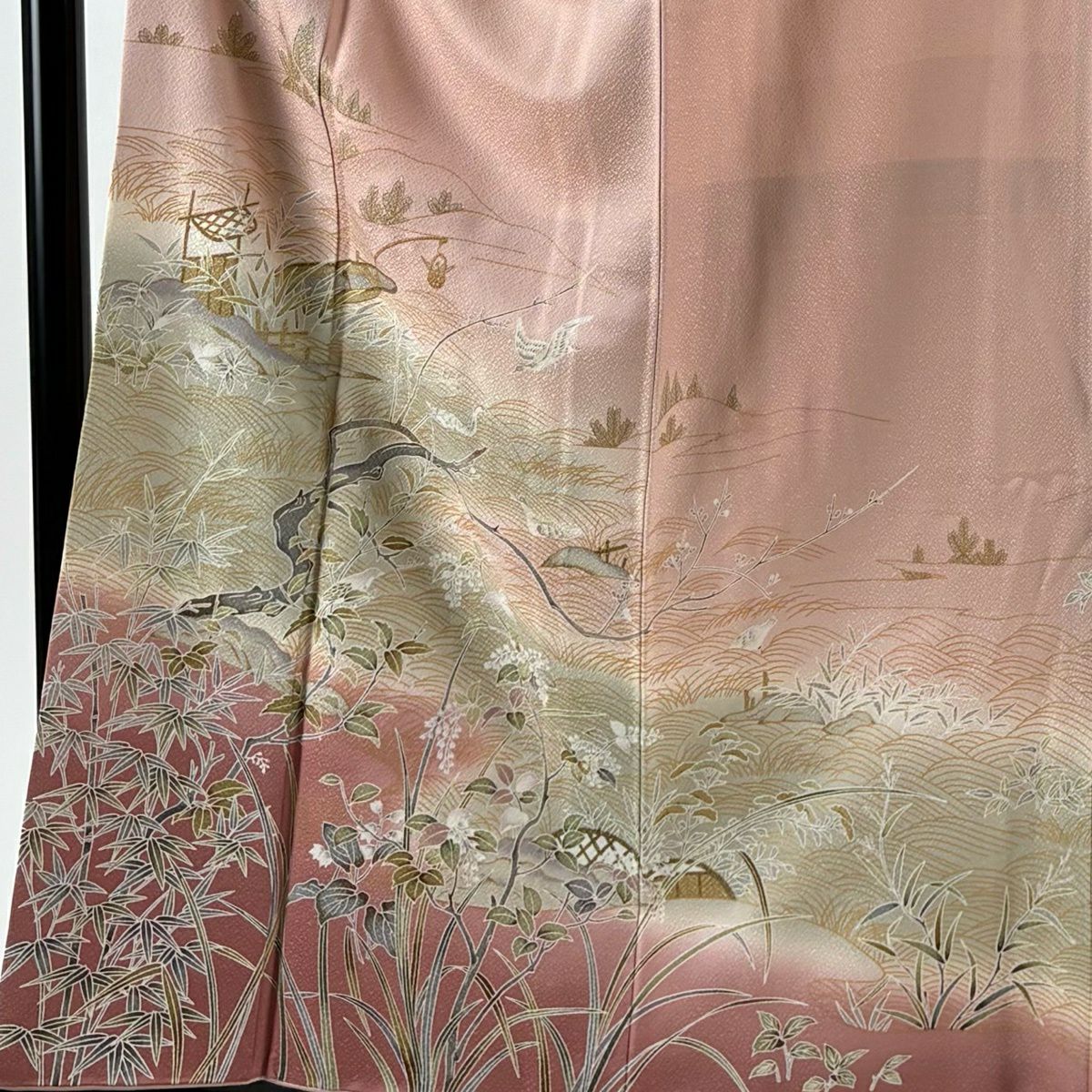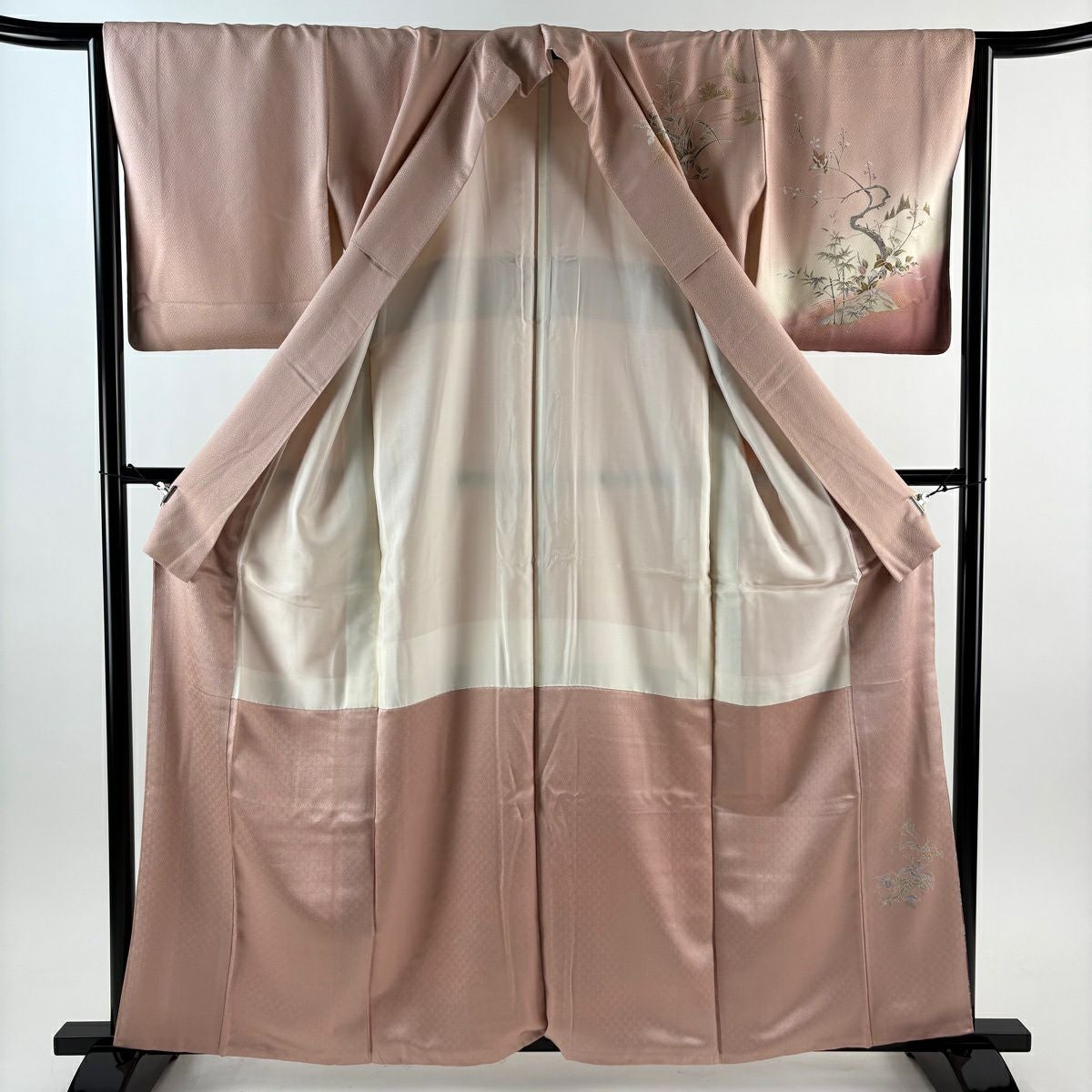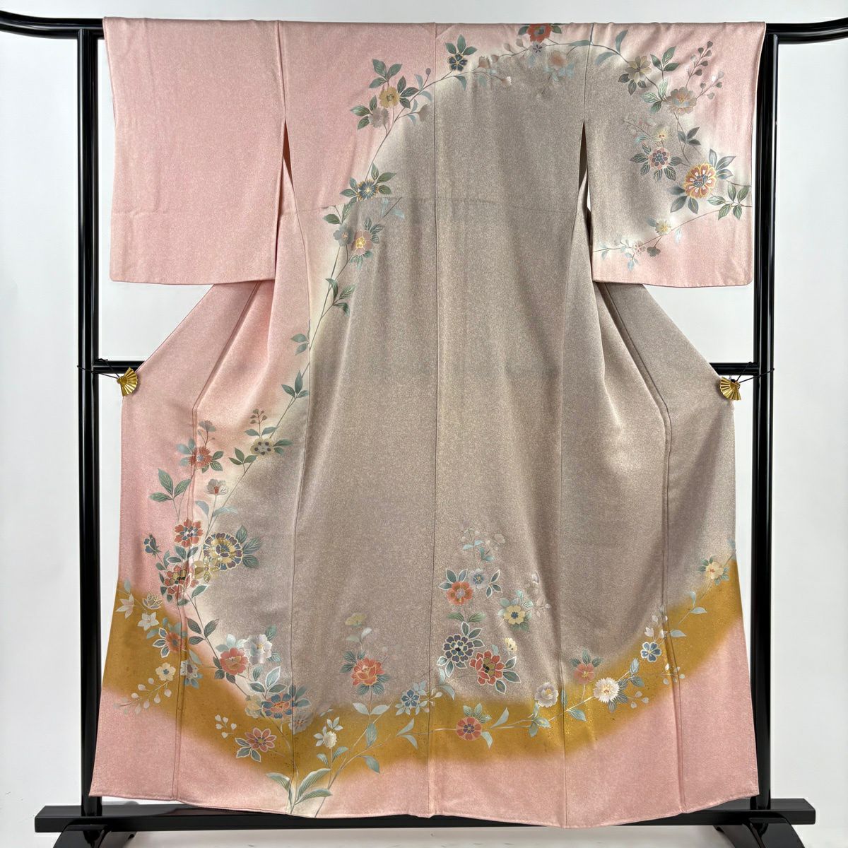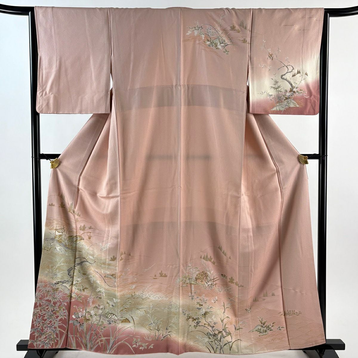 50%OFF 訪問着 身丈160cm 裄丈64.5cm M 袷 舟 笹 金彩 ぼかし ピンク 正絹 秀品 K50