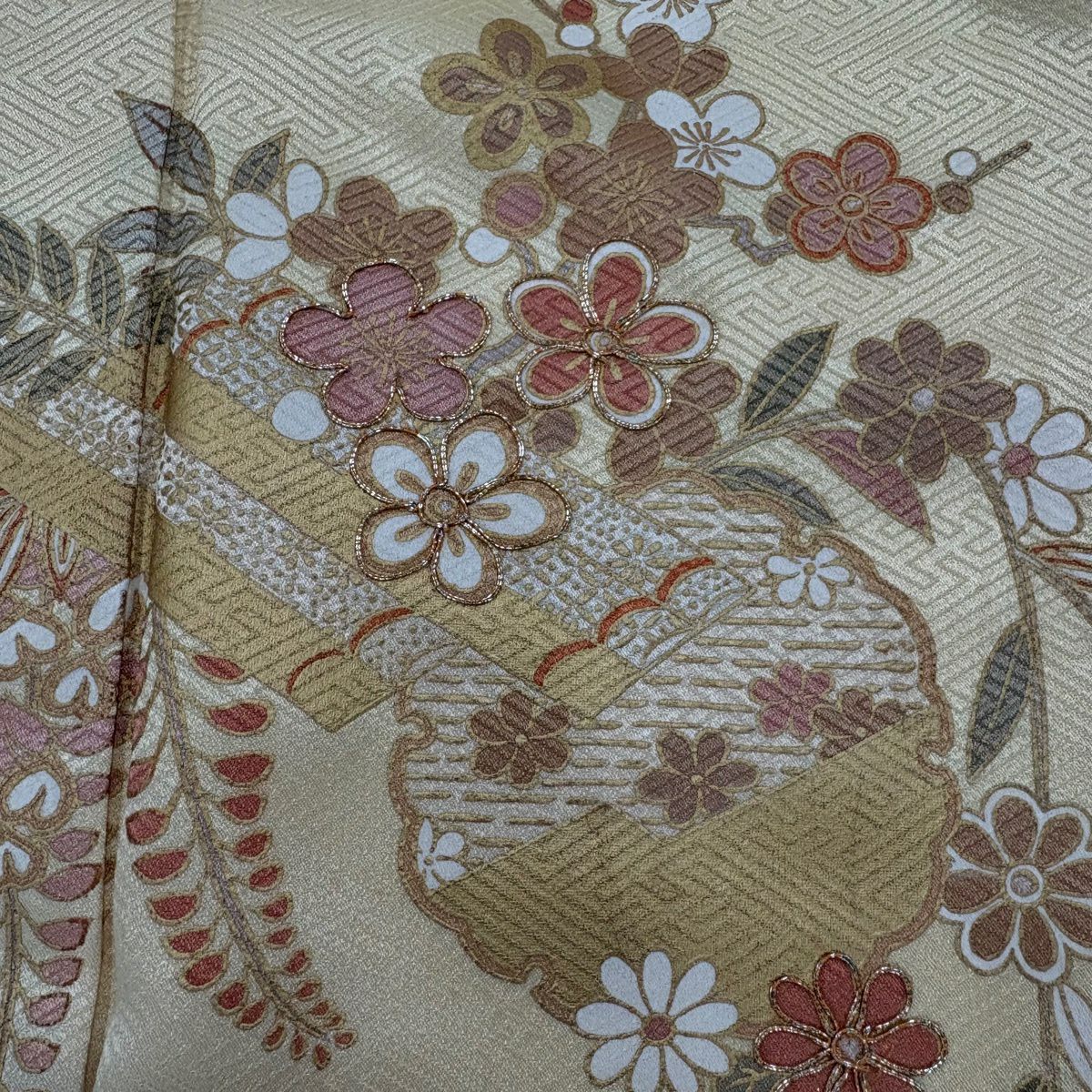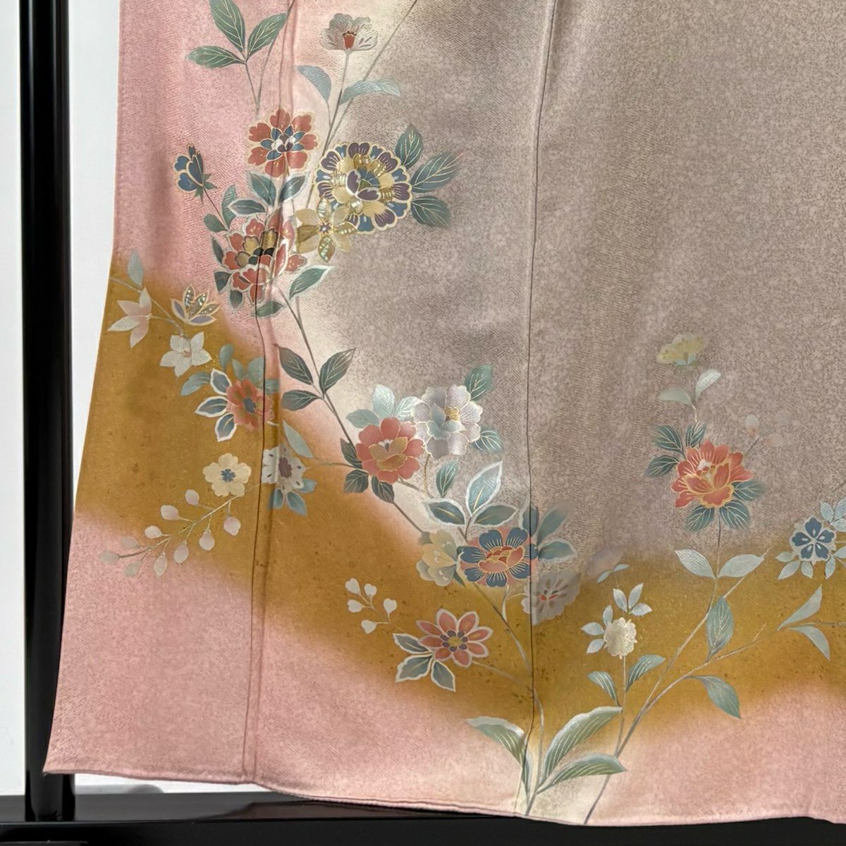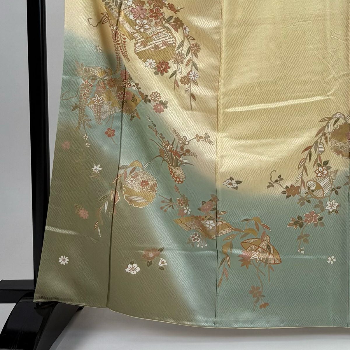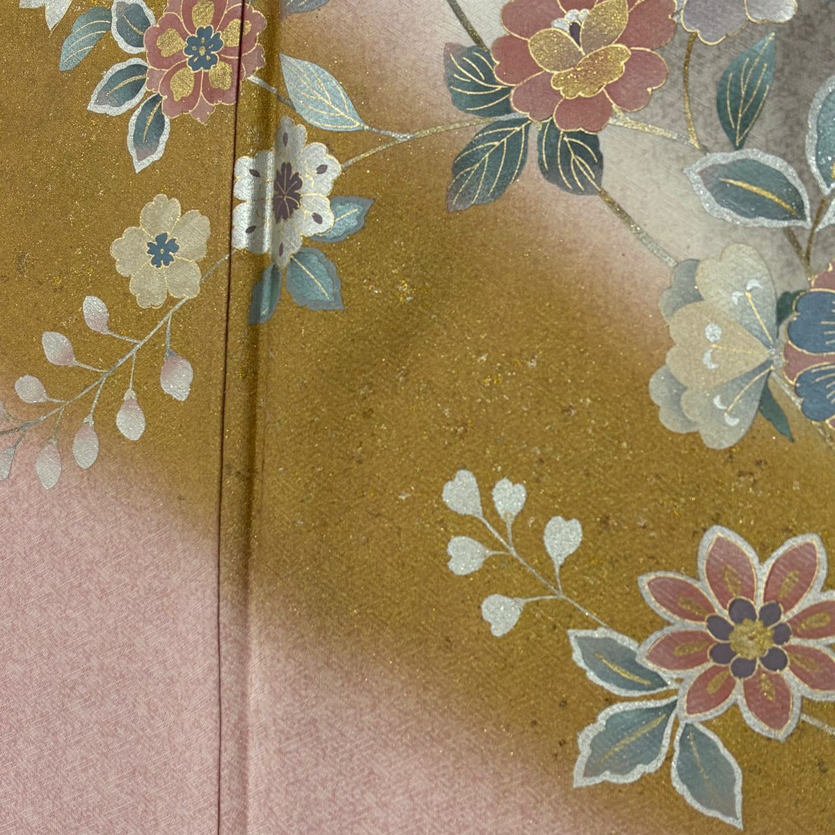 50%OFF 振袖 身丈165cm 裄丈67.5cm L 袷 桜 源氏香 金彩 ぼかし 山吹茶色 正絹 秀品 K50