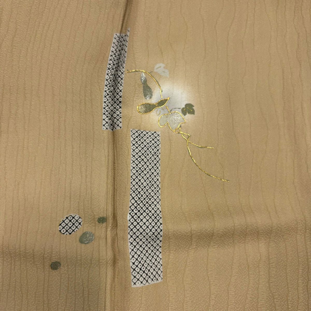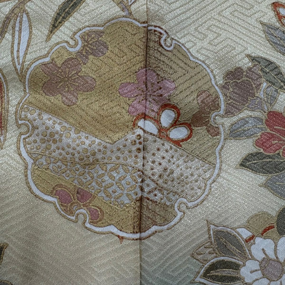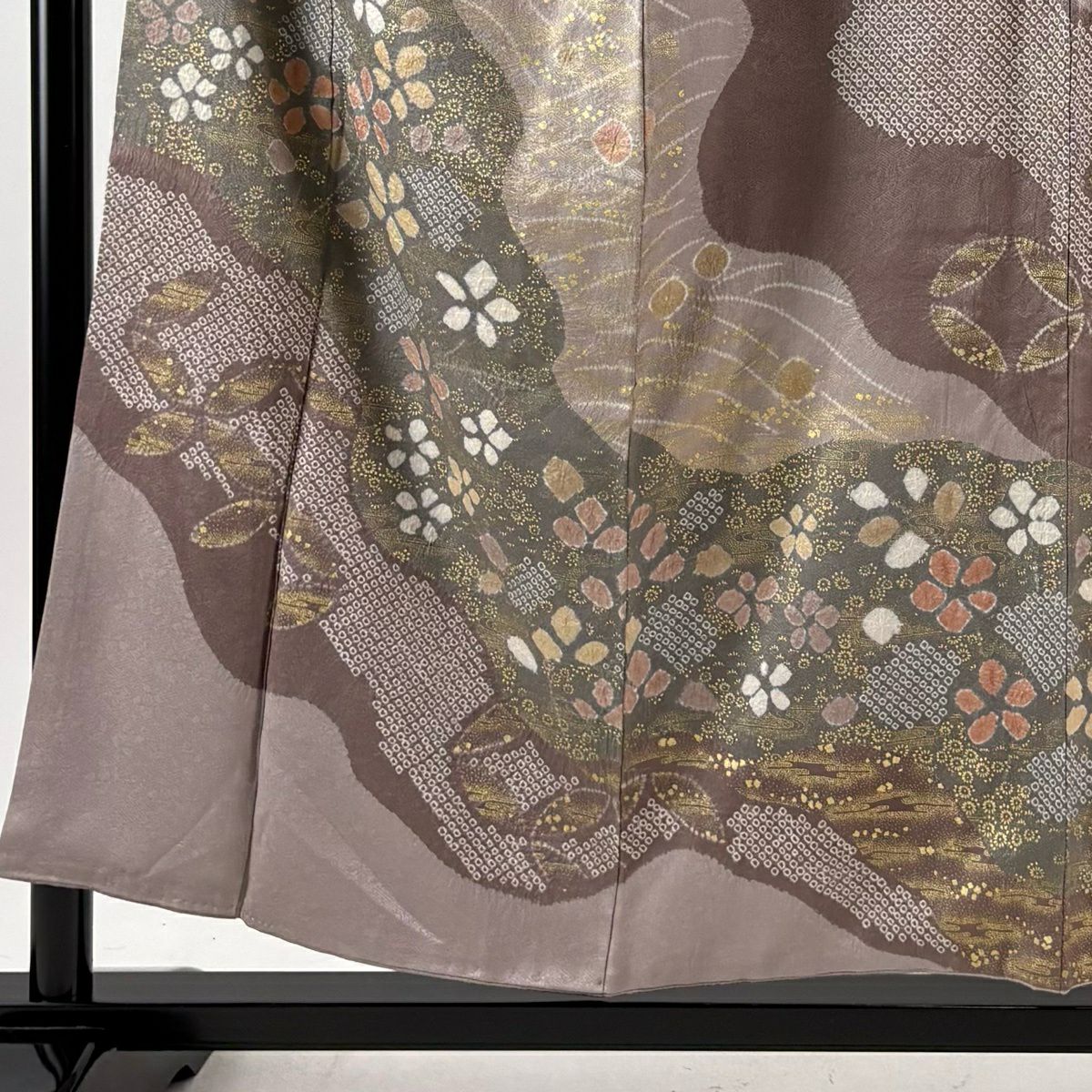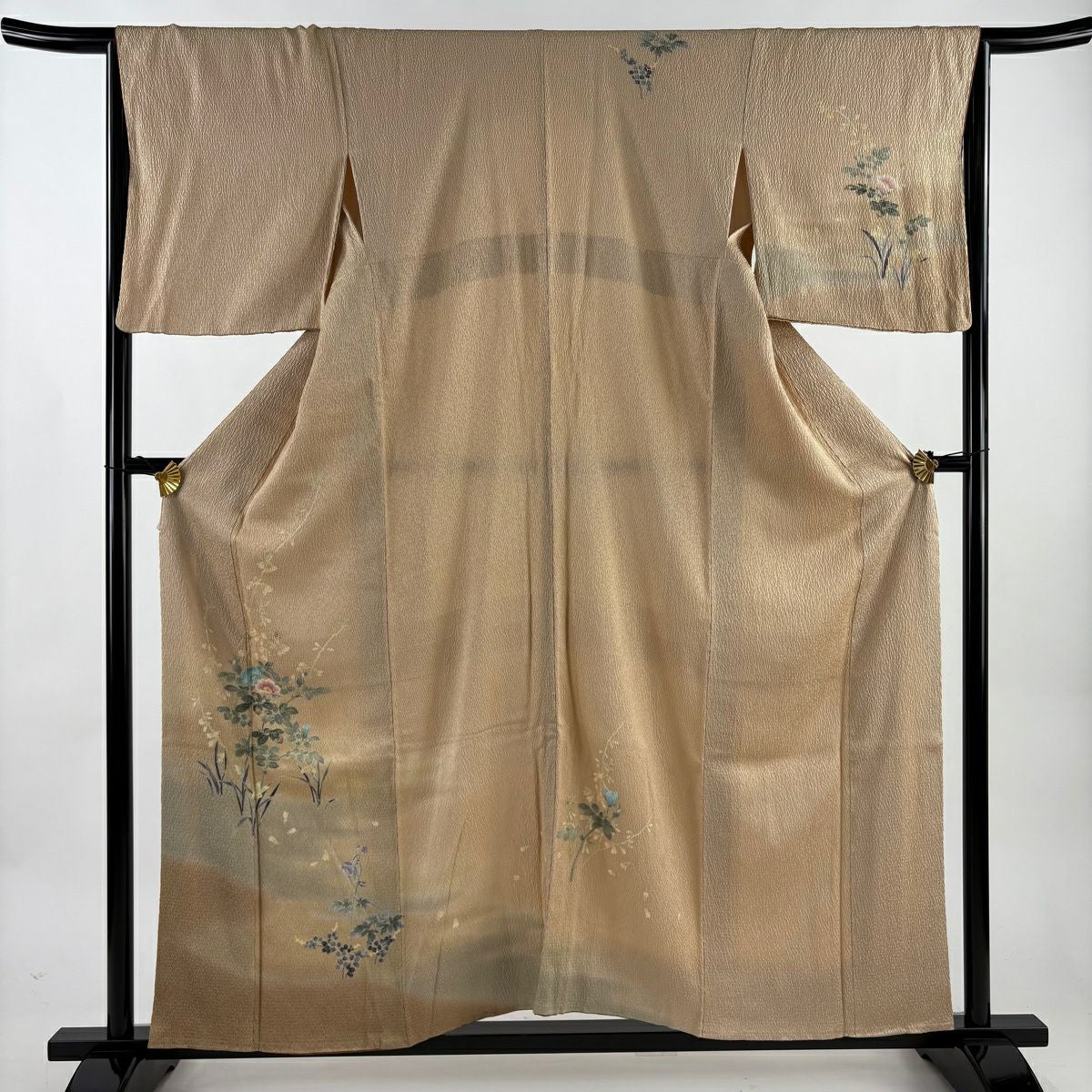 50%OFF 訪問着 身丈156cm 裄丈63cm S 袷 草花 霞 金彩 絞り ベージュ 正絹 秀品 K50