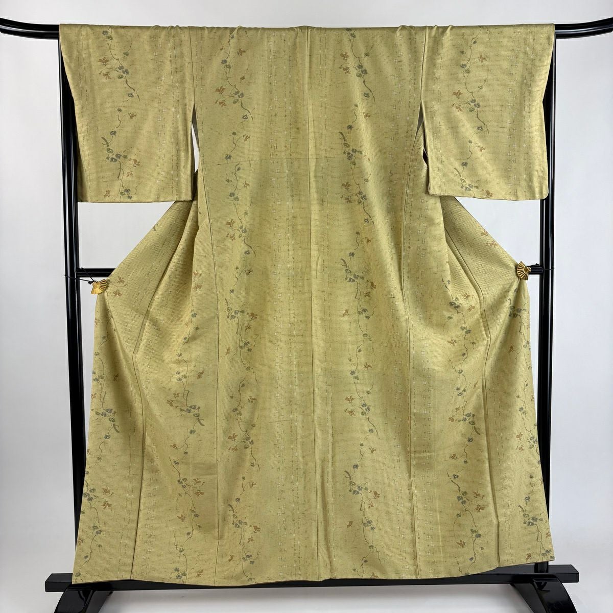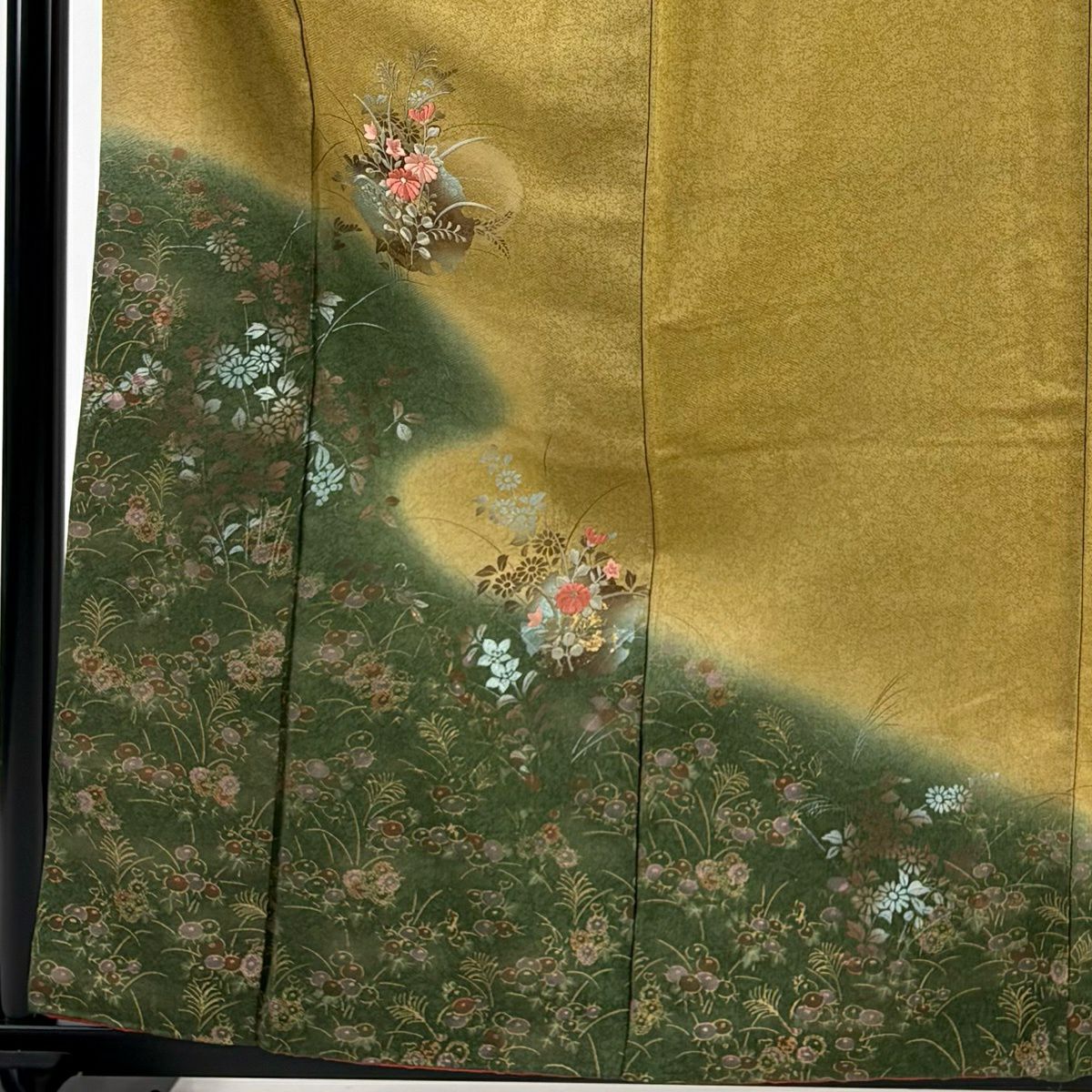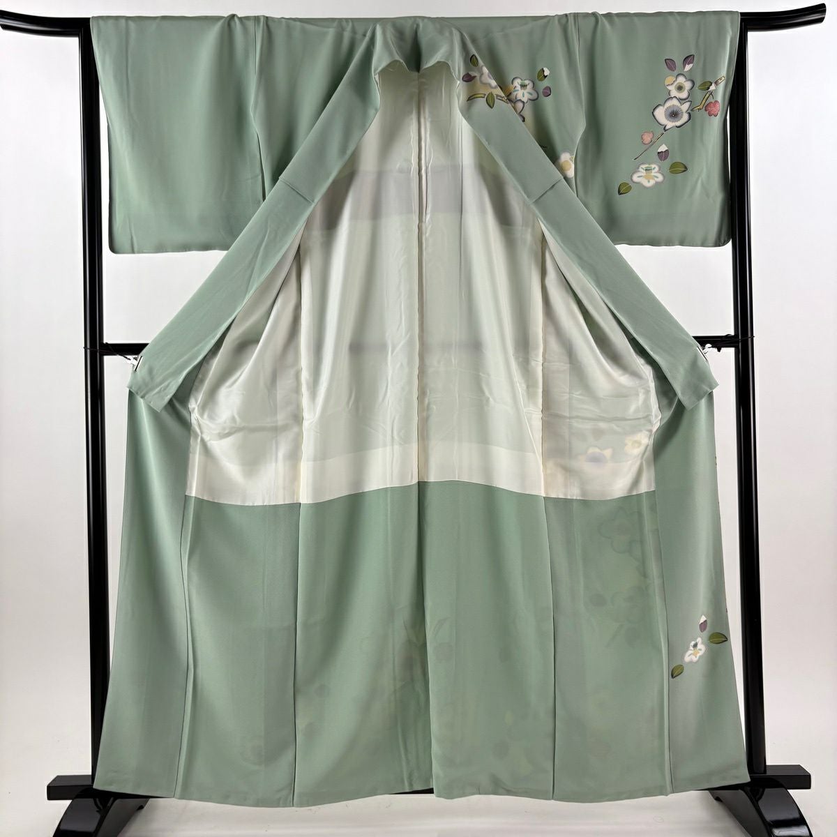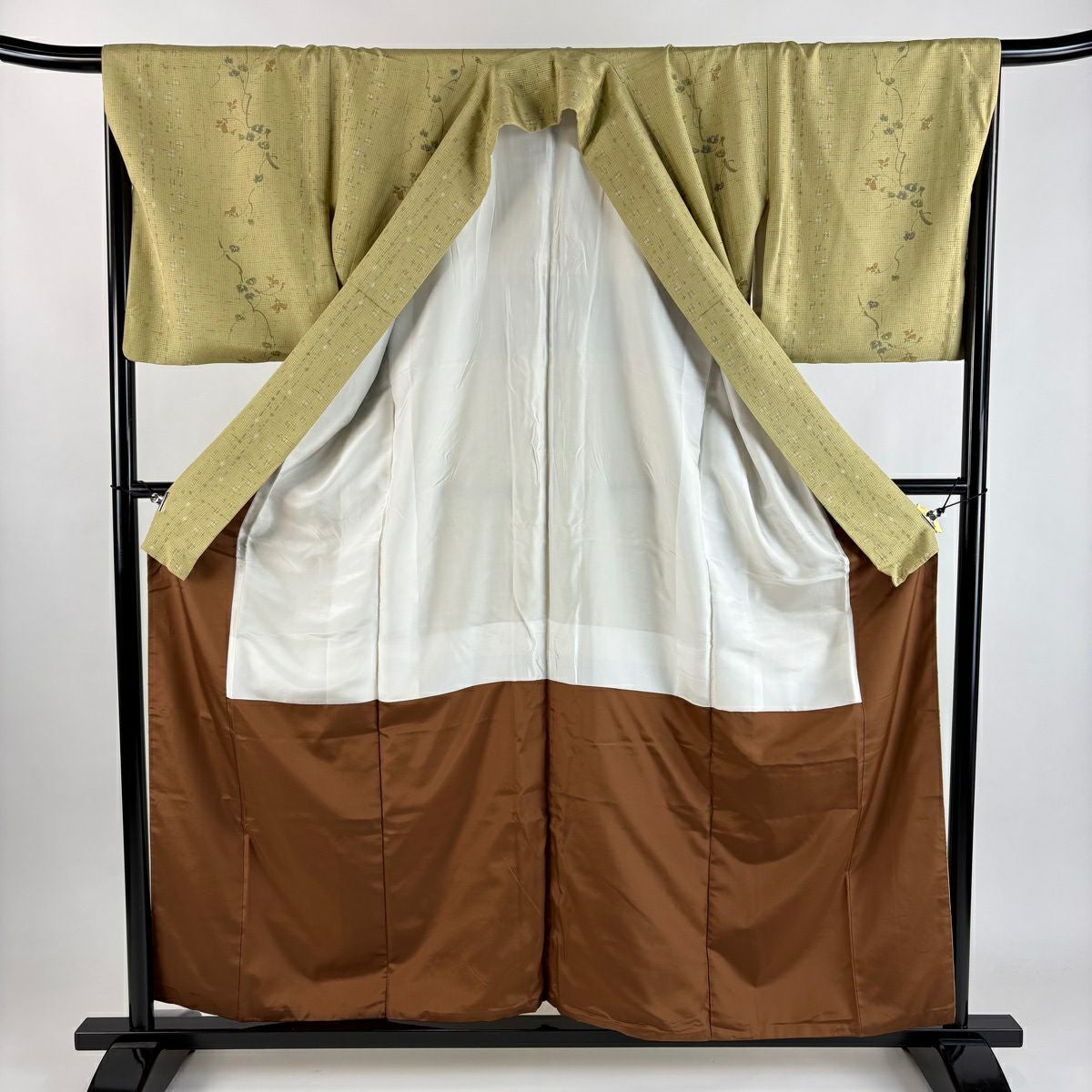 50%OFF 【美品】 訪問着 身丈154.5cm 裄丈65cm M 袷 草花 よもぎ色 正絹 秀品 一つ紋 K50