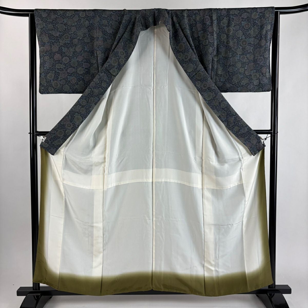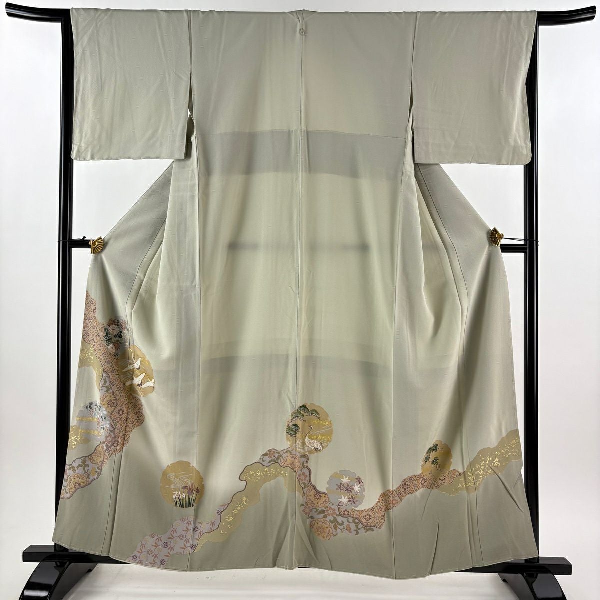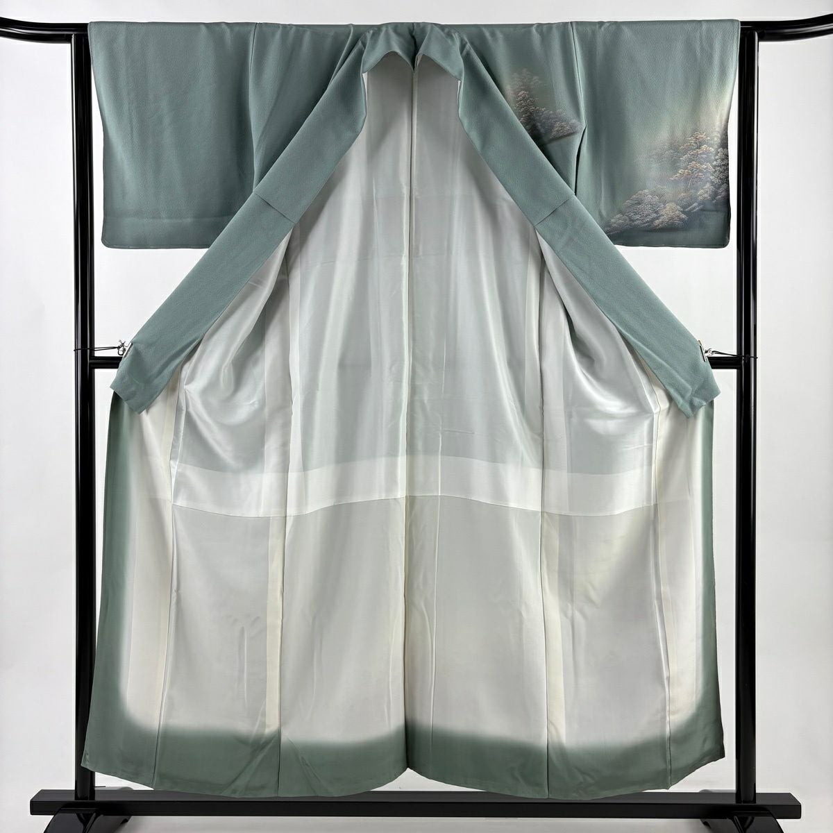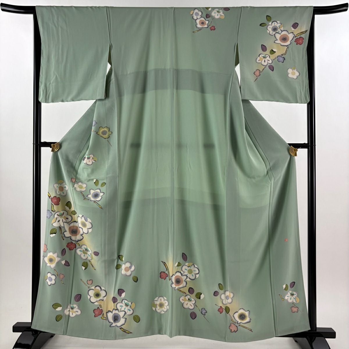 50%OFF 【美品】 訪問着 身丈154.5cm 裄丈65cm M 袷 草花 よもぎ色 正絹 秀品 一つ紋 K50