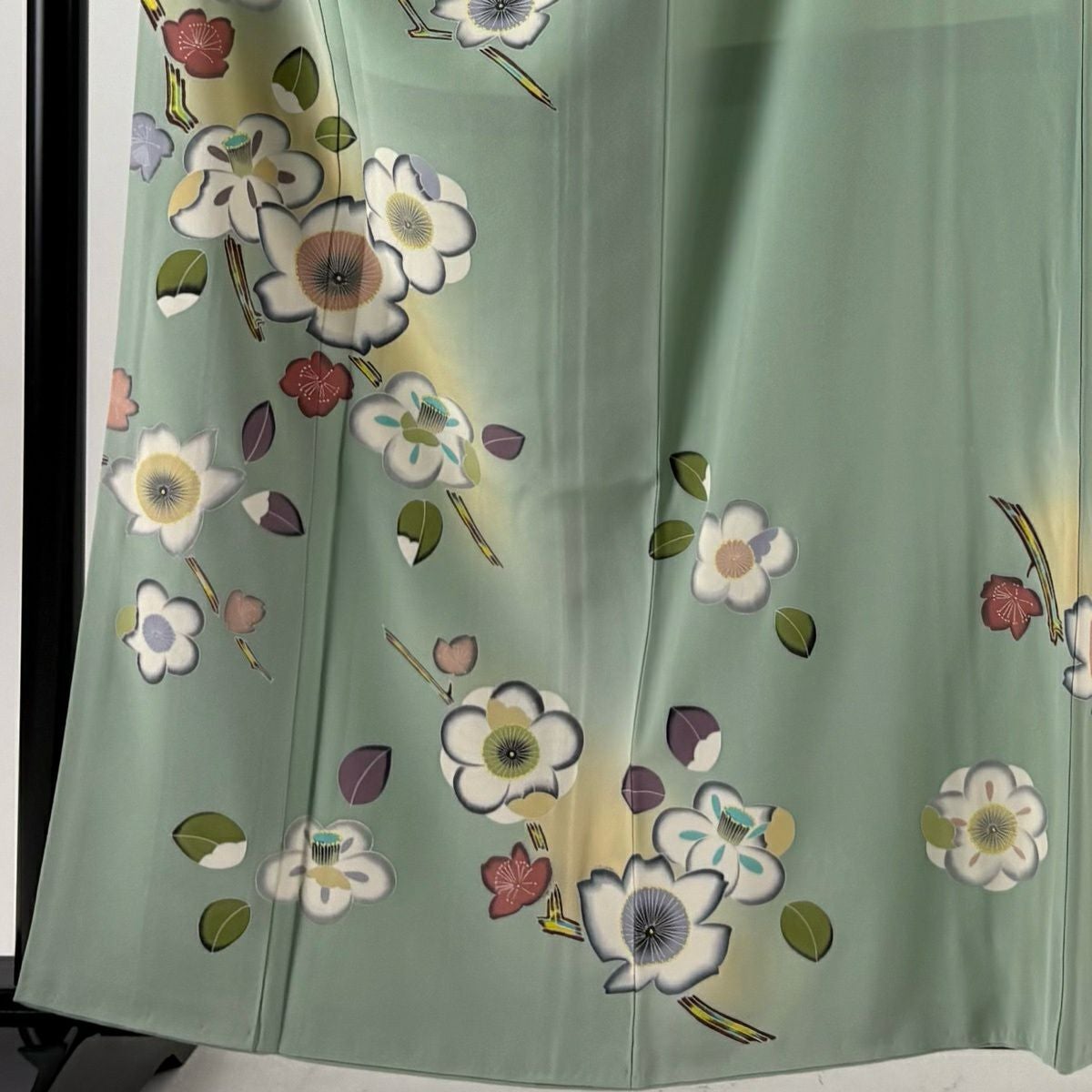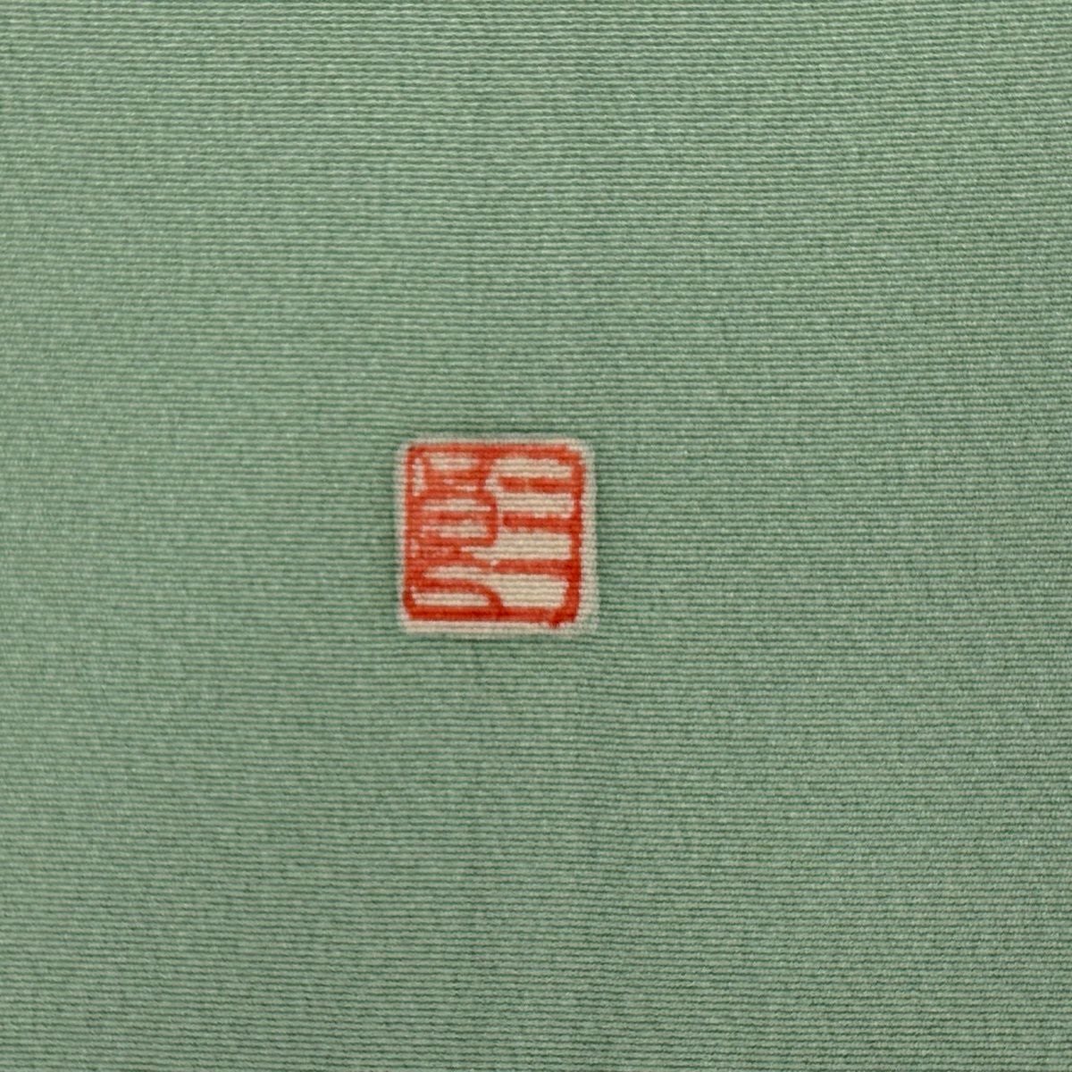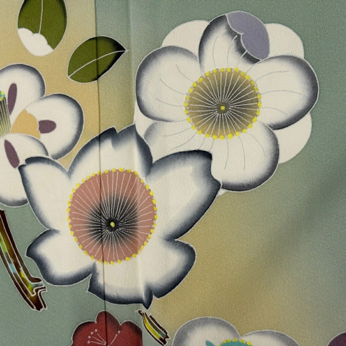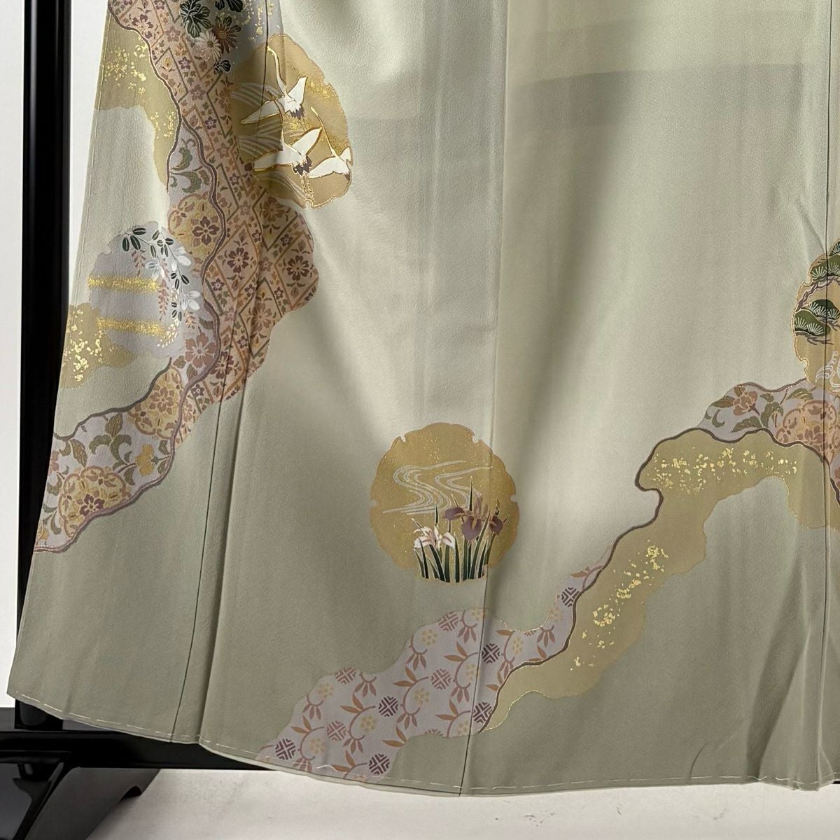 50%OFF 【美品】 訪問着 身丈154.5cm 裄丈65cm M 袷 草花 よもぎ色 正絹 秀品 一つ紋 K50