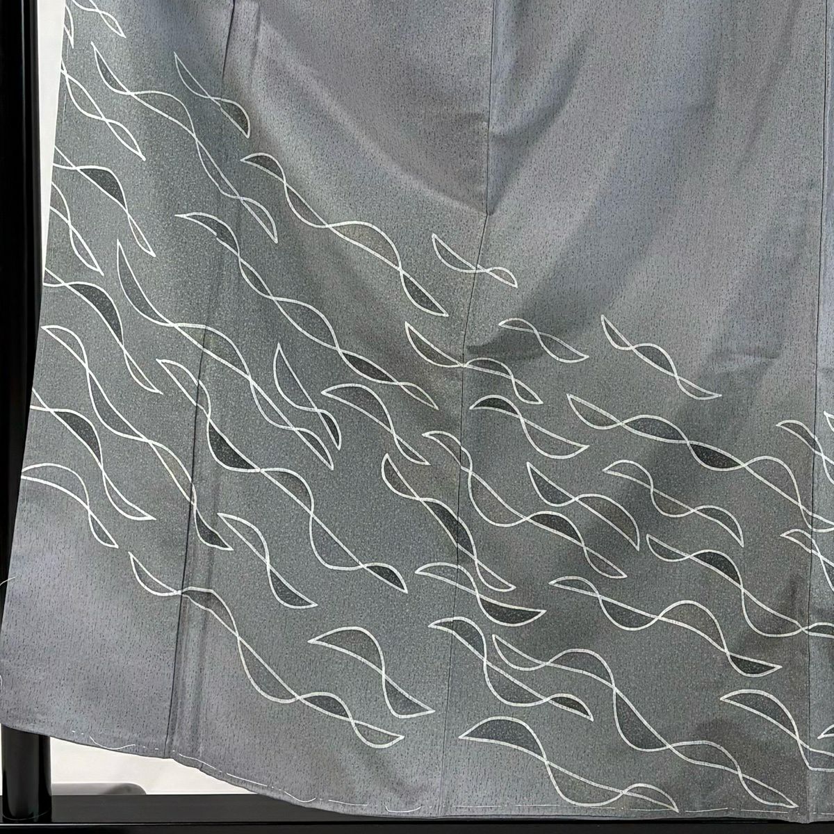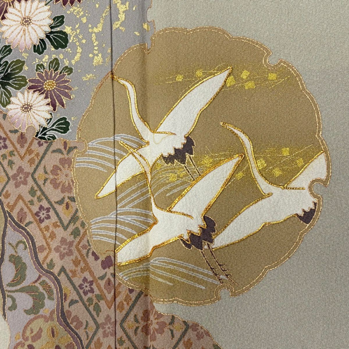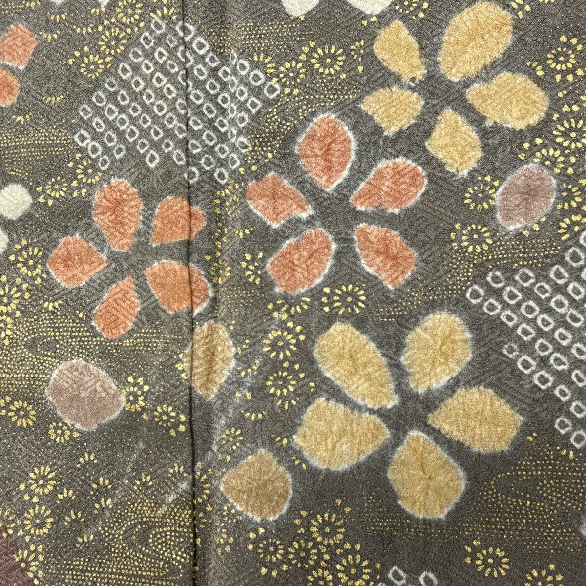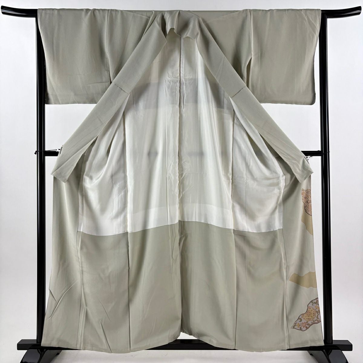 50%OFF 訪問着 身丈158cm 裄丈63cm S 袷 菊 霞 金彩 ぼかし 灰色 正絹 秀品 一つ紋 K50