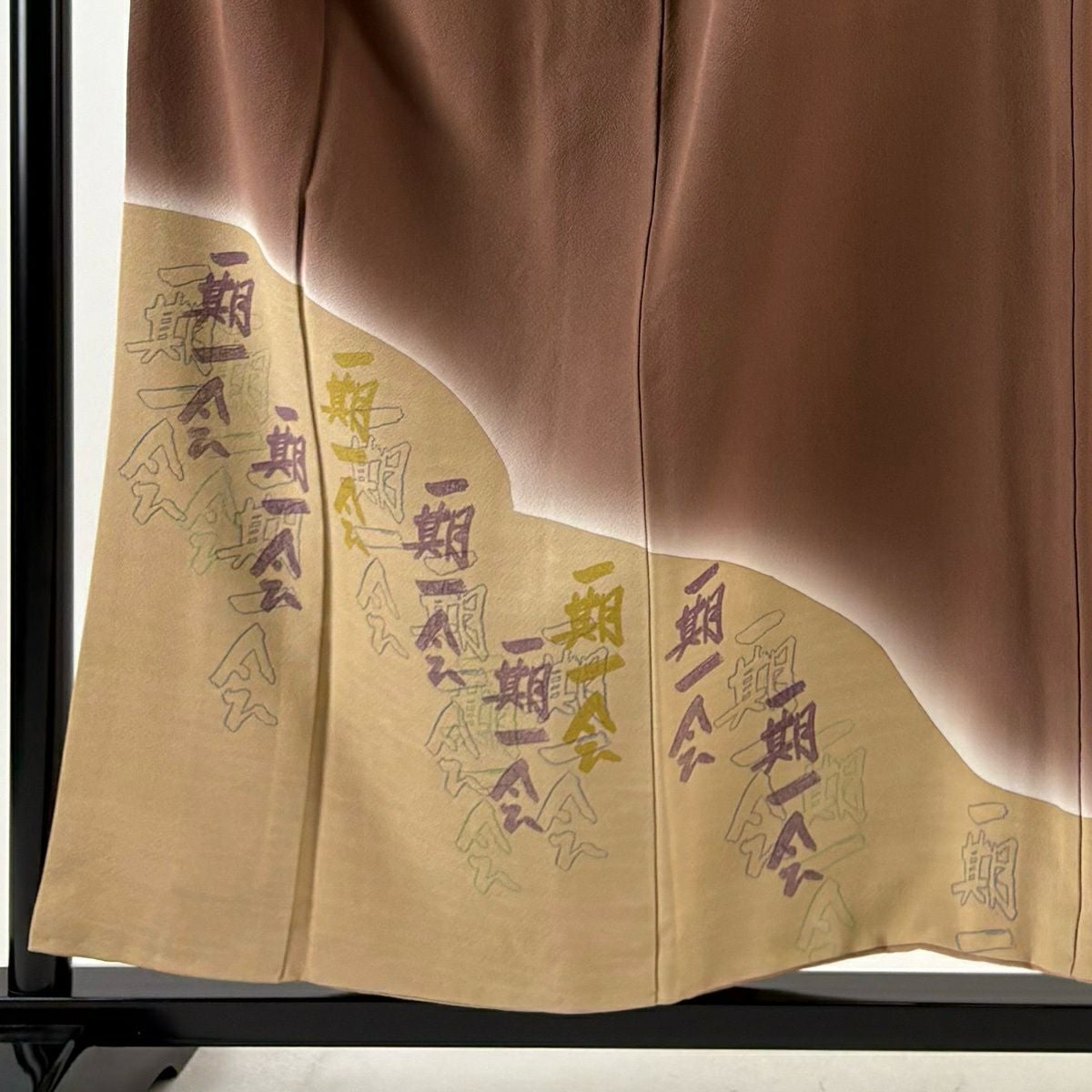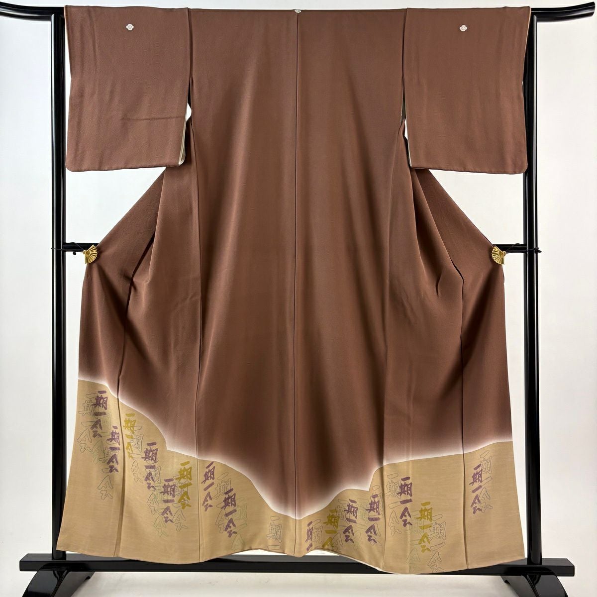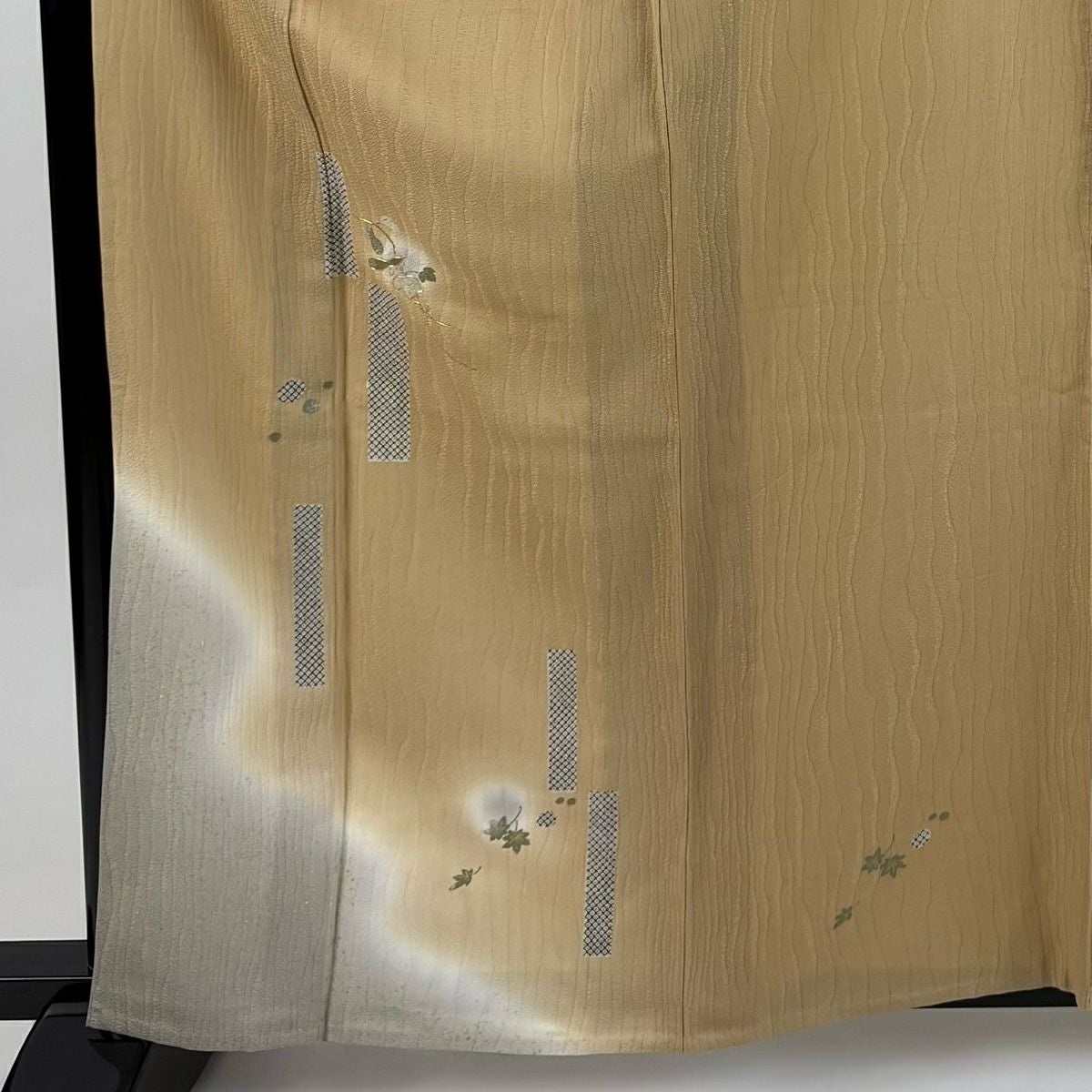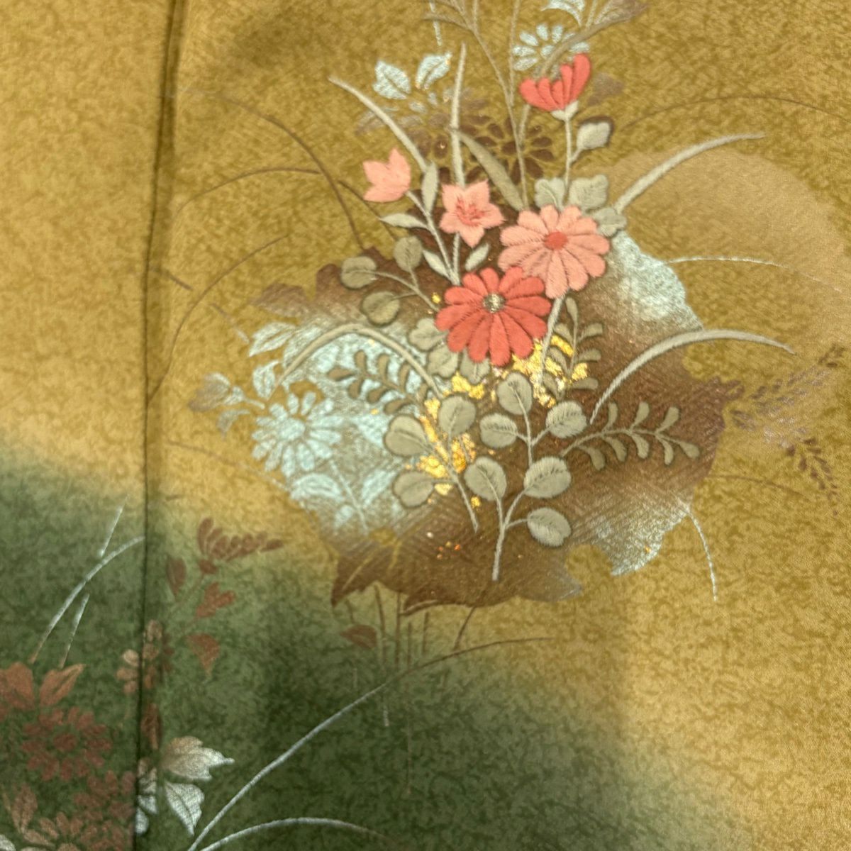 50%OFF 訪問着 身丈157.5cm 裄丈63.5cm S 袷 落款あり 枝花 ぼかし 黄土色 正絹 秀品 K50
