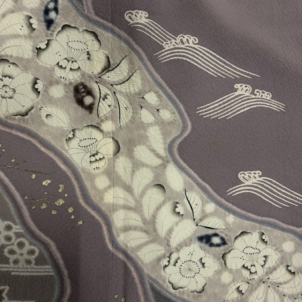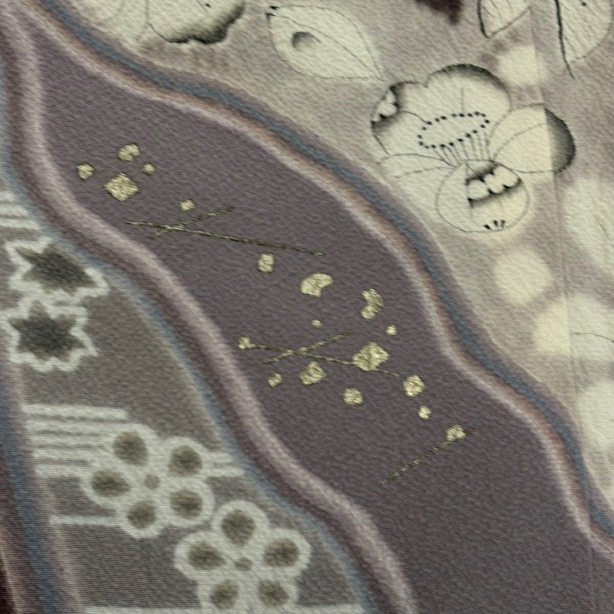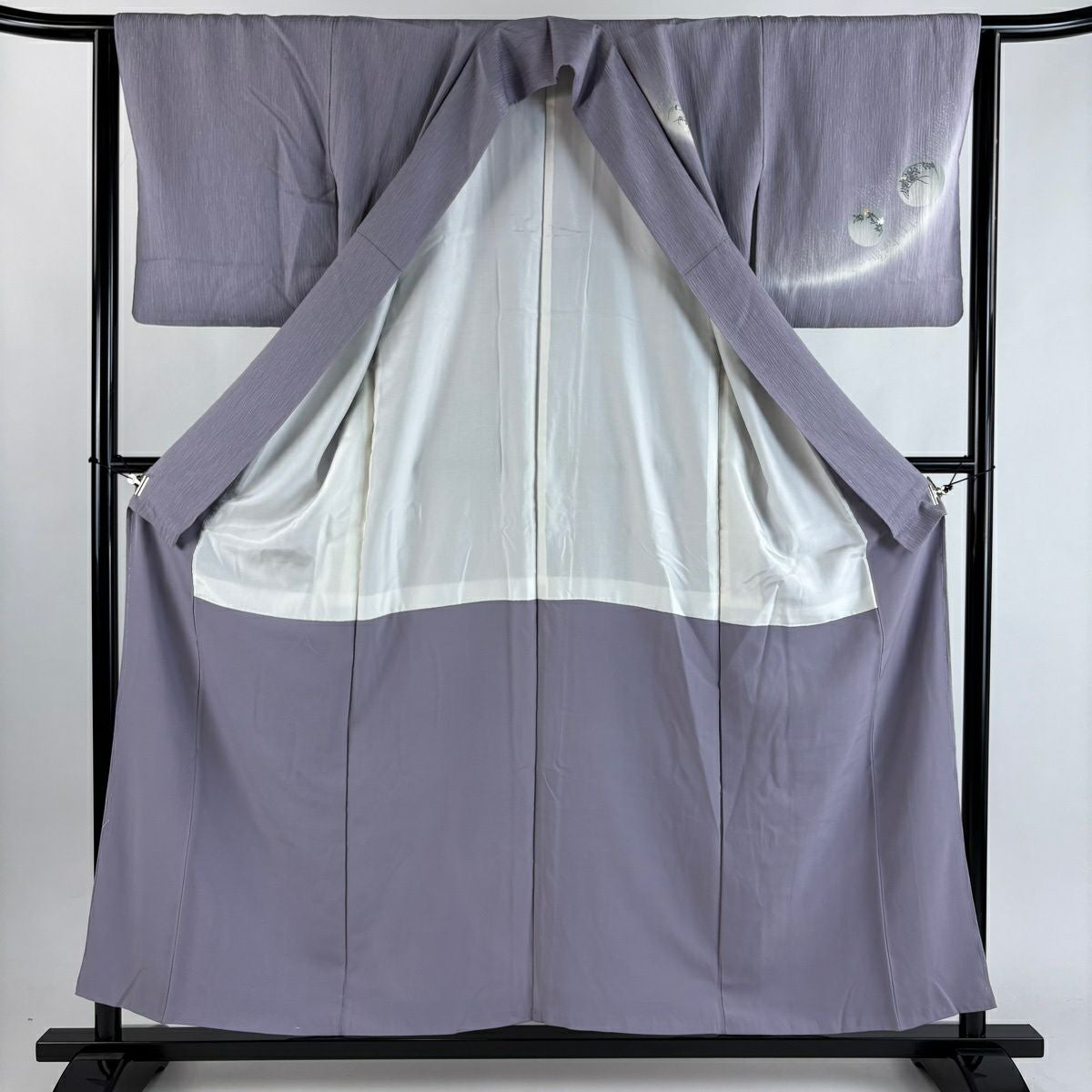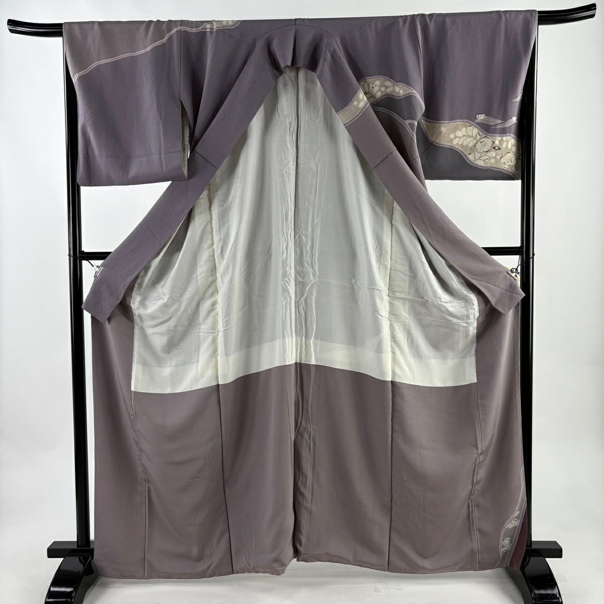 50%OFF 訪問着 身丈159.5cm 裄丈65.5cm M 袷 雪輪 松 金銀彩 ぼかし 灰紫 正絹 秀品 K50