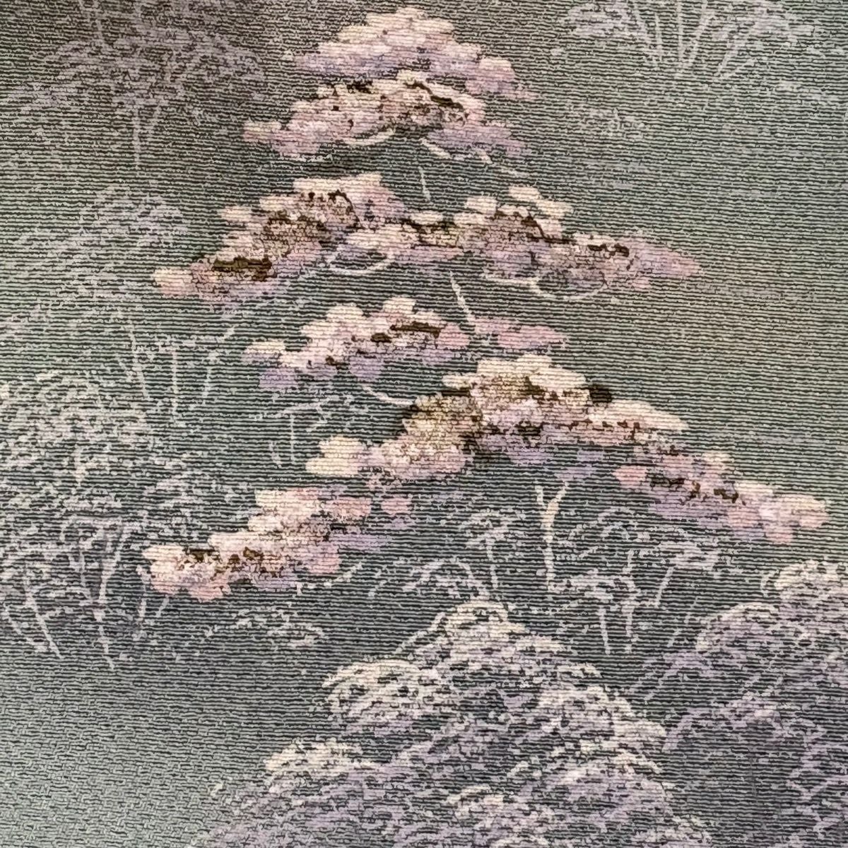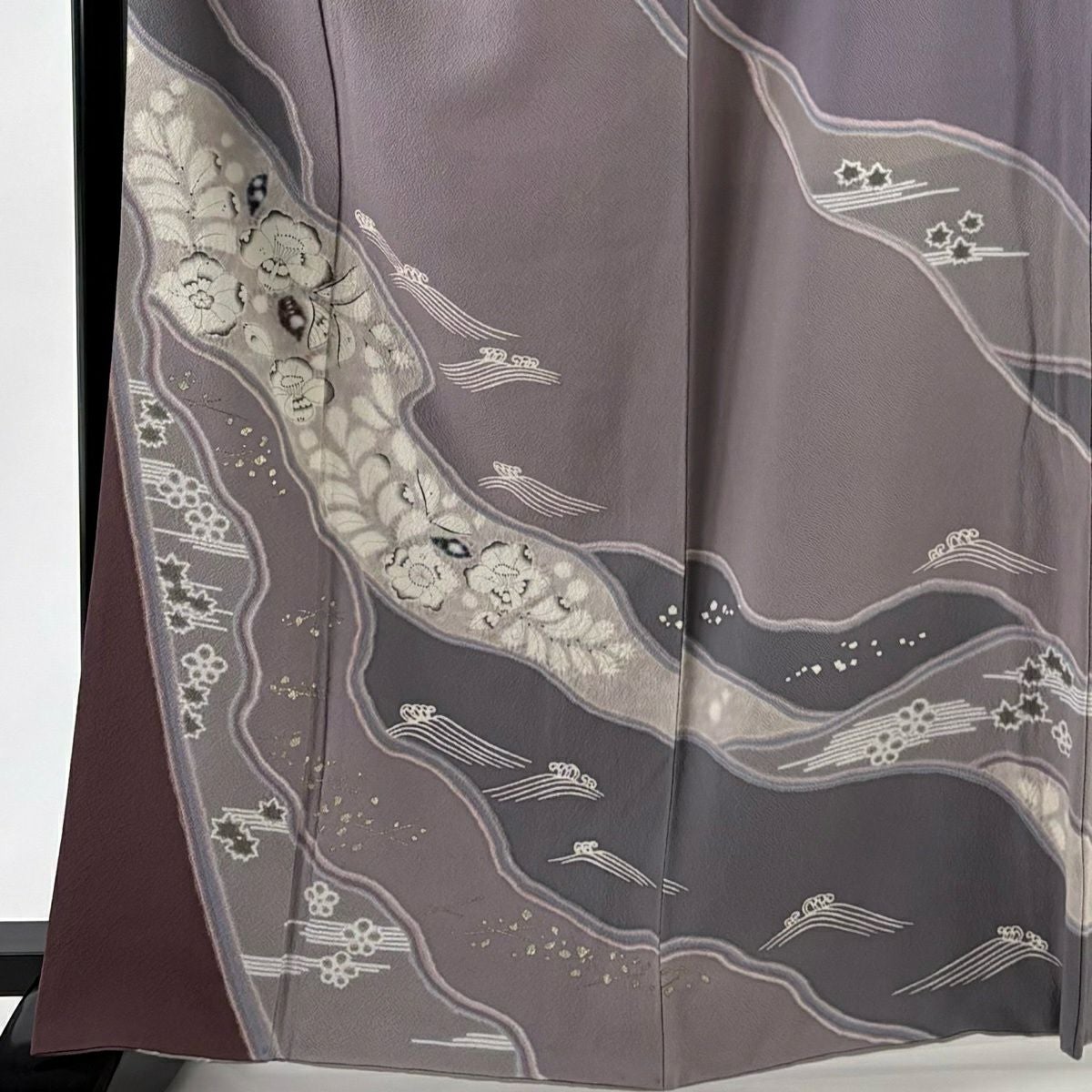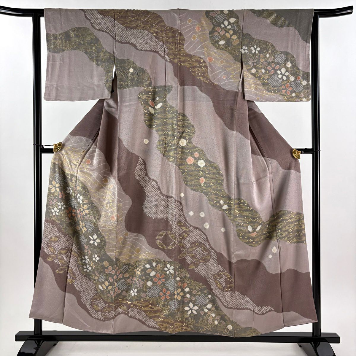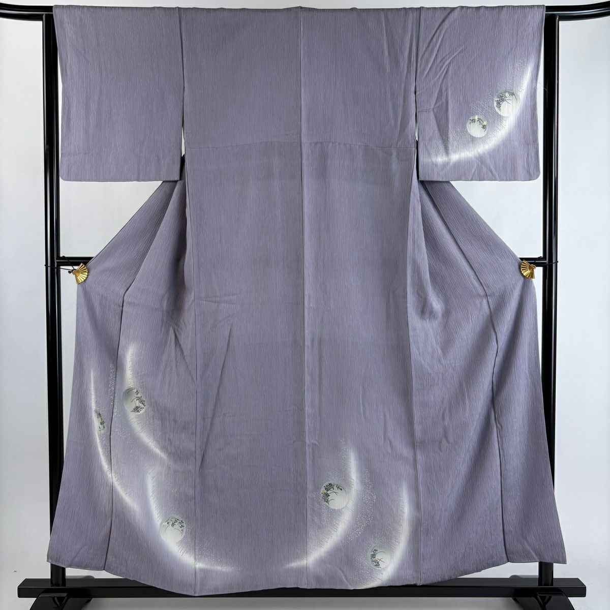50%OFF 訪問着 身丈159.5cm 裄丈65.5cm M 袷 雪輪 松 金銀彩 ぼかし 灰紫 正絹 秀品 K50