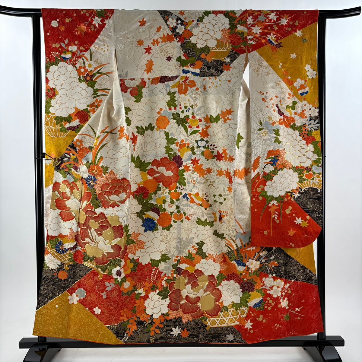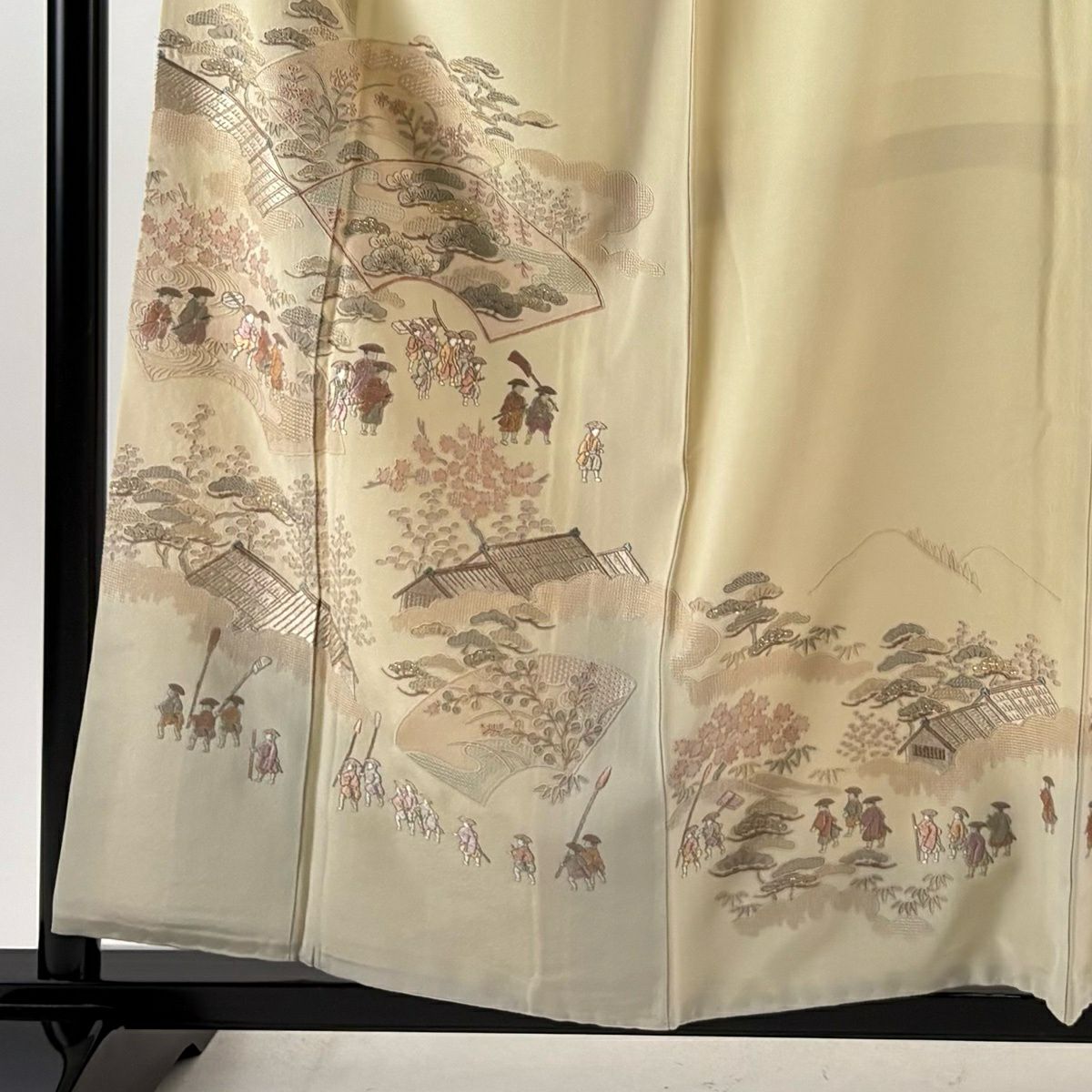 50%OFF 付下げ 身丈156cm 裄丈64.5cm M 袷 短冊 椿 刺繍 金糸 クリーム 正絹 秀品 K50
