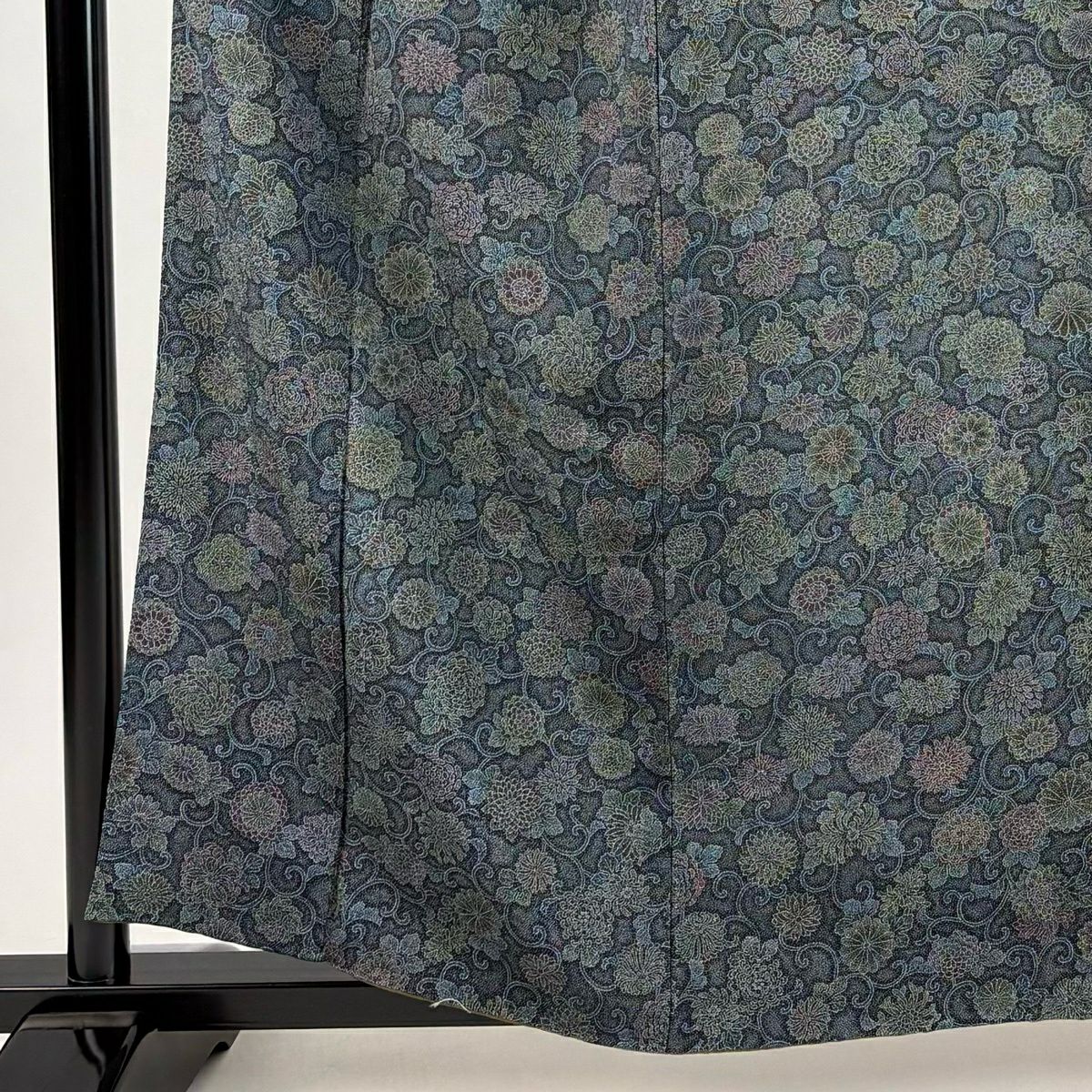 50%OFF 【美品】 小紋 身丈162cm 裄丈66.5cm M 袷 草花 縮緬 絞り 青緑 正絹 秀品 K50
