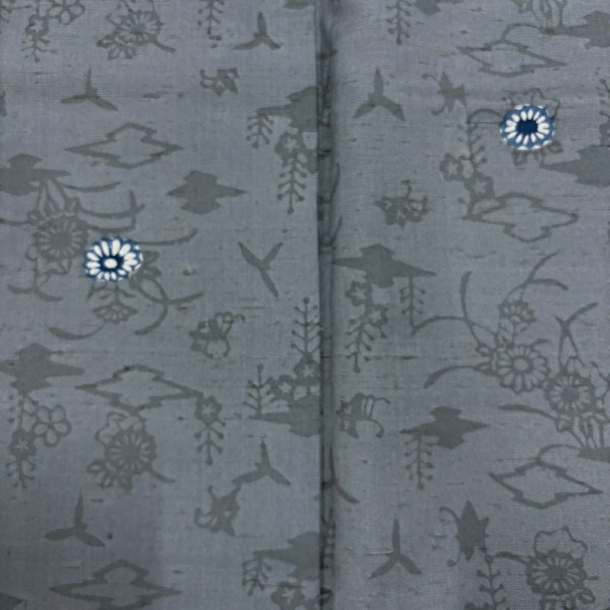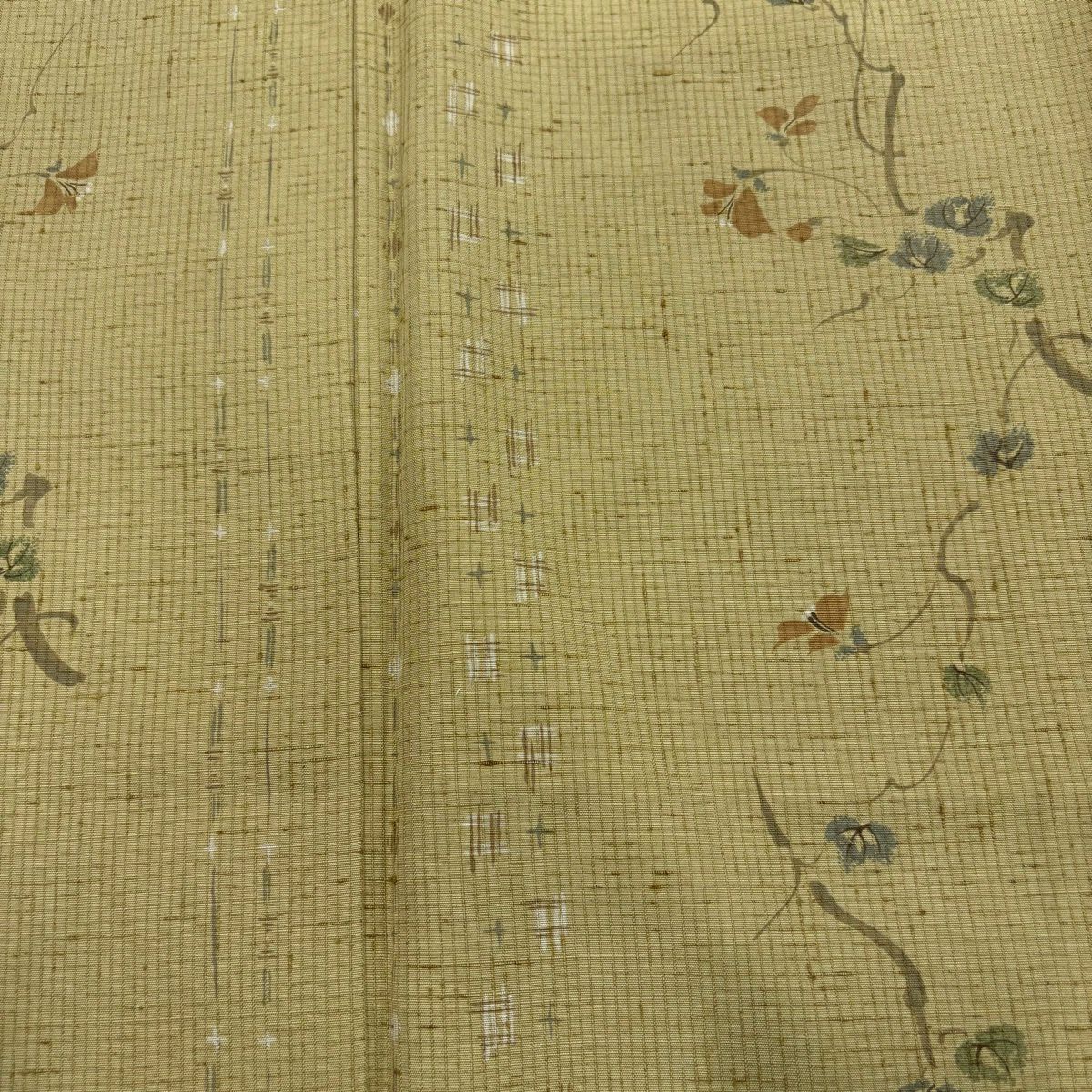 50%OFF 【美品】 紬 身丈159cm 裄丈67.5cm L 袷 背抜き 草花 短冊 灰茶 正絹 秀品 K50