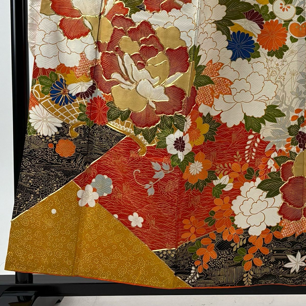 50%OFF 【美品】 振袖 身丈159.5cm 裄丈65.5cm M 袷 手鞠 桜 箔 金彩 黒 正絹 秀品 K50