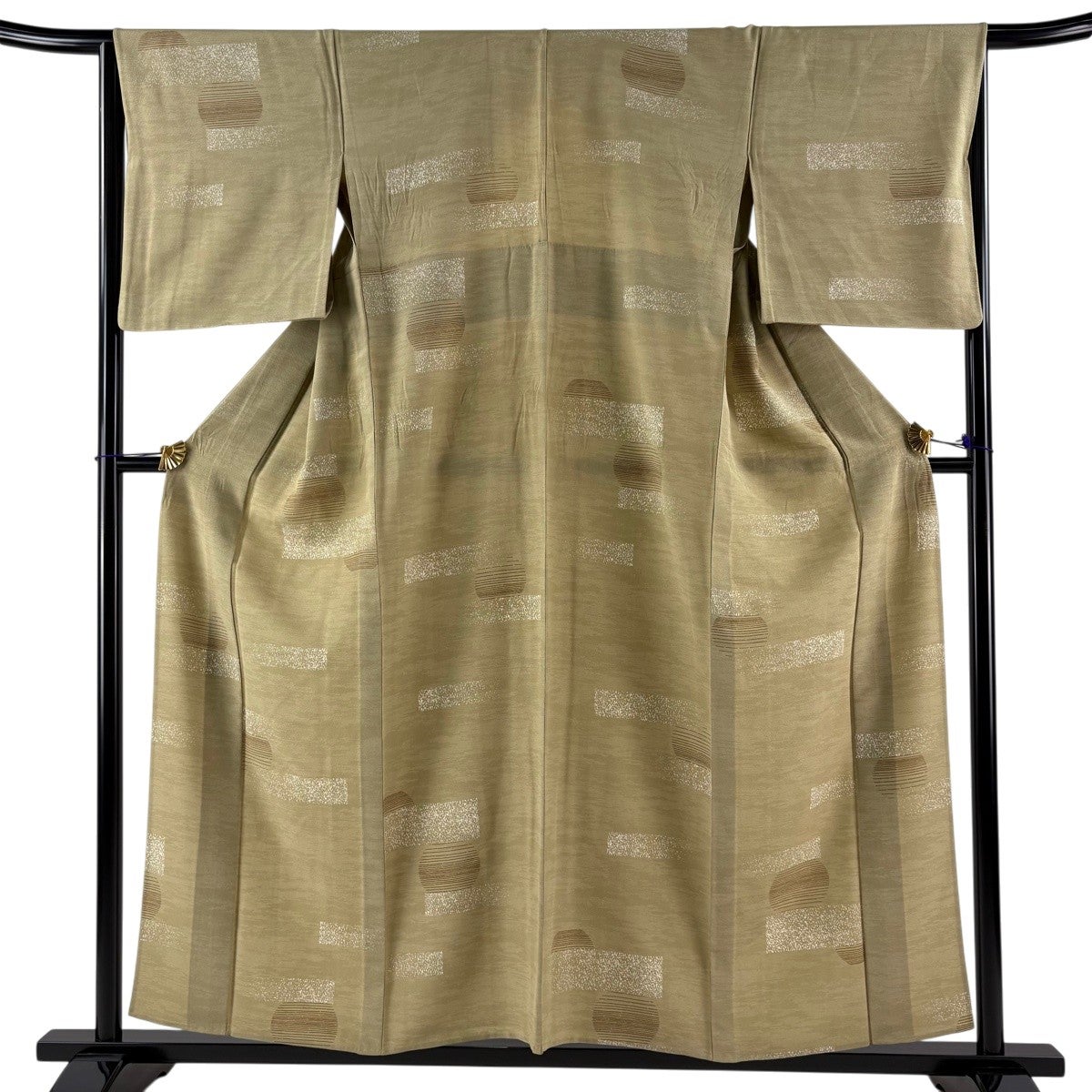 訪問着 身丈163cm 裄丈61cm S 袷 鈴乃屋 雪輪 鼓 金彩 山吹茶色 正絹 秀品
