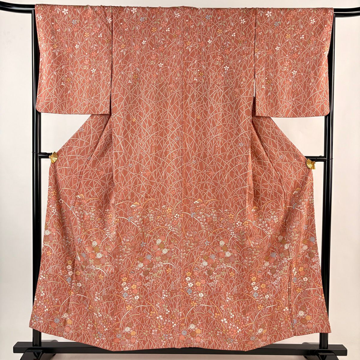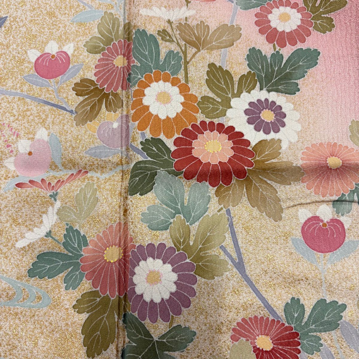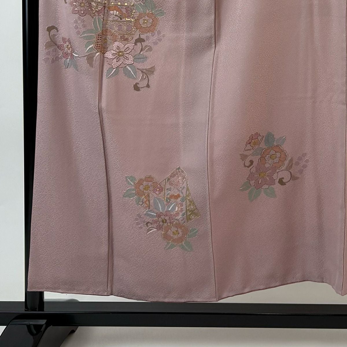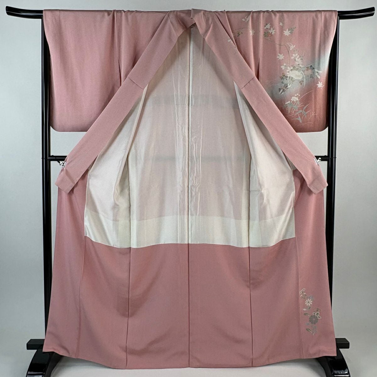 70%OFF 付下げ 身丈155cm 裄丈66.5cm M 袷 秋草 金彩 ピンクベージュ 正絹 秀品 K70