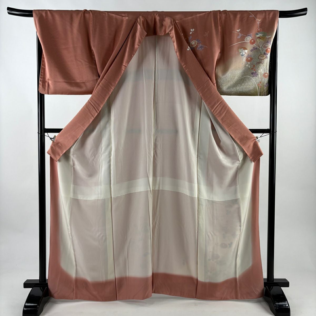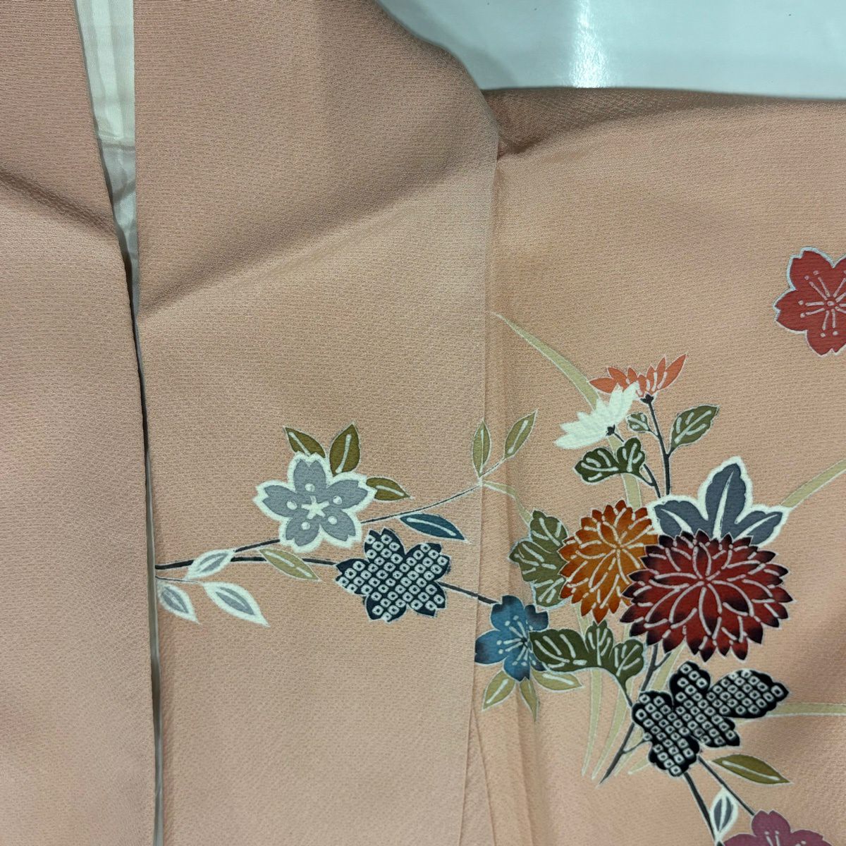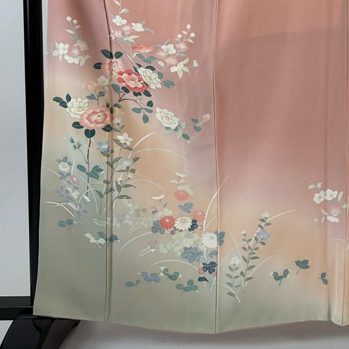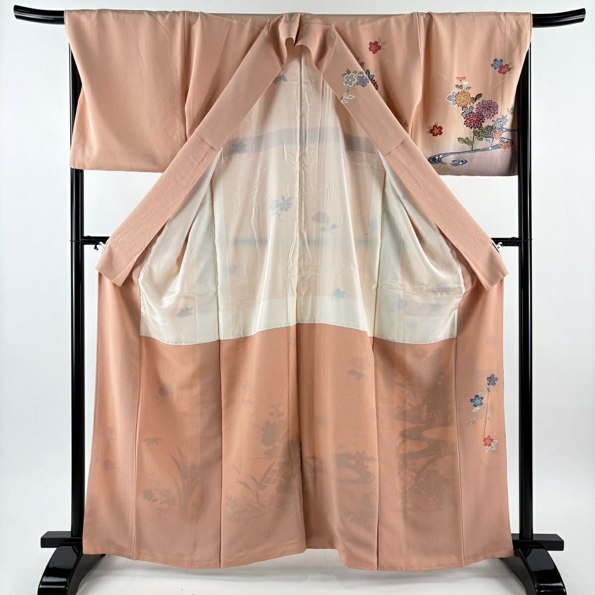 70%OFF 付下げ 身丈155cm 裄丈66.5cm M 袷 秋草 金彩 ピンクベージュ 正絹 秀品 K70