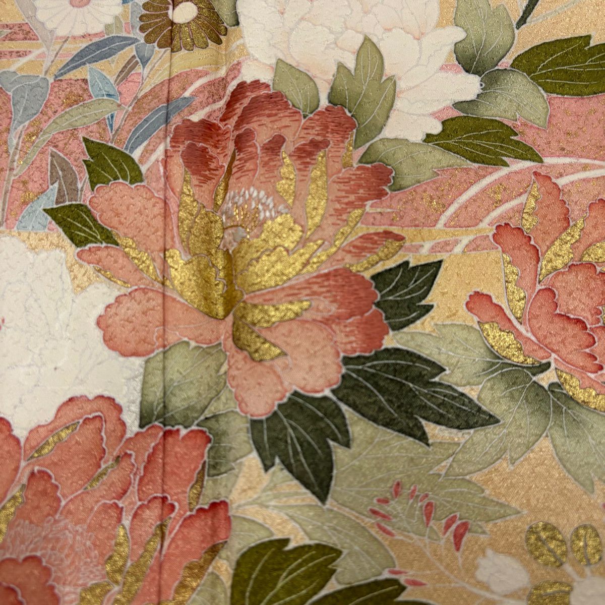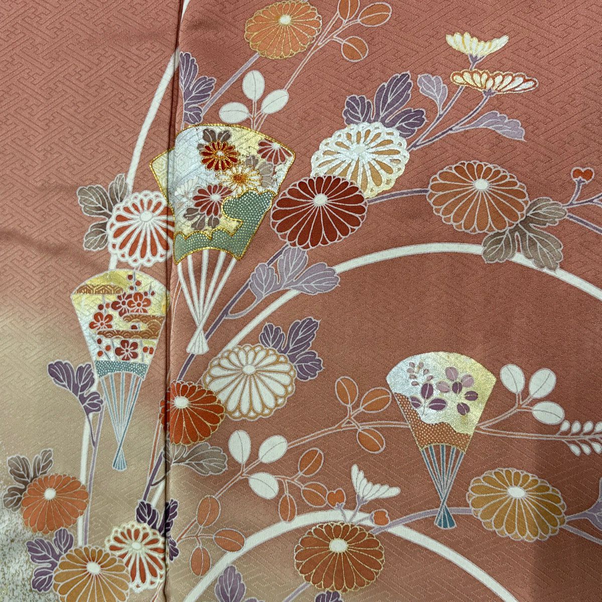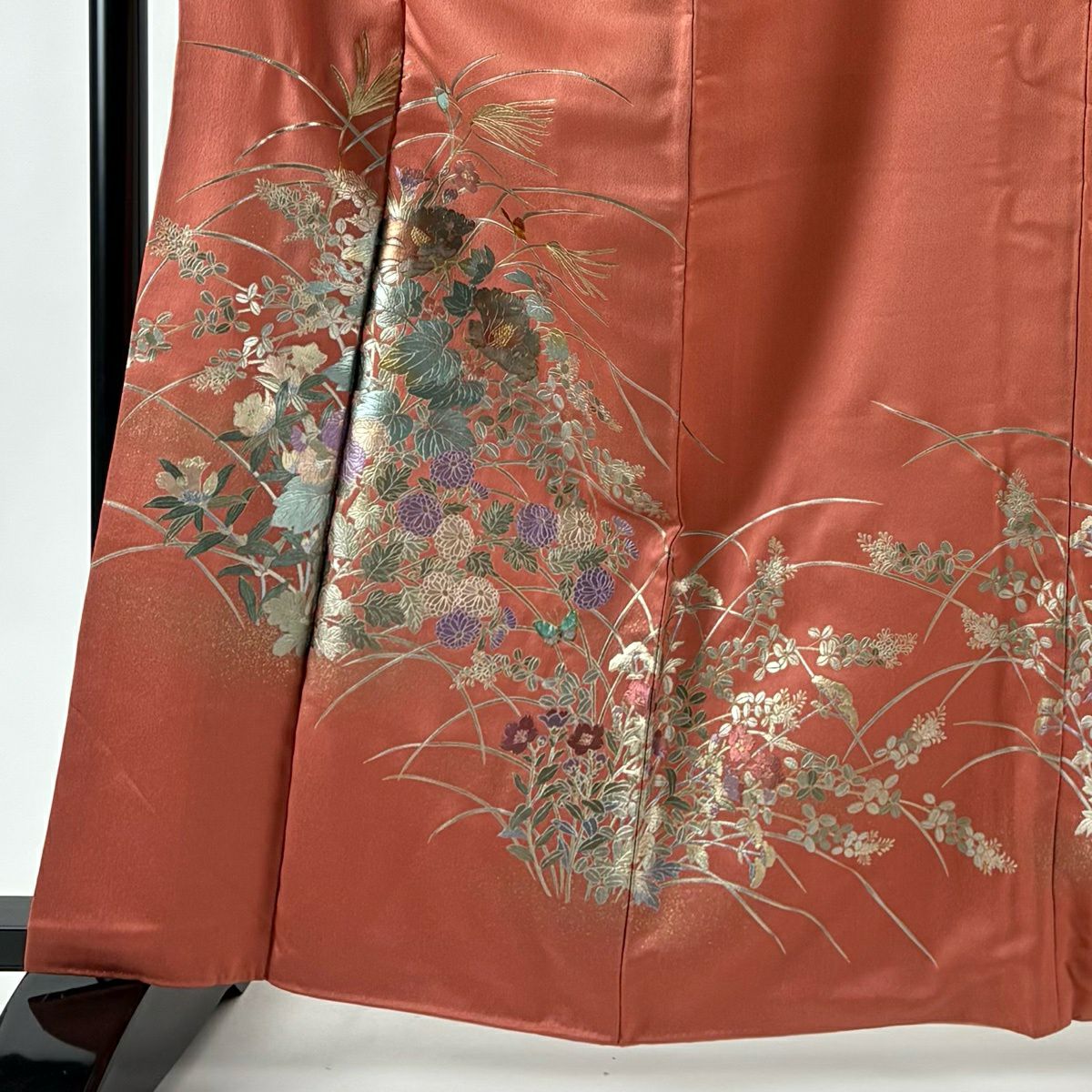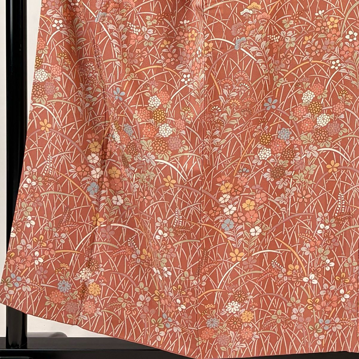 70%OFF 付下げ 身丈155cm 裄丈66.5cm M 袷 秋草 金彩 ピンクベージュ 正絹 秀品 K70