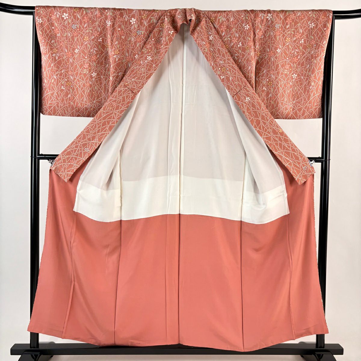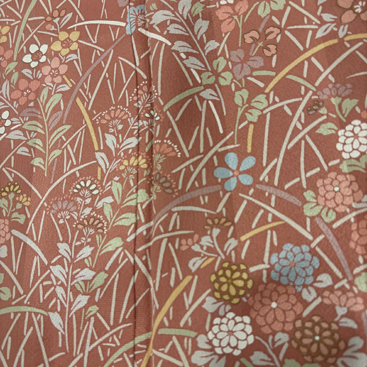 70%OFF 【美品】 付下げ 身丈158cm 裄丈62.5cm S 袷 松川菱 草花 薄小豆 正絹 秀品 K70