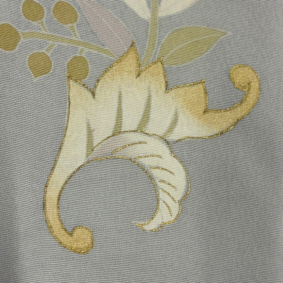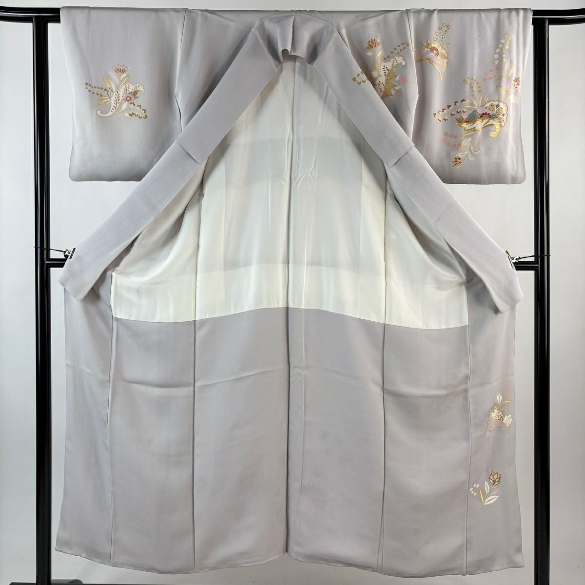 70%OFF 訪問着 身丈151cm 裄丈61.5cm S 袷 落款あり 草花 金糸 金彩 灰紫 正絹 秀品 K70