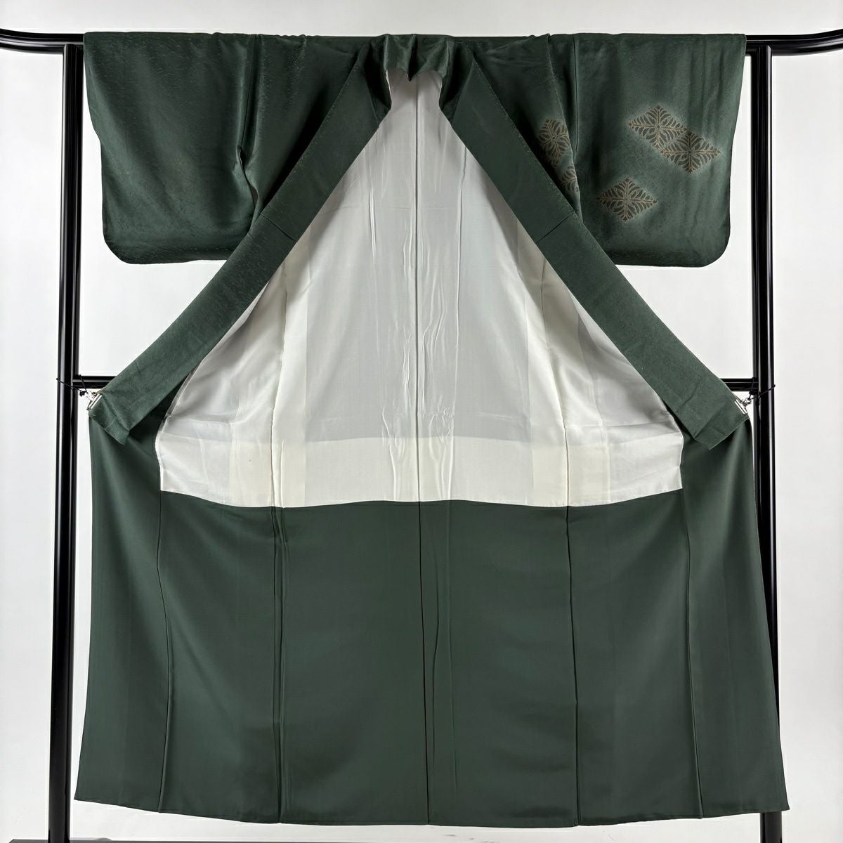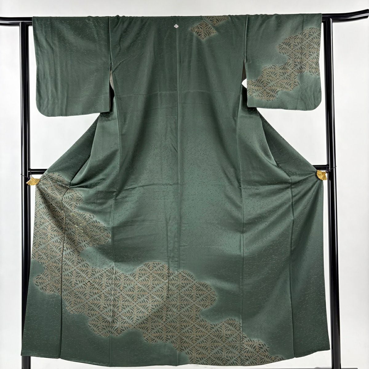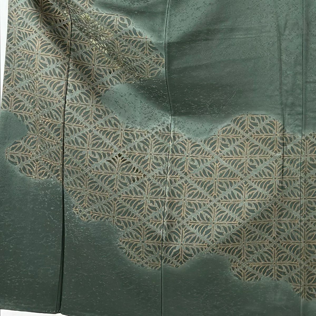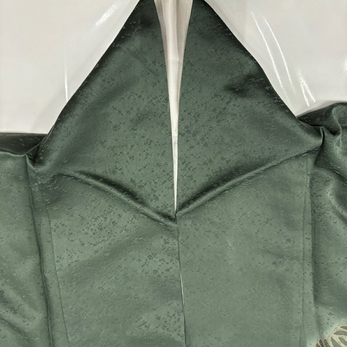 70%OFF 付下げ 身丈154cm 裄丈63cm S 袷 若松 霞 刺繍 金彩 深緑 正絹 秀品 一つ紋 K70