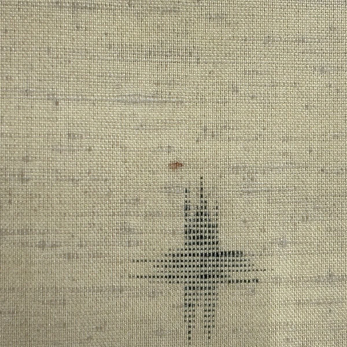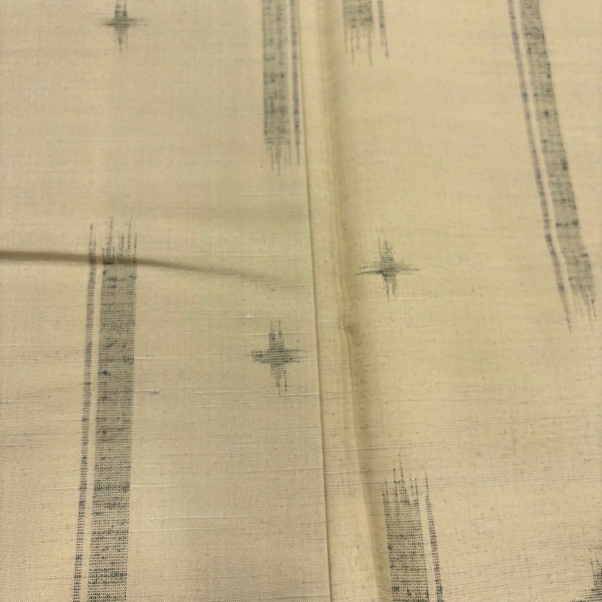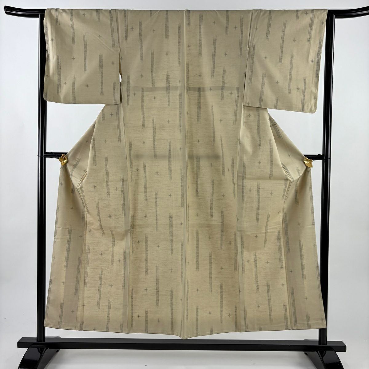 70%OFF 【美品】 紬 身丈155.5cm 裄丈63.5cm S 袷 十字絣 縞 ベージュ 化繊 秀品 K70