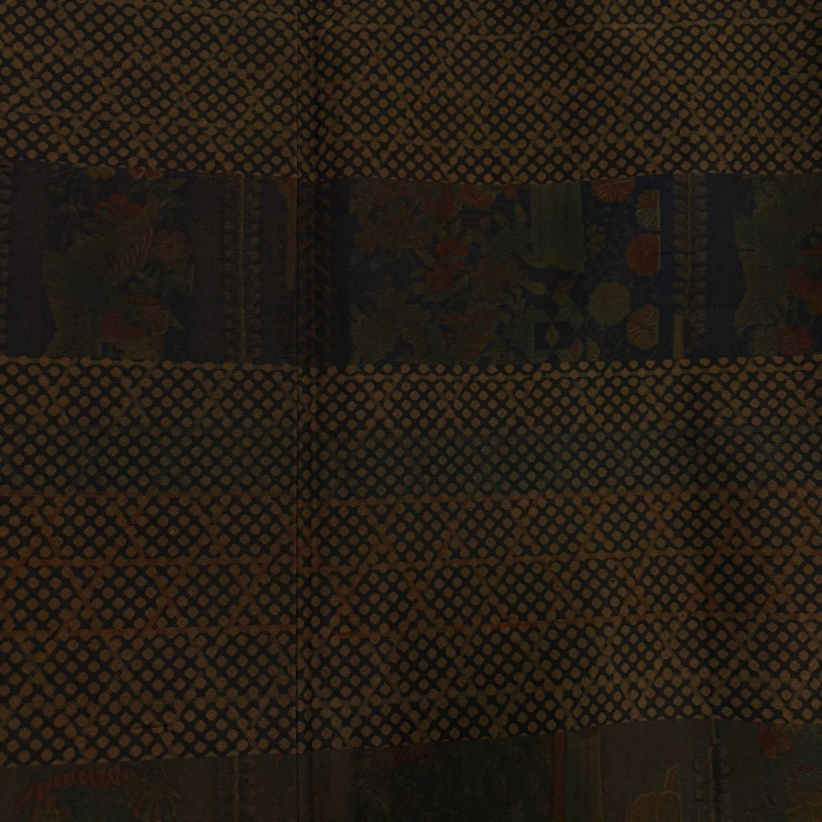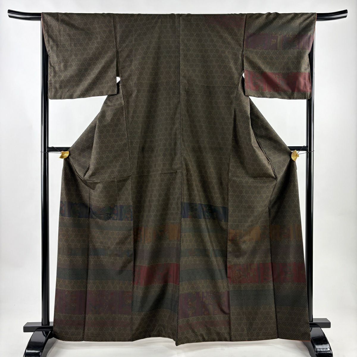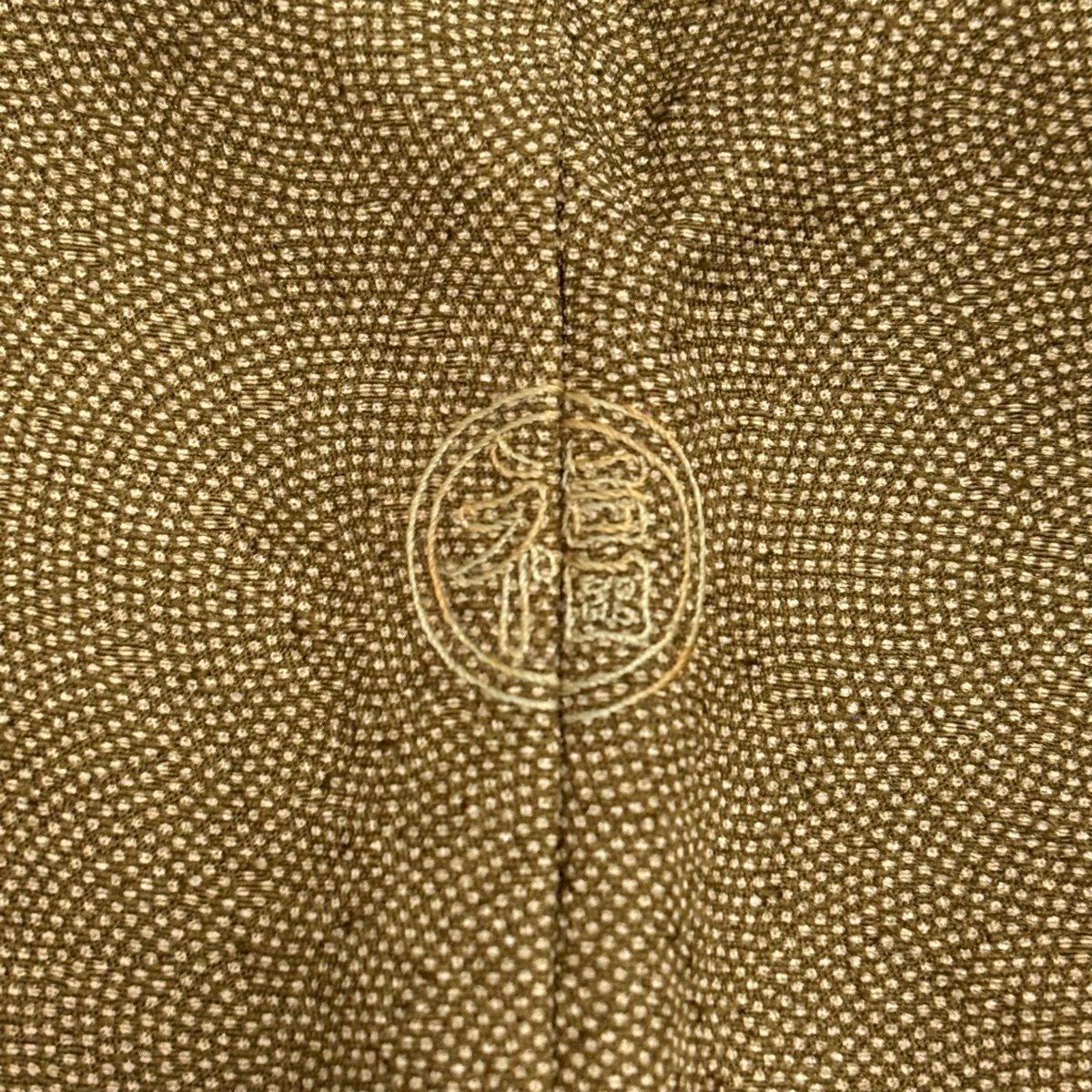 70%OFF 江戸小紋 身丈157.5cm 裄丈66cm M 袷 落款あり 鮫 茶緑色 正絹 秀品 一つ紋 K70