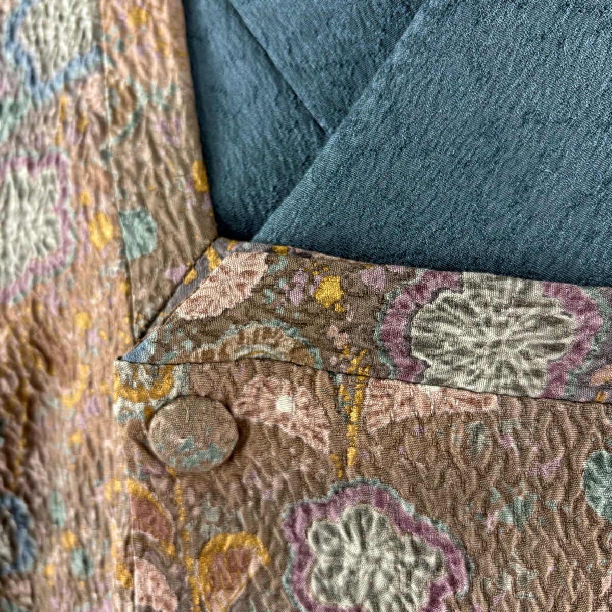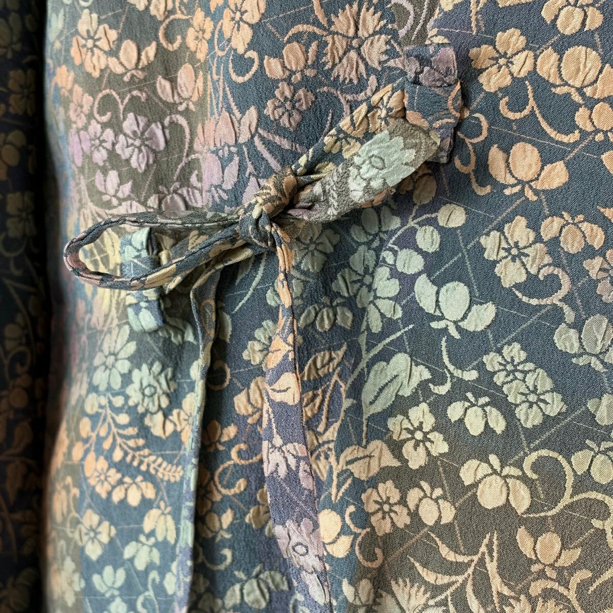 70%OFF 【美品】 道中着 身丈95cm 裄丈66cm M 和装コート 江戸小紋柄 茶緑色 正絹 秀品 K70