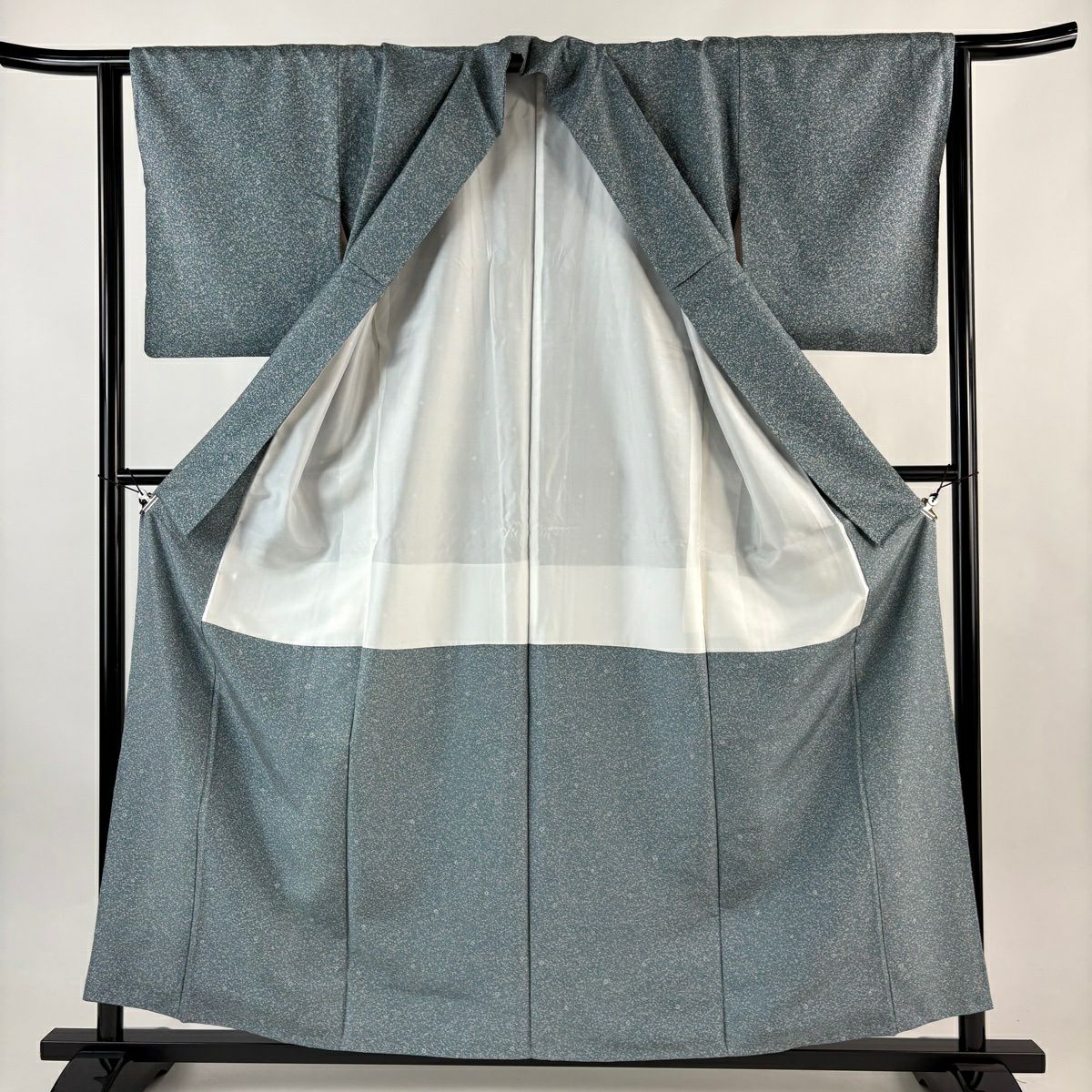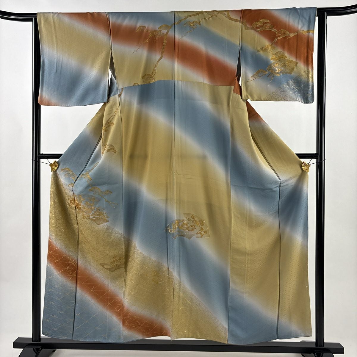 70%OFF 訪問着 身丈156.5cm 裄丈63cm S 袷 扇面 笠松 金銀彩 金糸 青灰色 正絹 秀品 K70