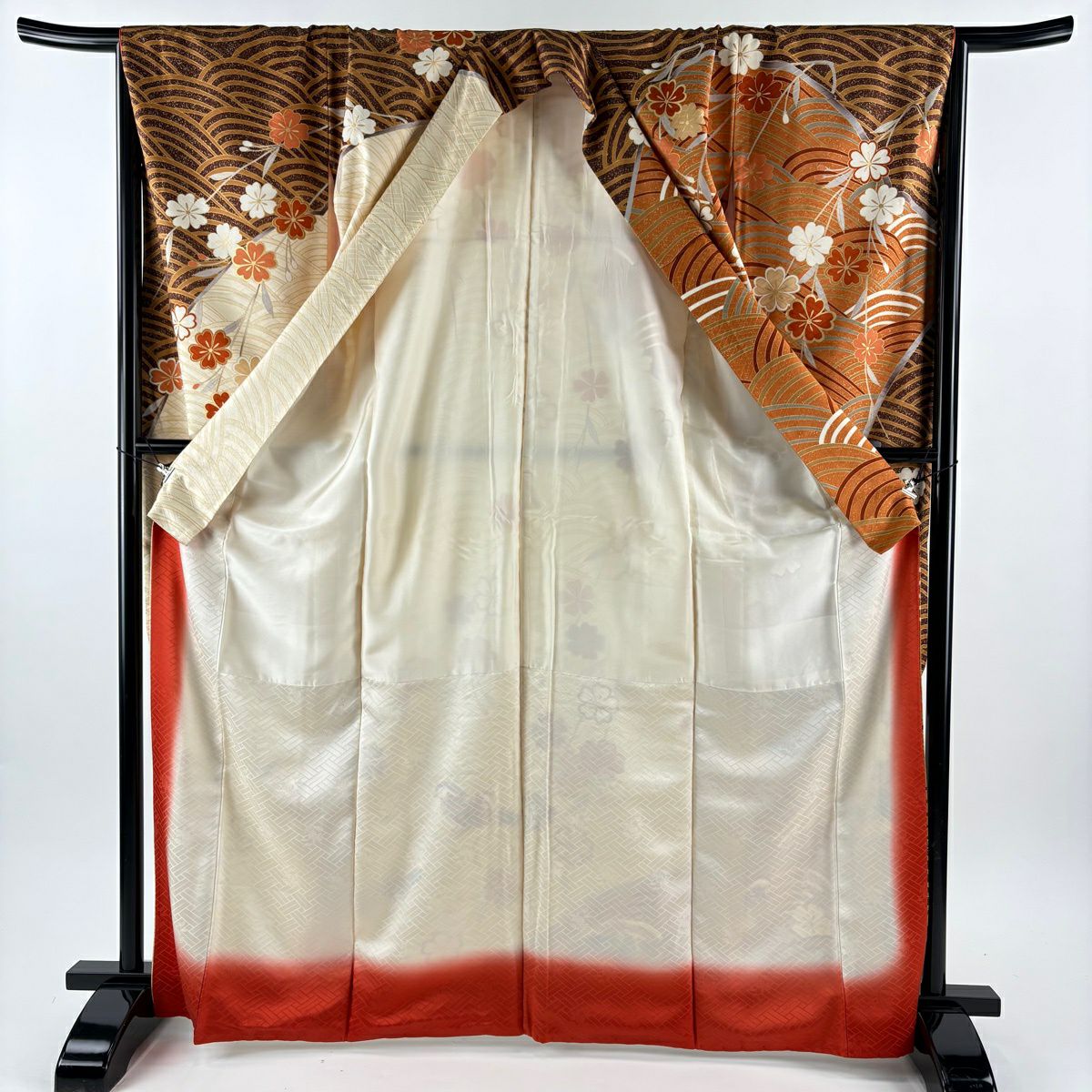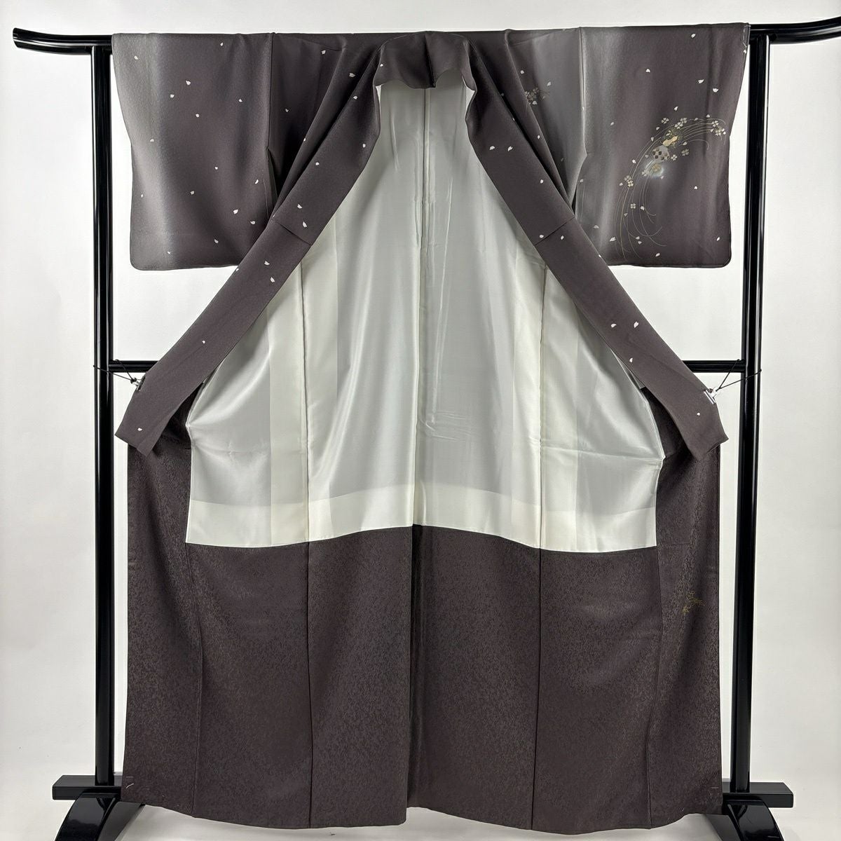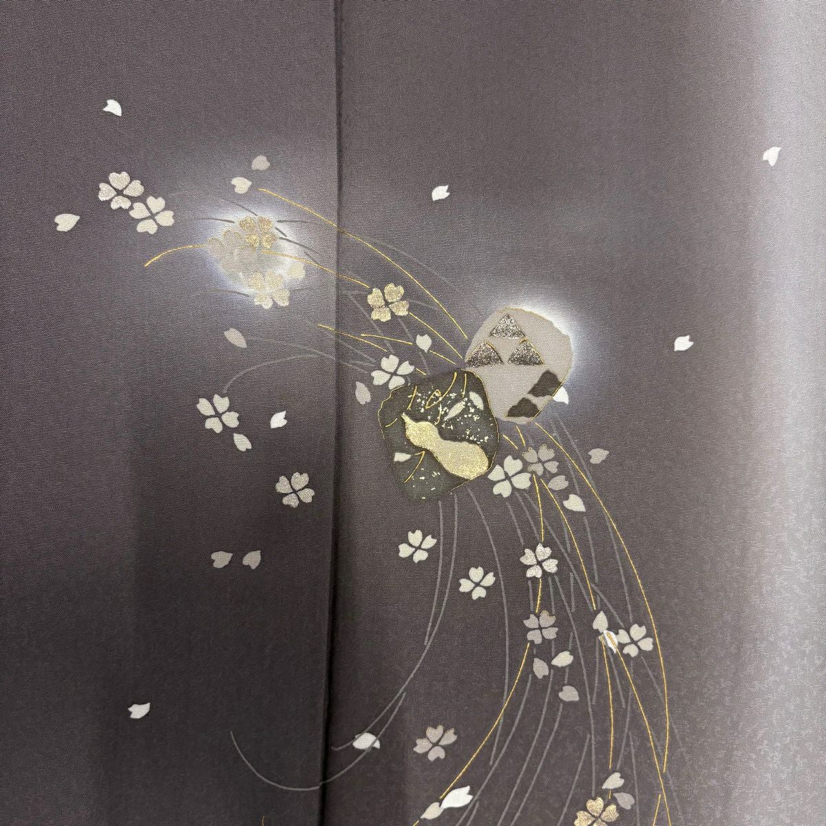 70%OFF 付下げ 身丈164cm 裄丈62.5cm S 袷 桜 瓢箪 金銀彩 ぼかし 灰茶 正絹 秀品 K70
