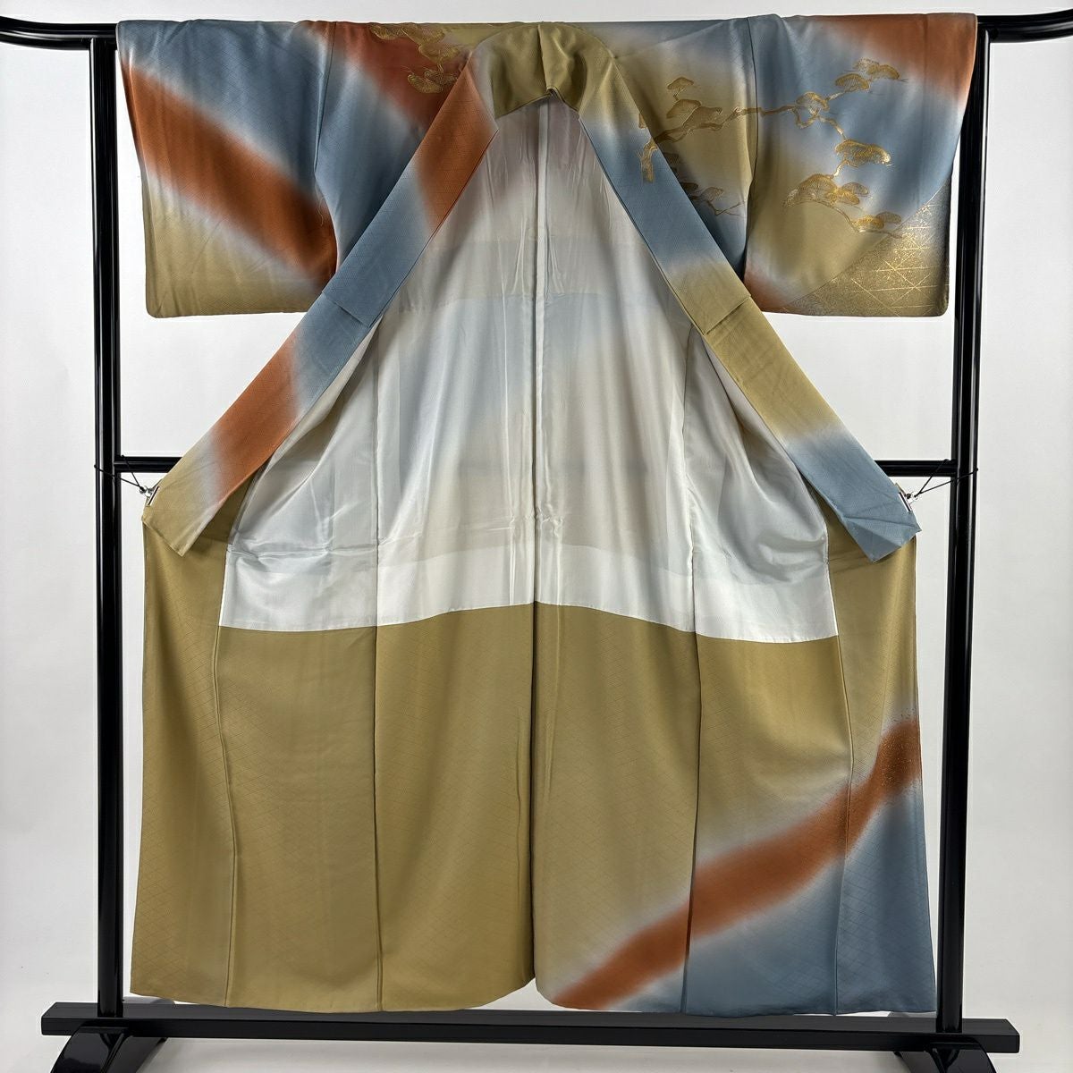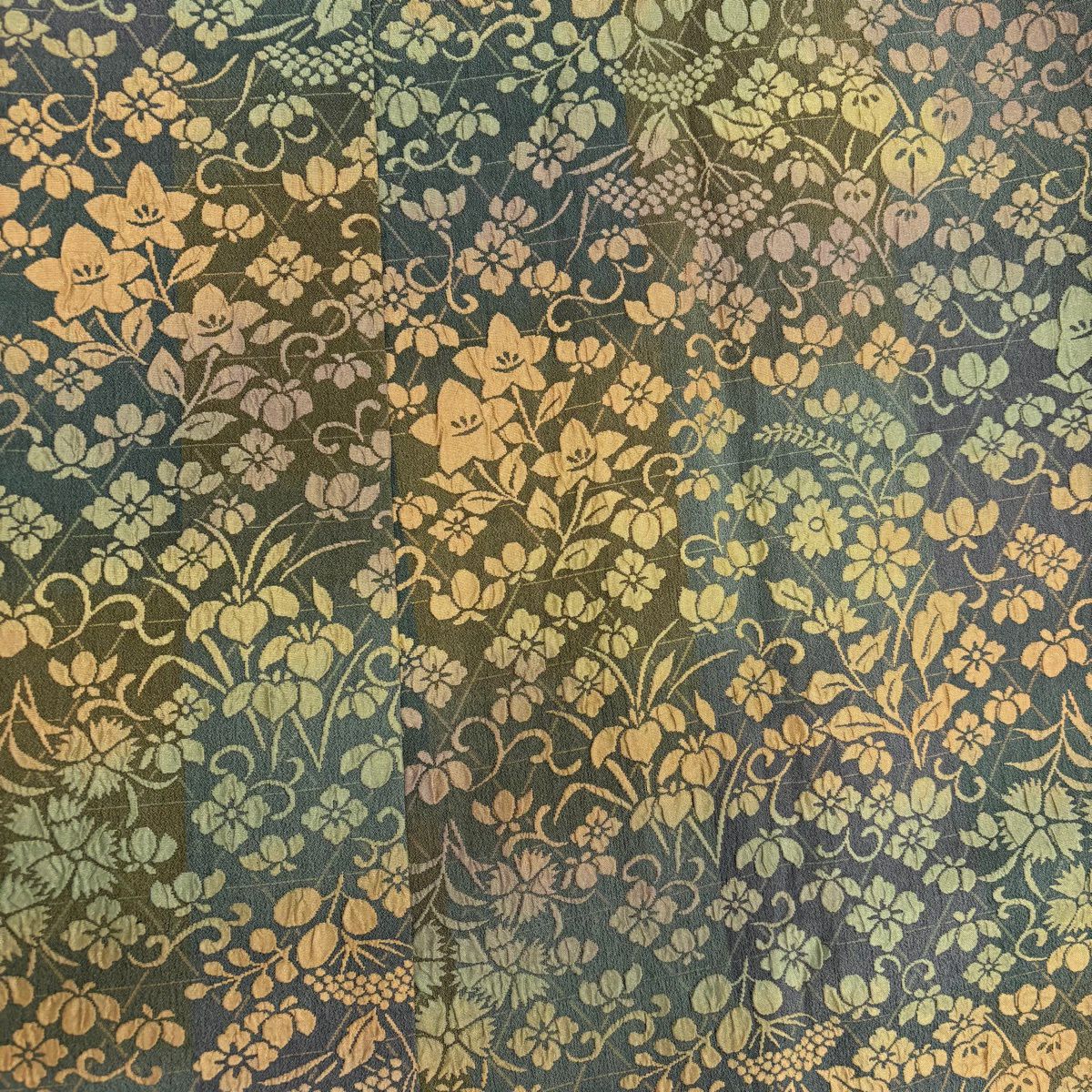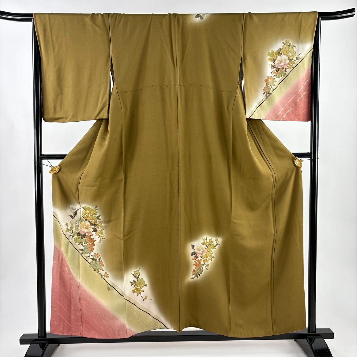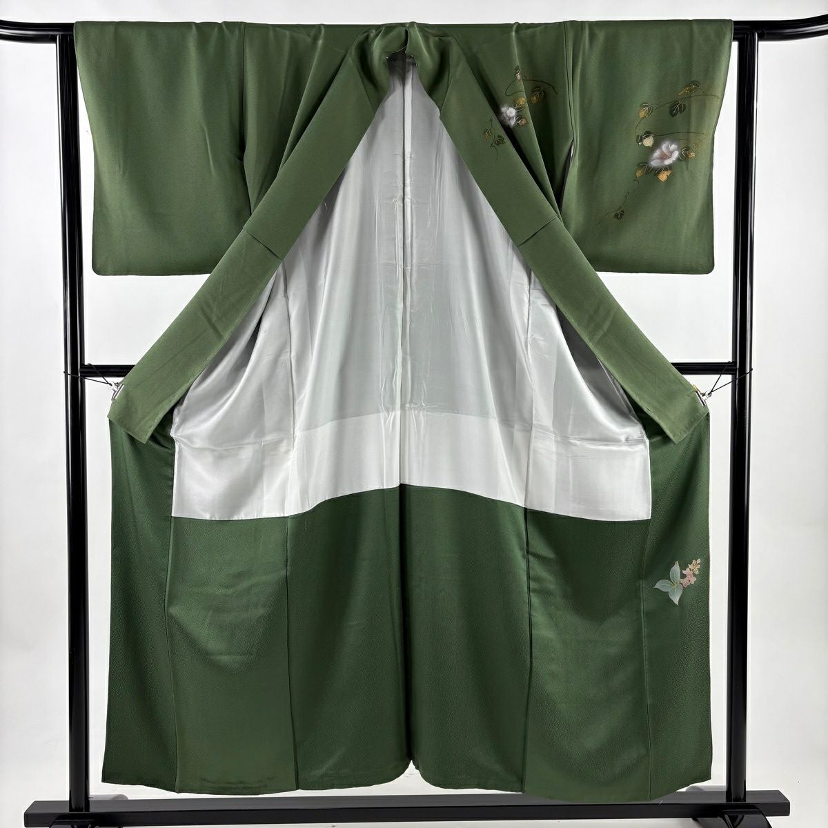 70%OFF 付下げ 身丈157cm 裄丈66cm M 袷 枝花 斜縞 金銀彩 染め分け 鶯色 正絹 秀品 K70