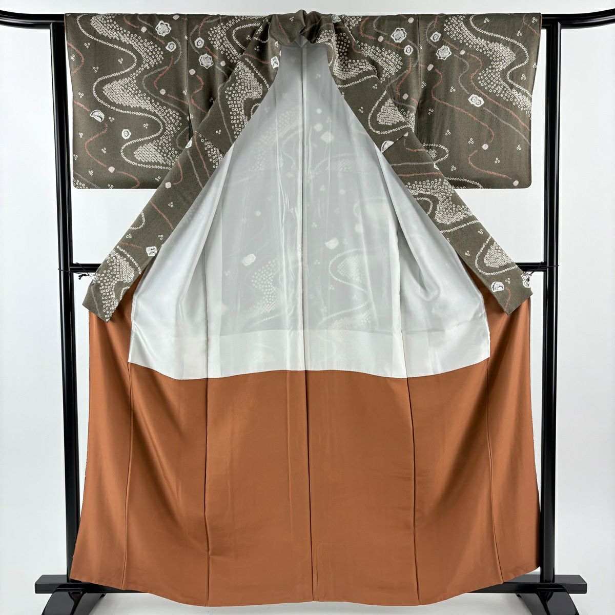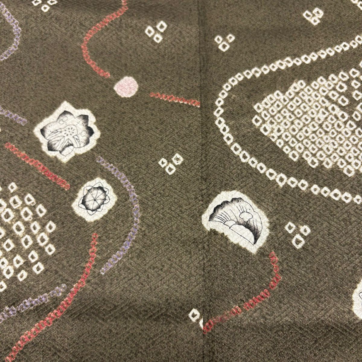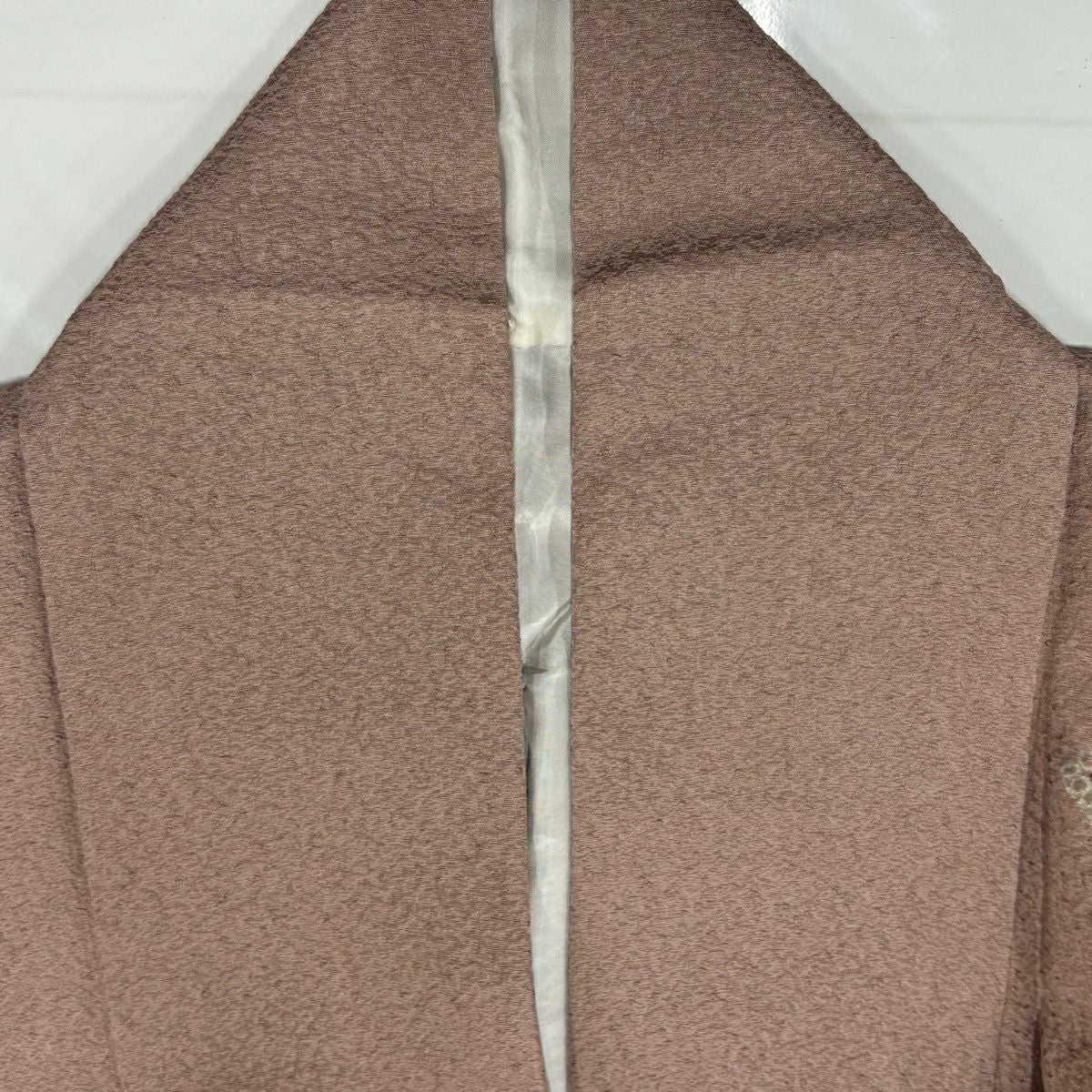 70%OFF 付下げ 身丈159.5cm 裄丈63.5cm S 袷 雪輪 草花 刺繍 絞り 薄茶色 正絹 秀品 K70